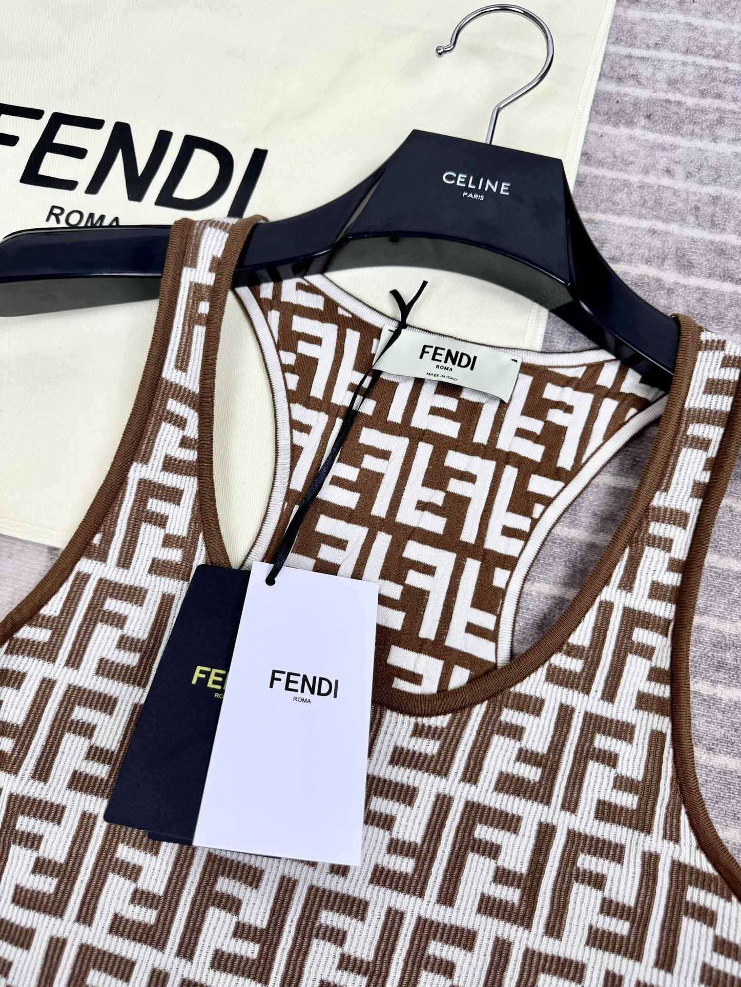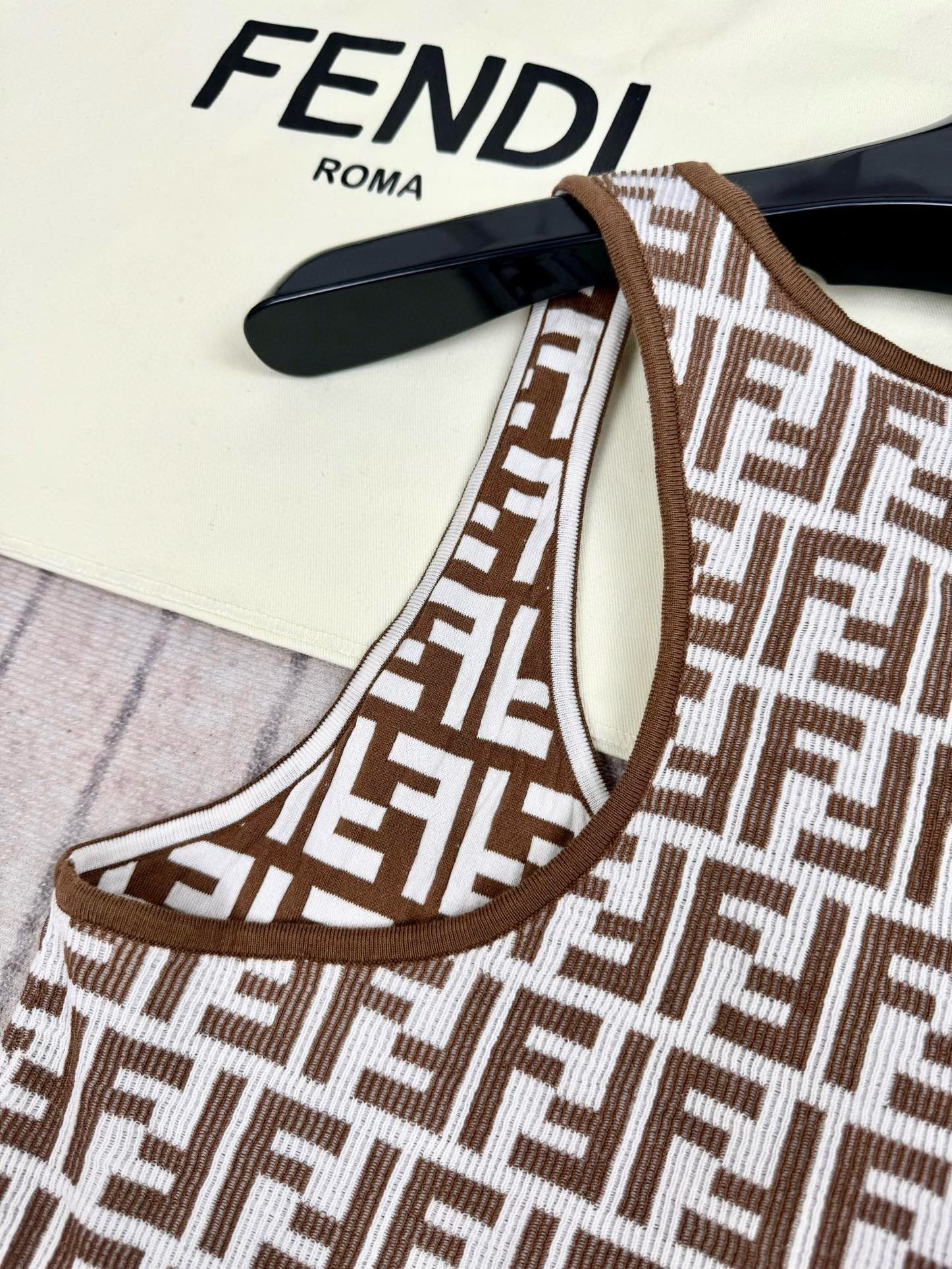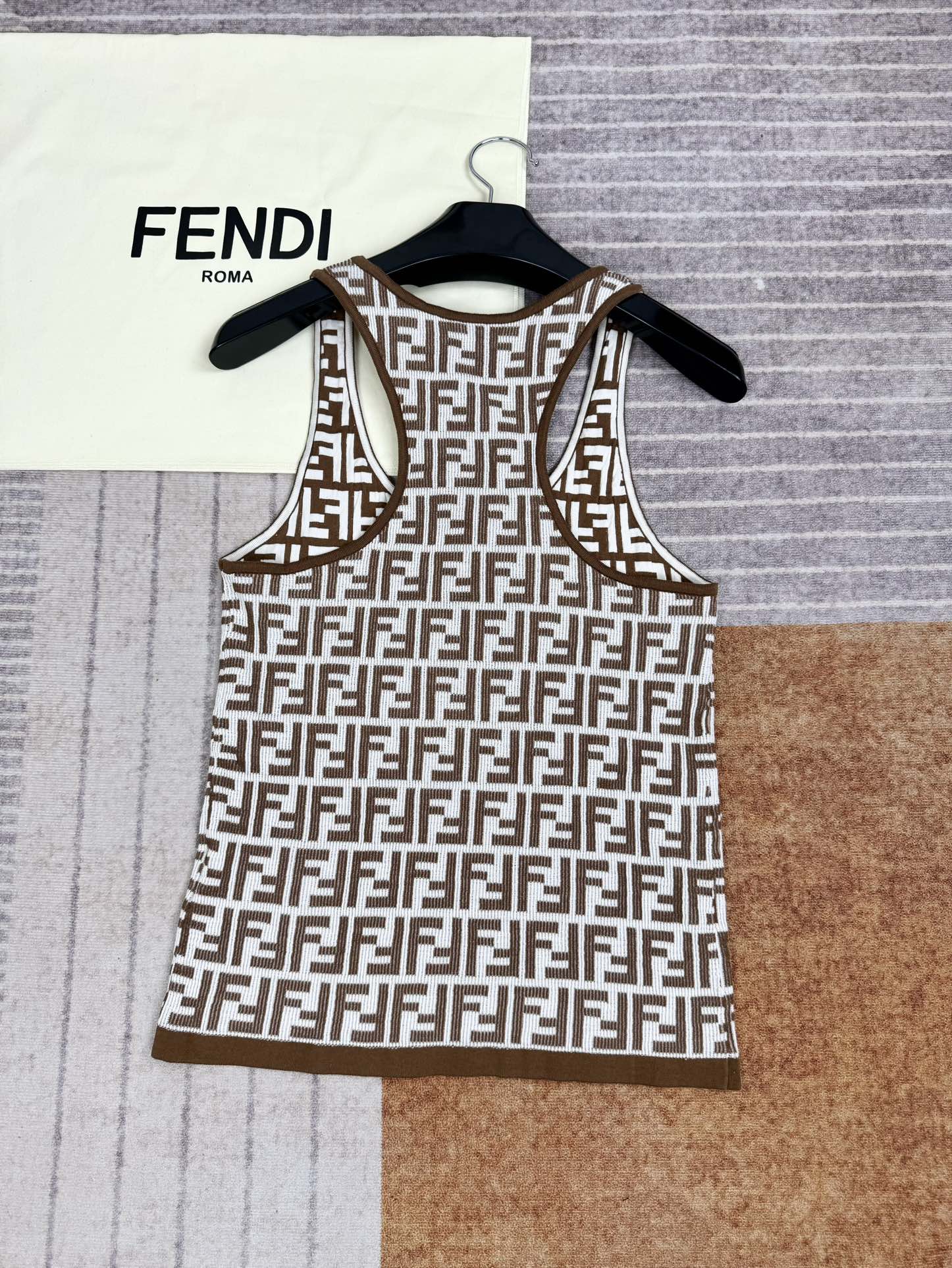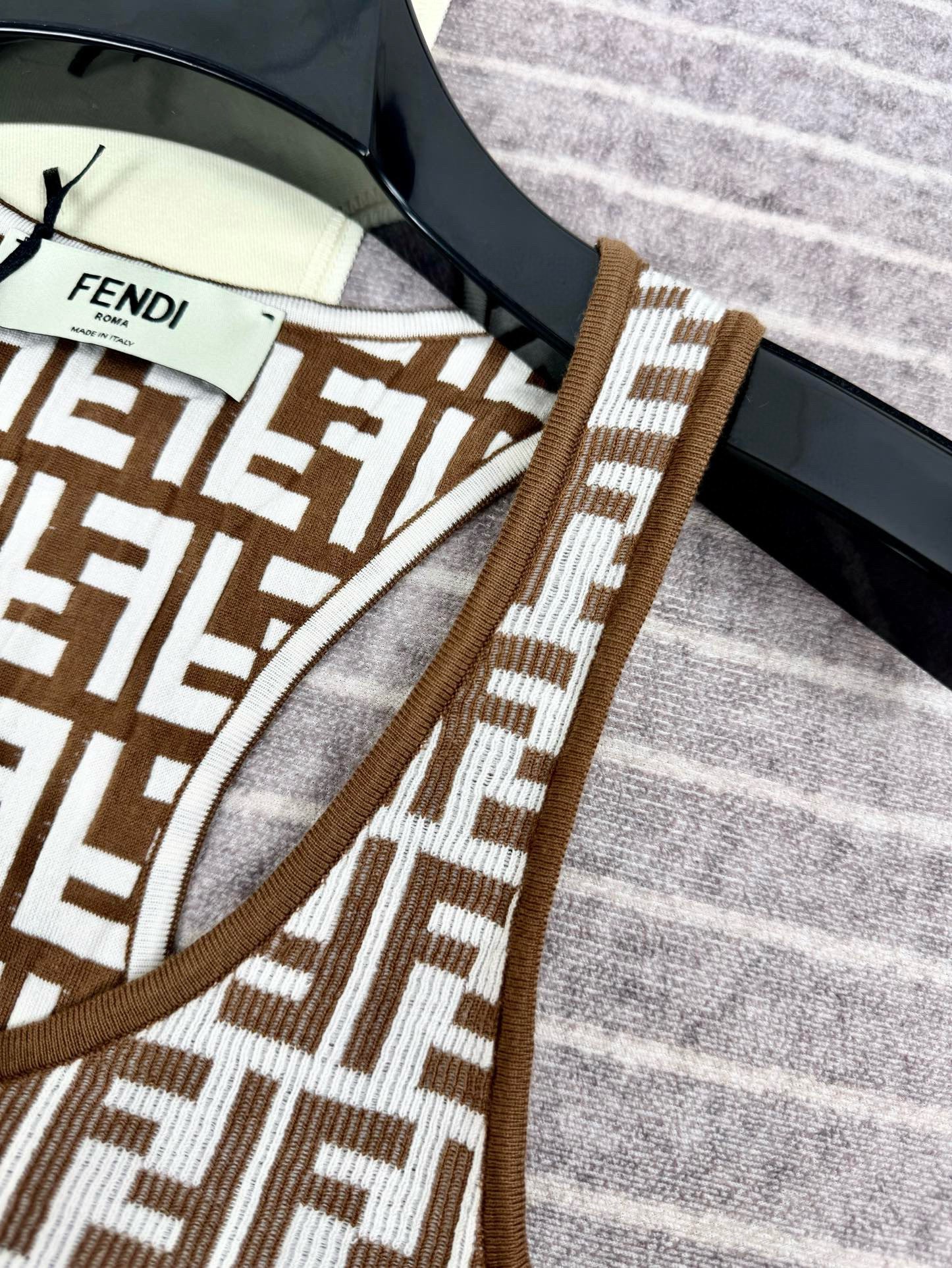 NIGO Fendi Women's Summer Brown FF Print Cotton Knit Top Fitted Sleeveless Vest #nigo72933