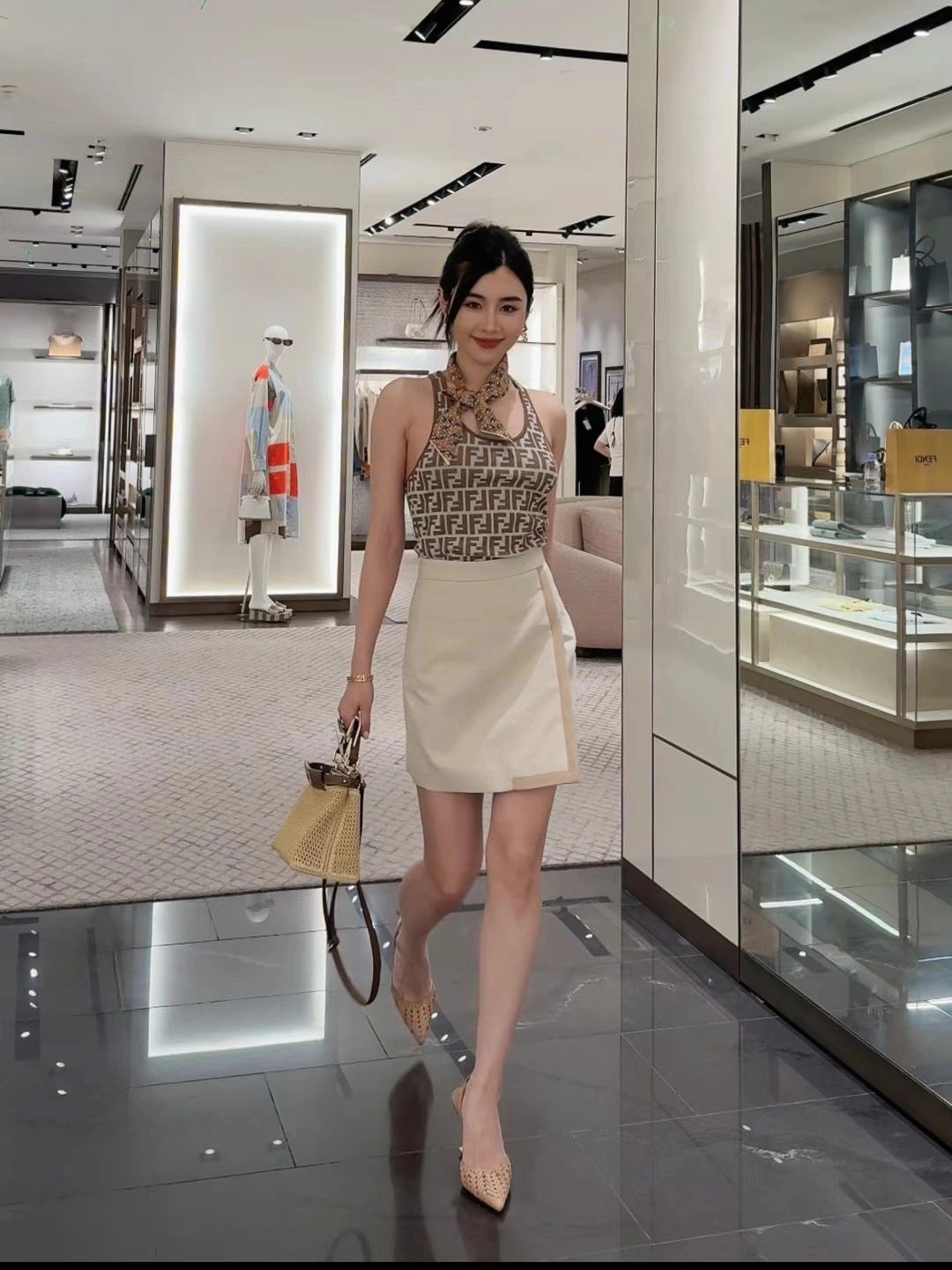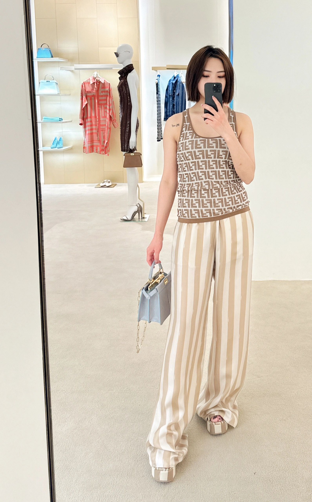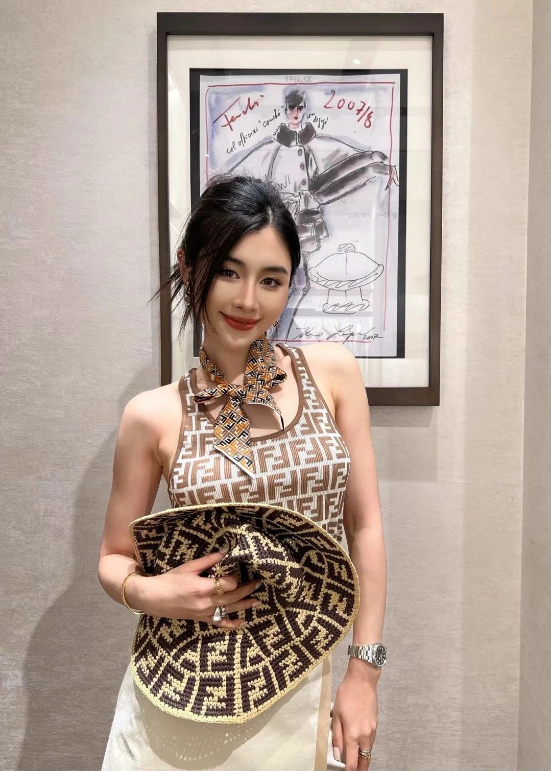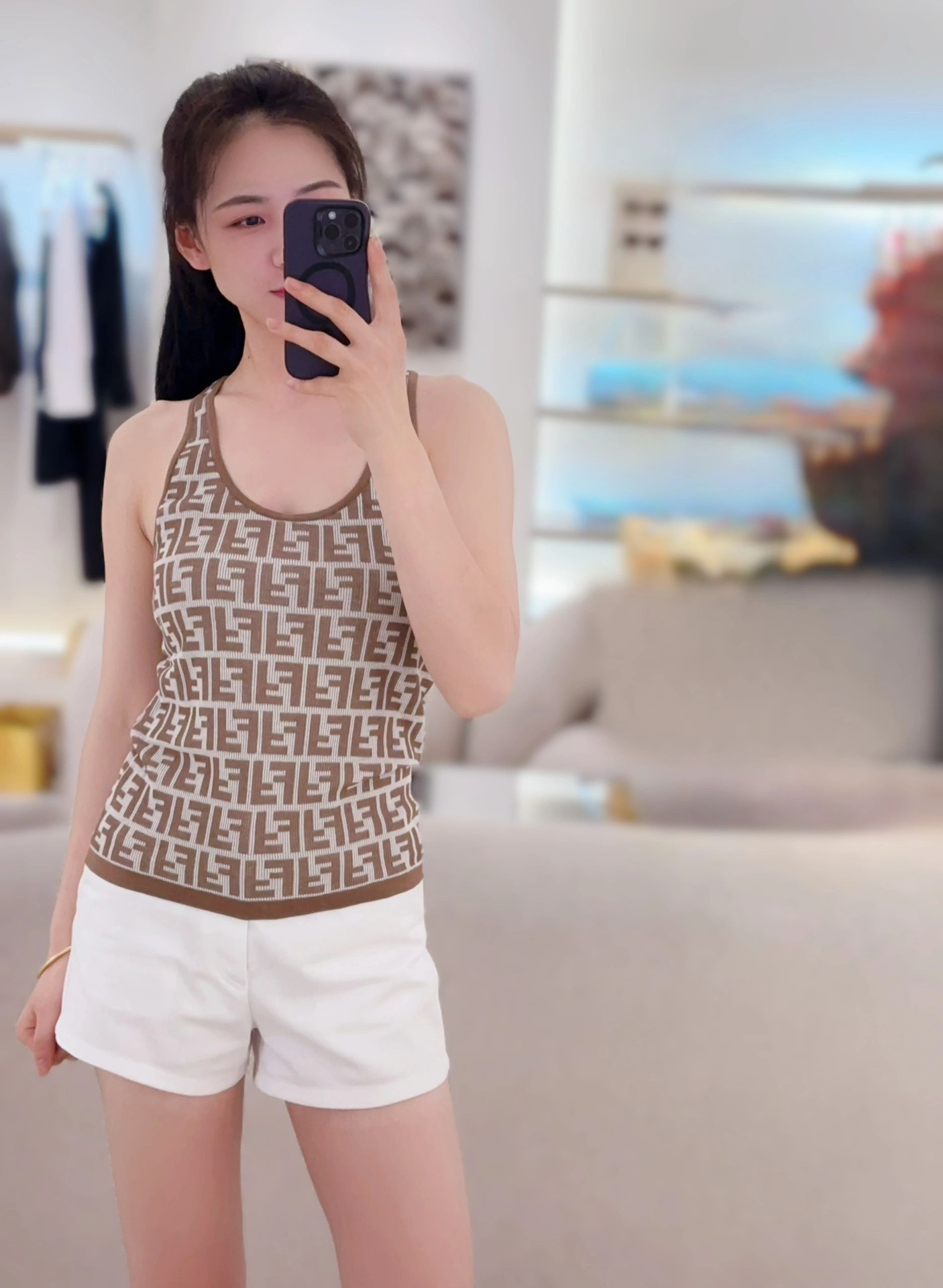 NIGO Fendi Women's Summer Brown FF Print Cotton Knit Top Fitted Sleeveless Vest #nigo72933