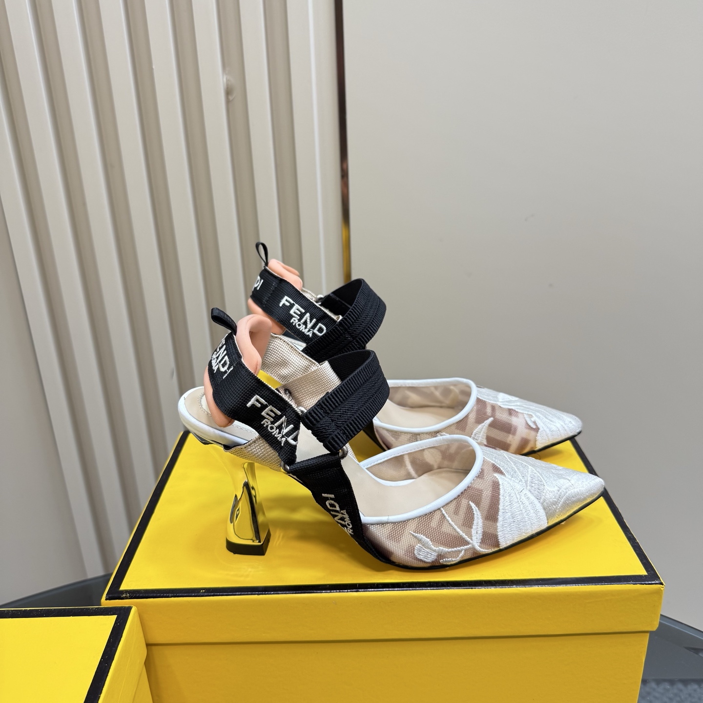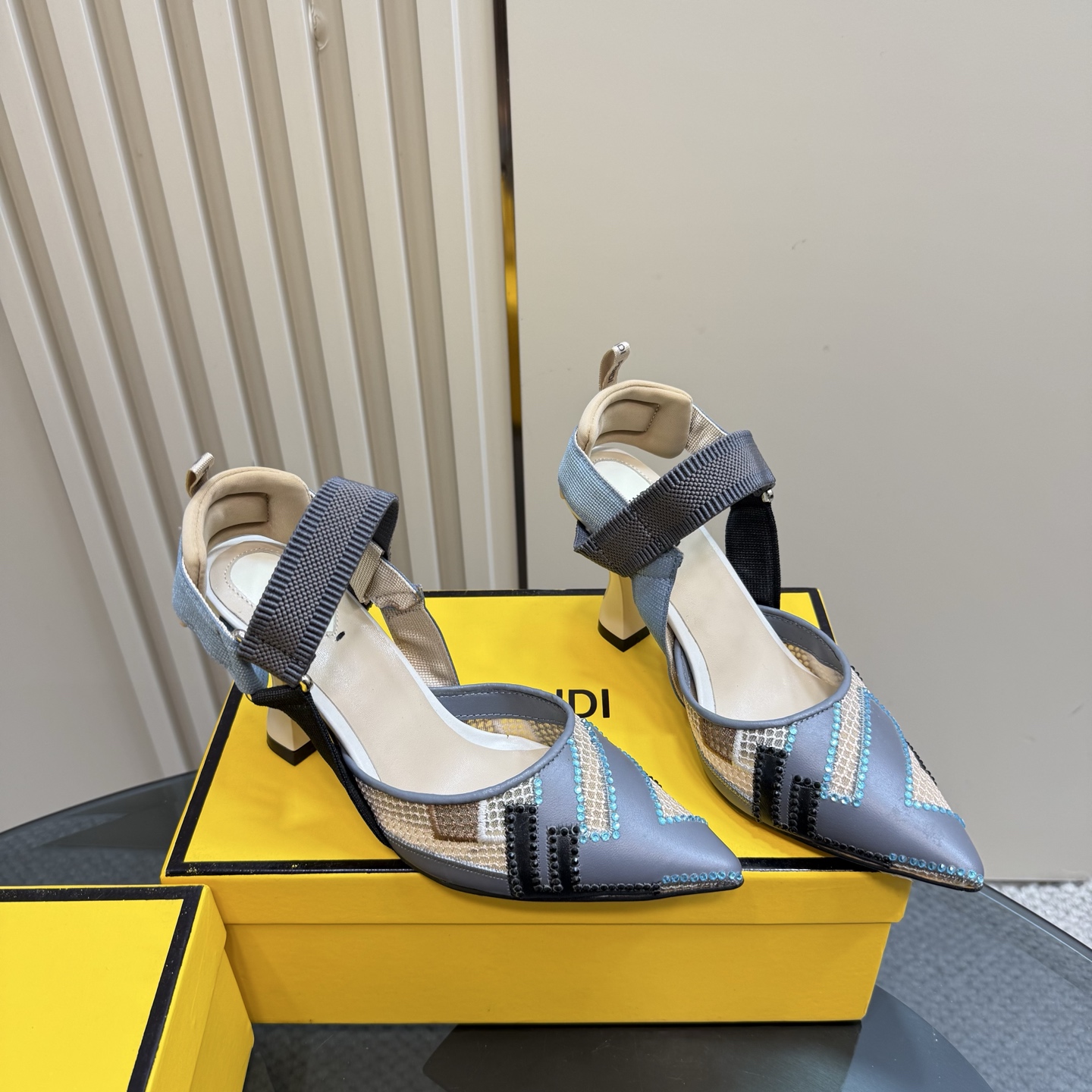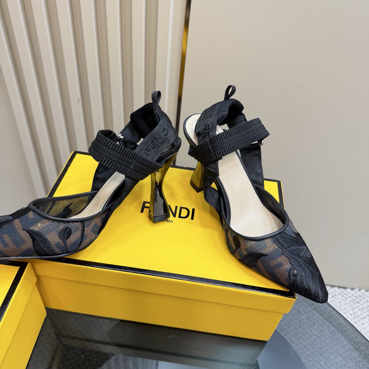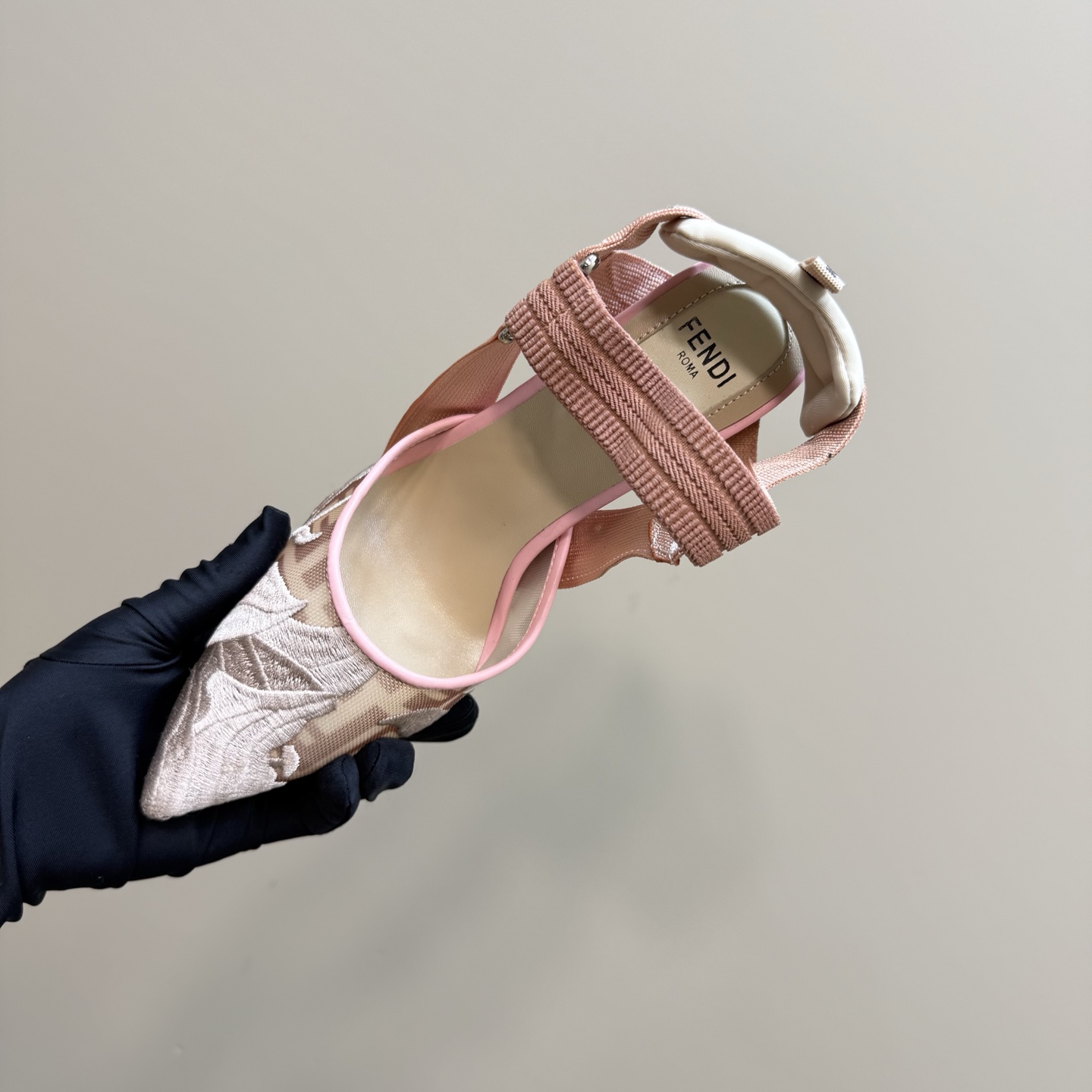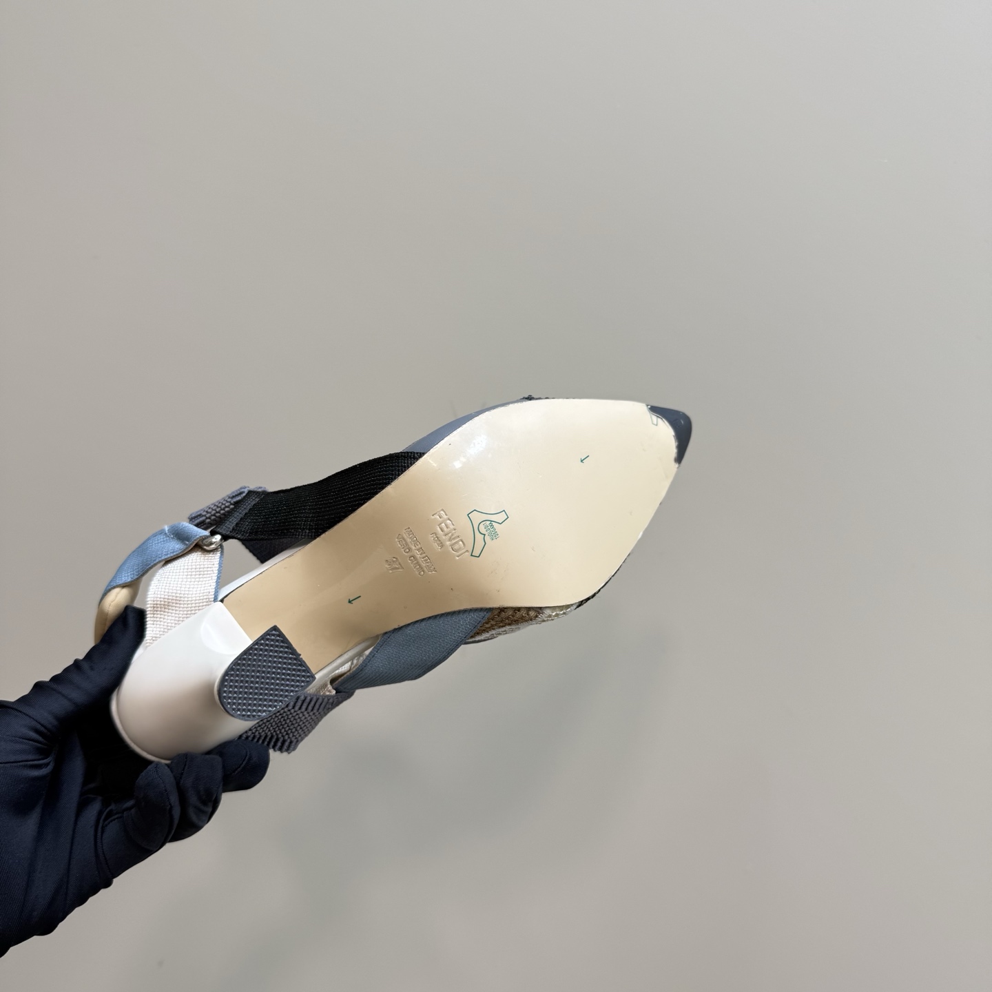 NIGO Fendi Women's Summer Mesh Leather Chunky Heeled High Heels Sandals Shoes #nigo75339