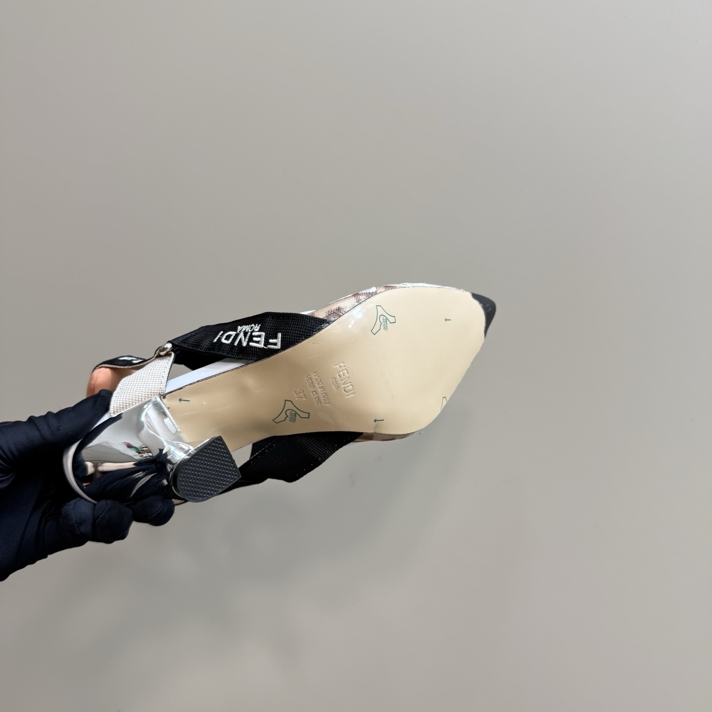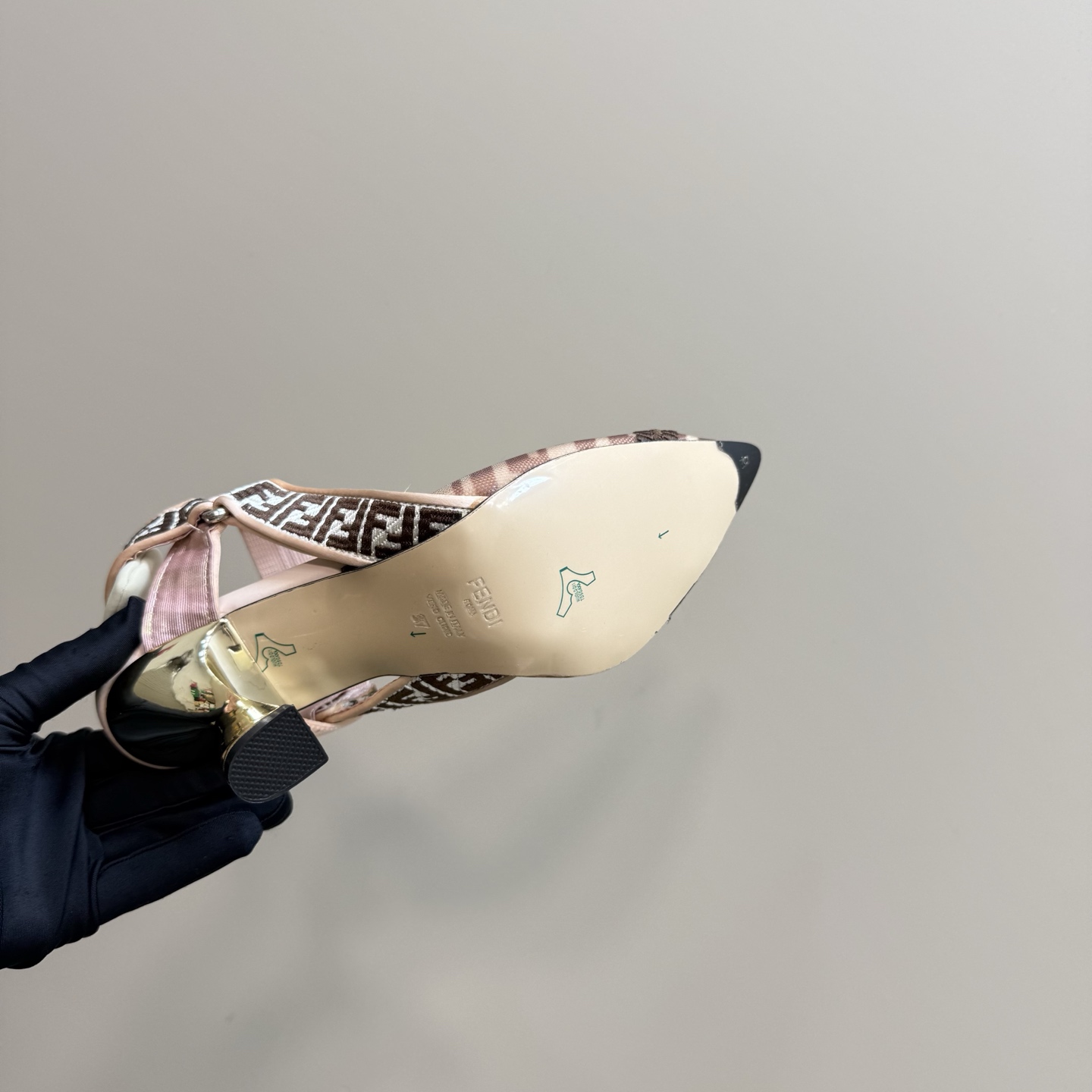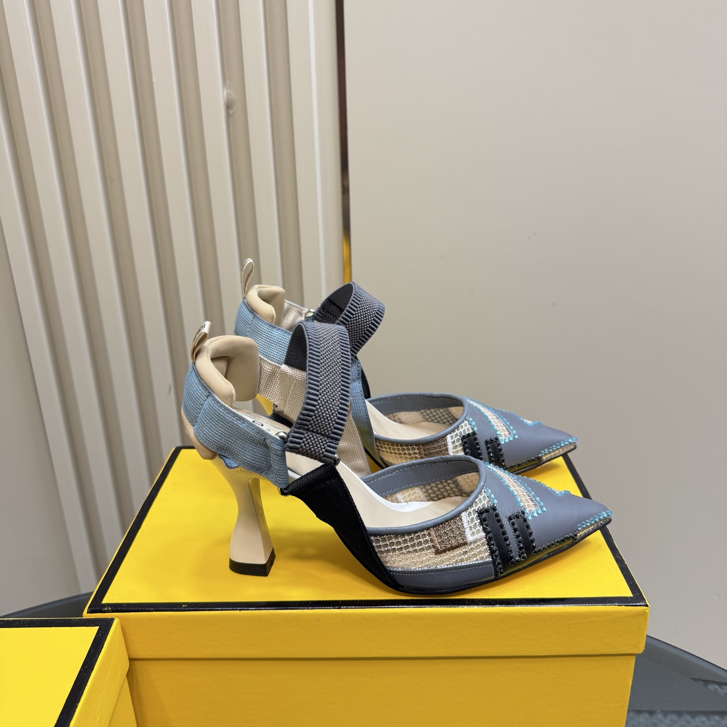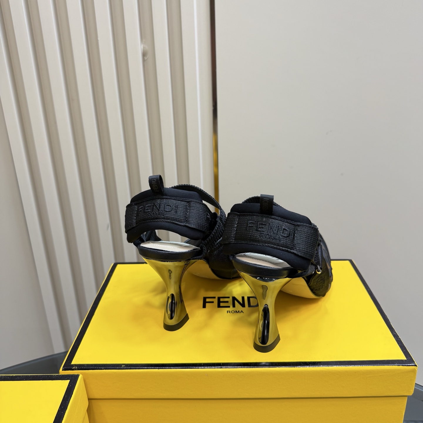 NIGO Fendi Women's Summer Mesh Leather Chunky Heeled High Heels Sandals Shoes #nigo75339