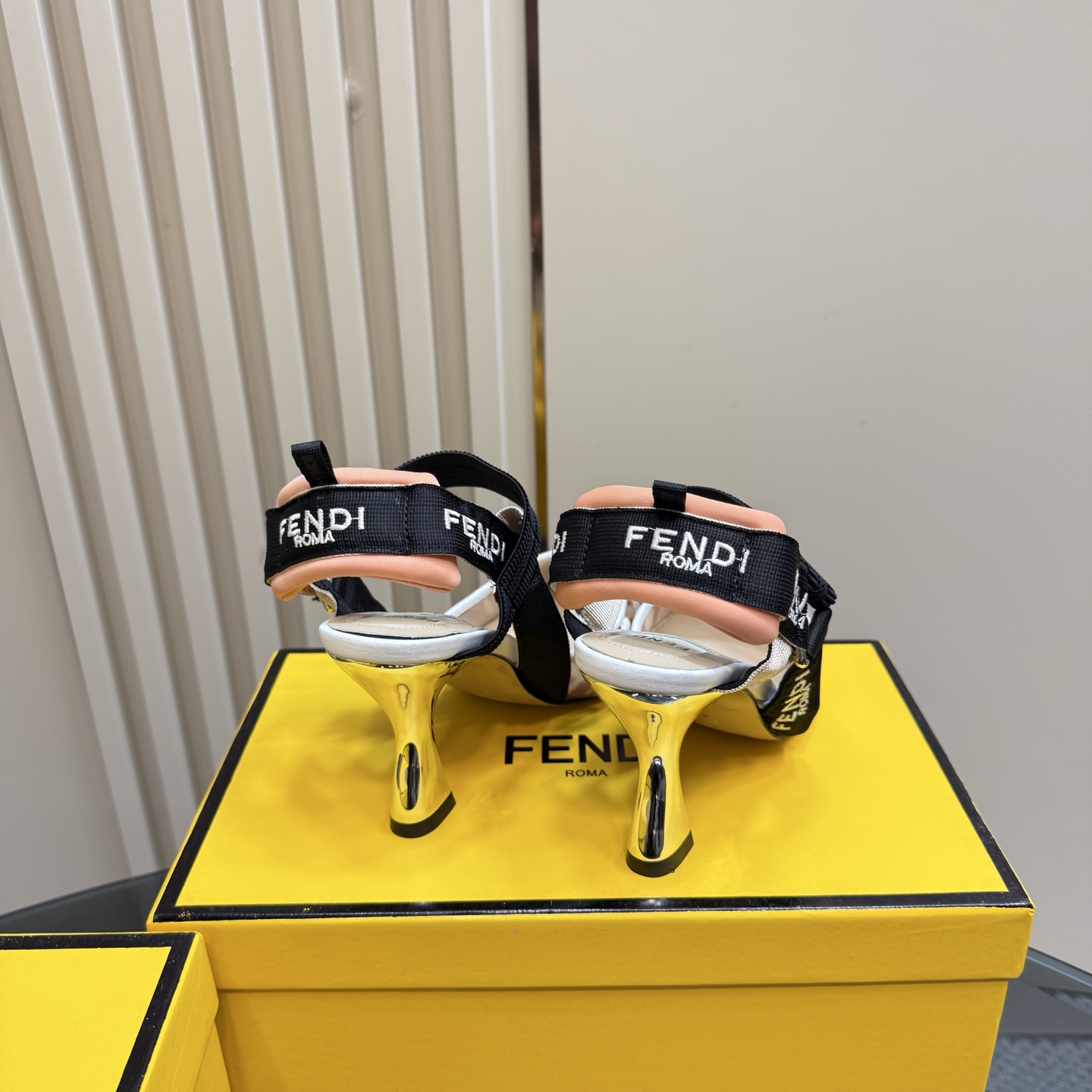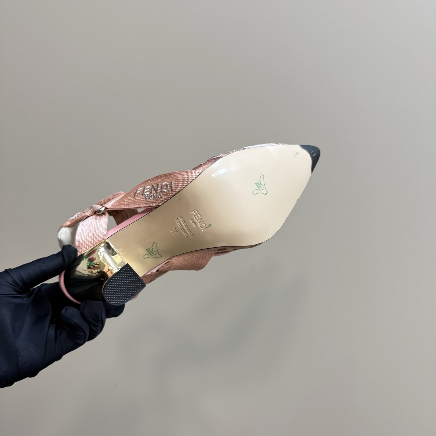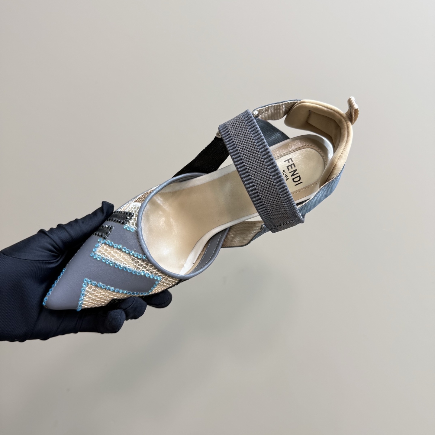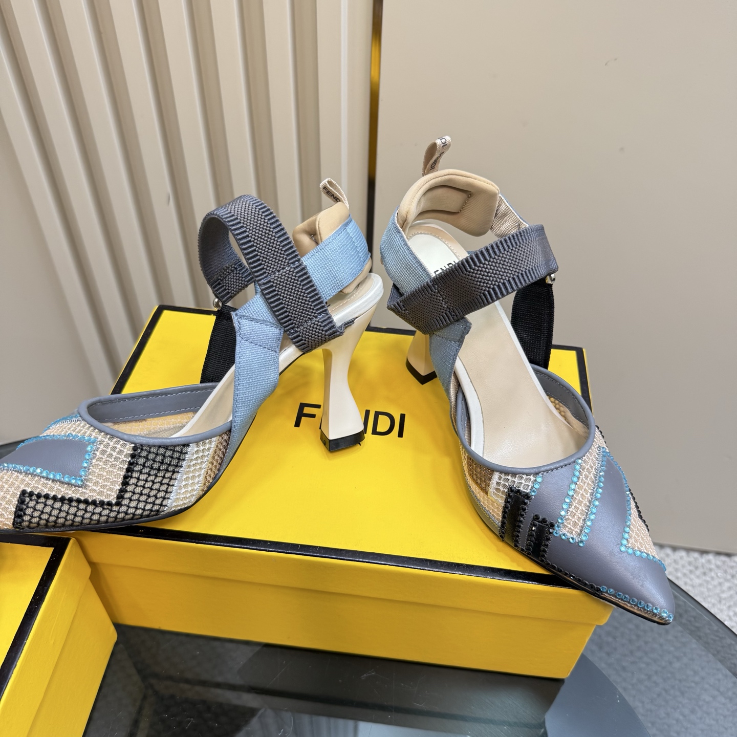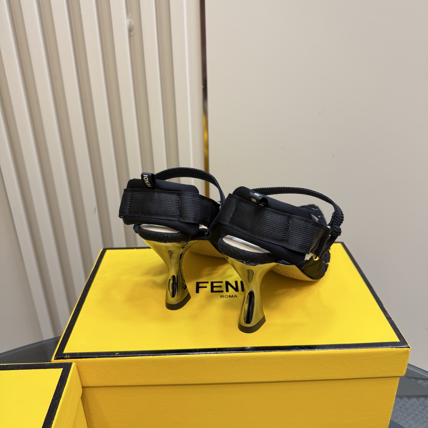 NIGO Fendi Women's Summer Mesh Leather Chunky Heeled High Heels Sandals Shoes #nigo75339