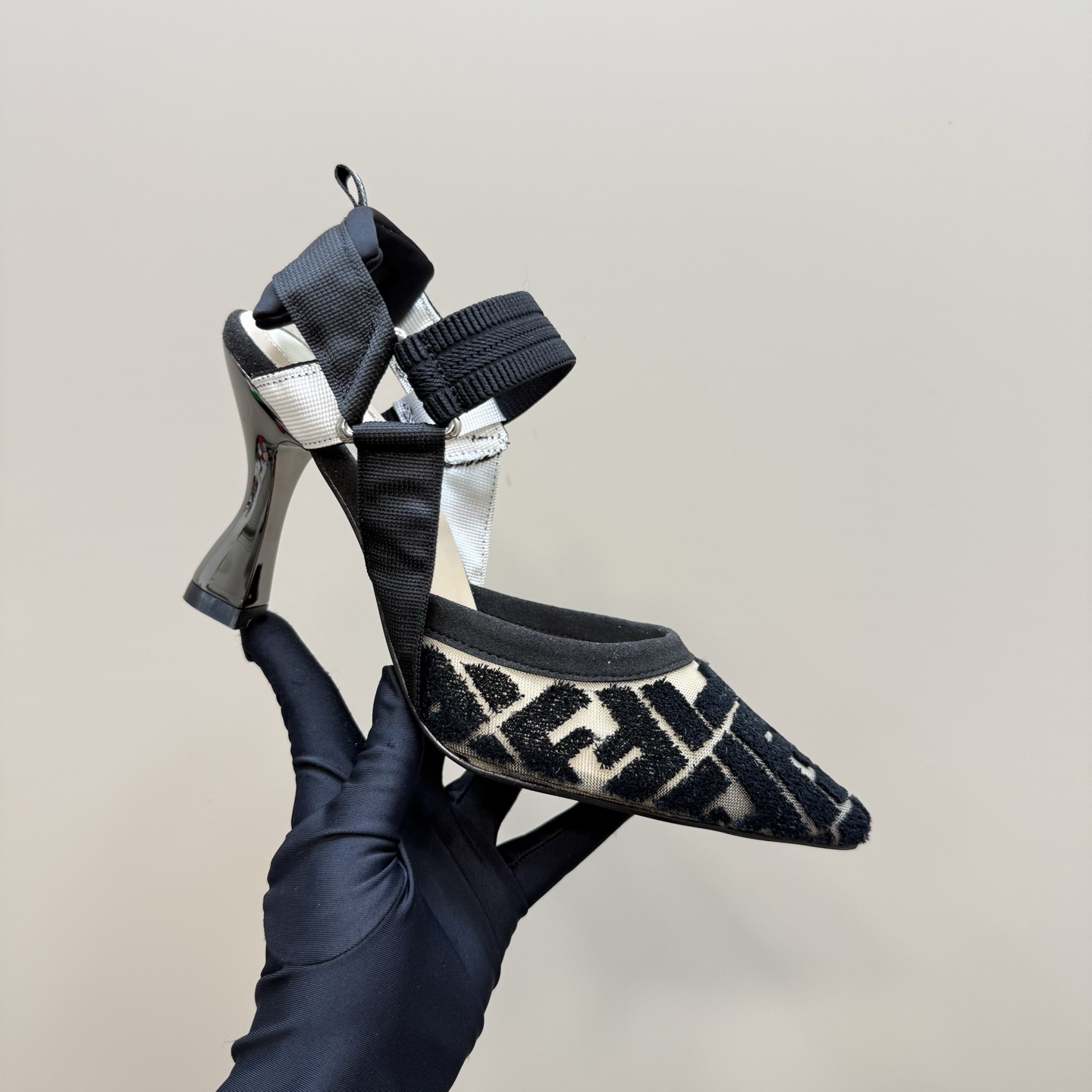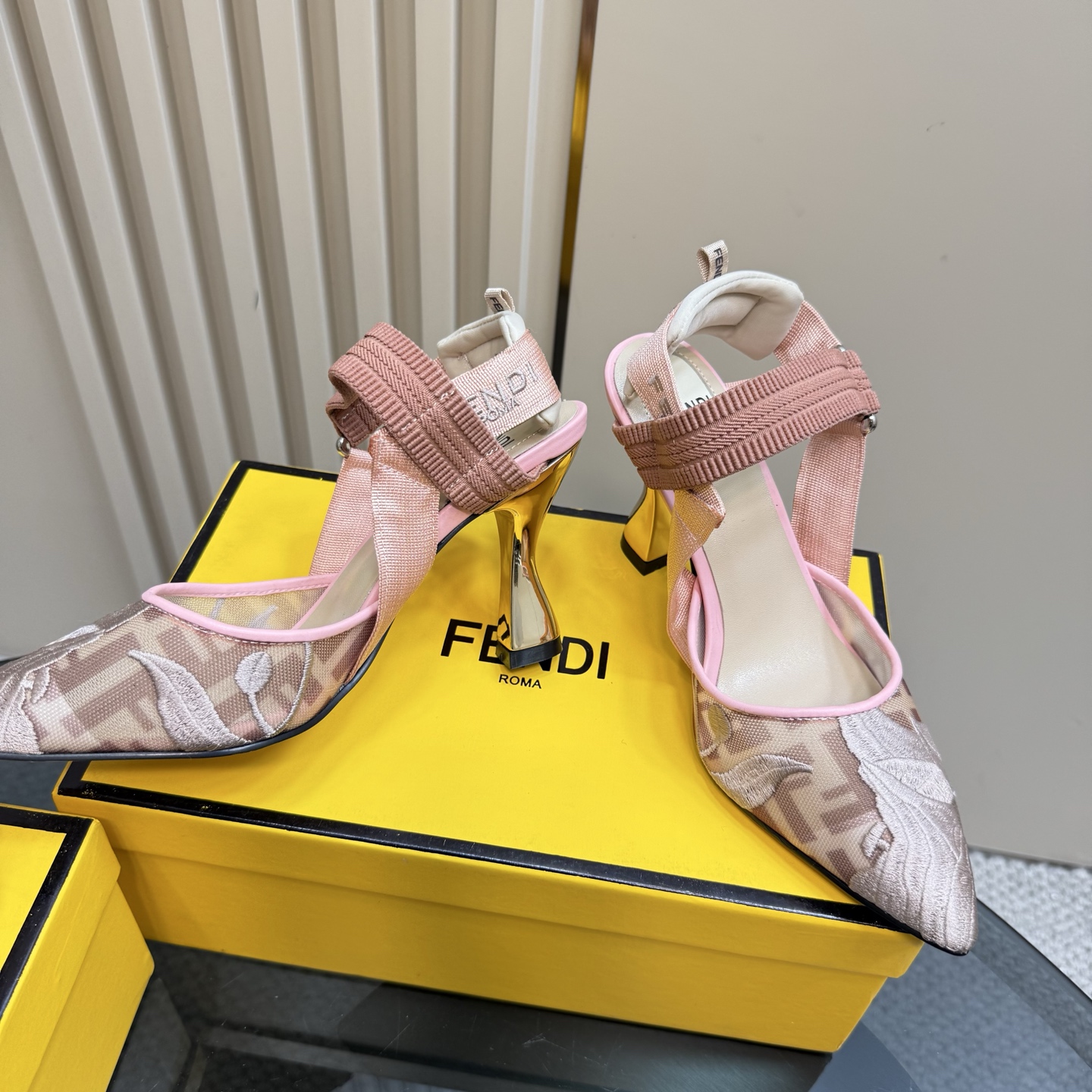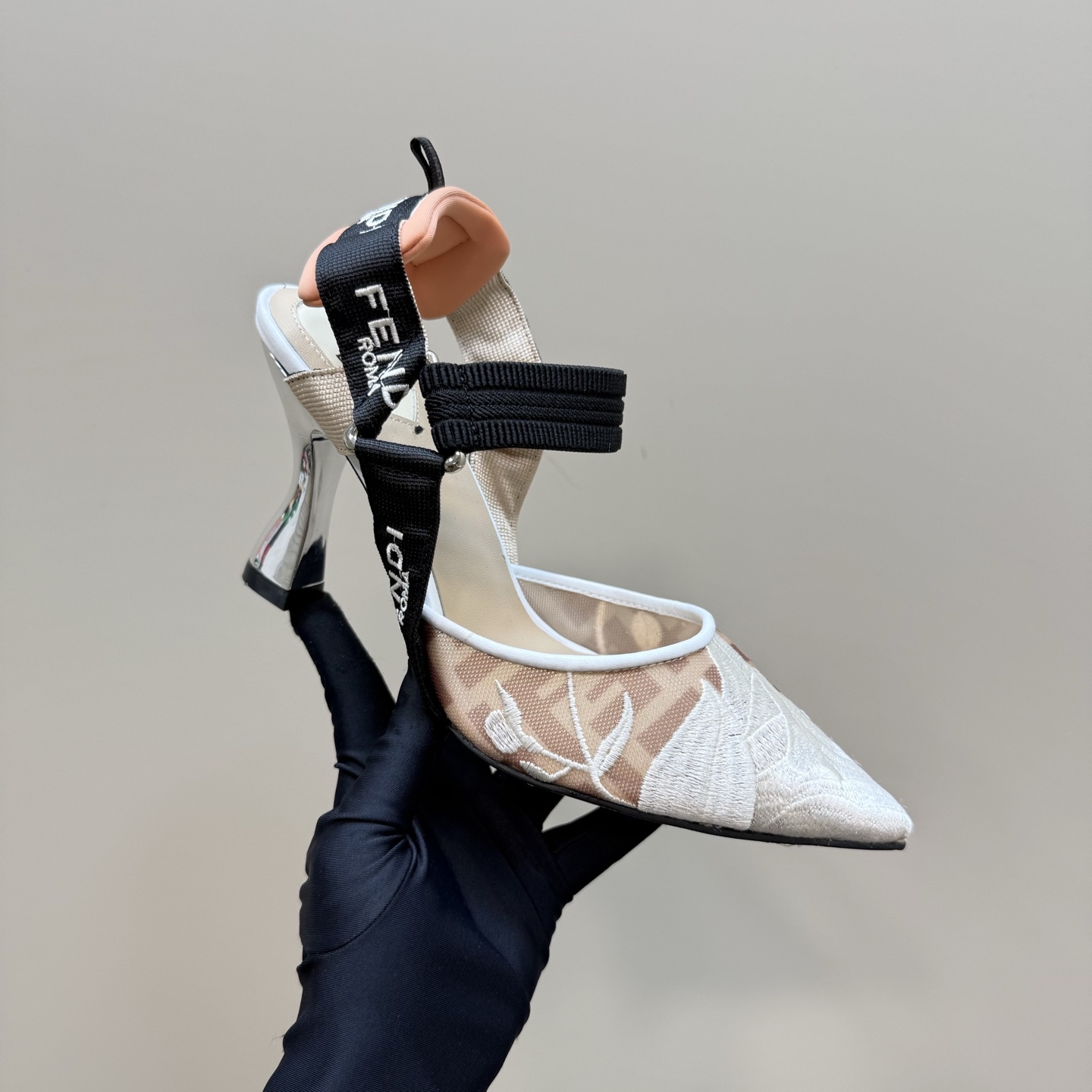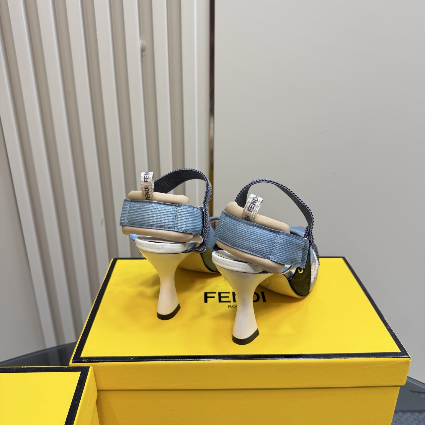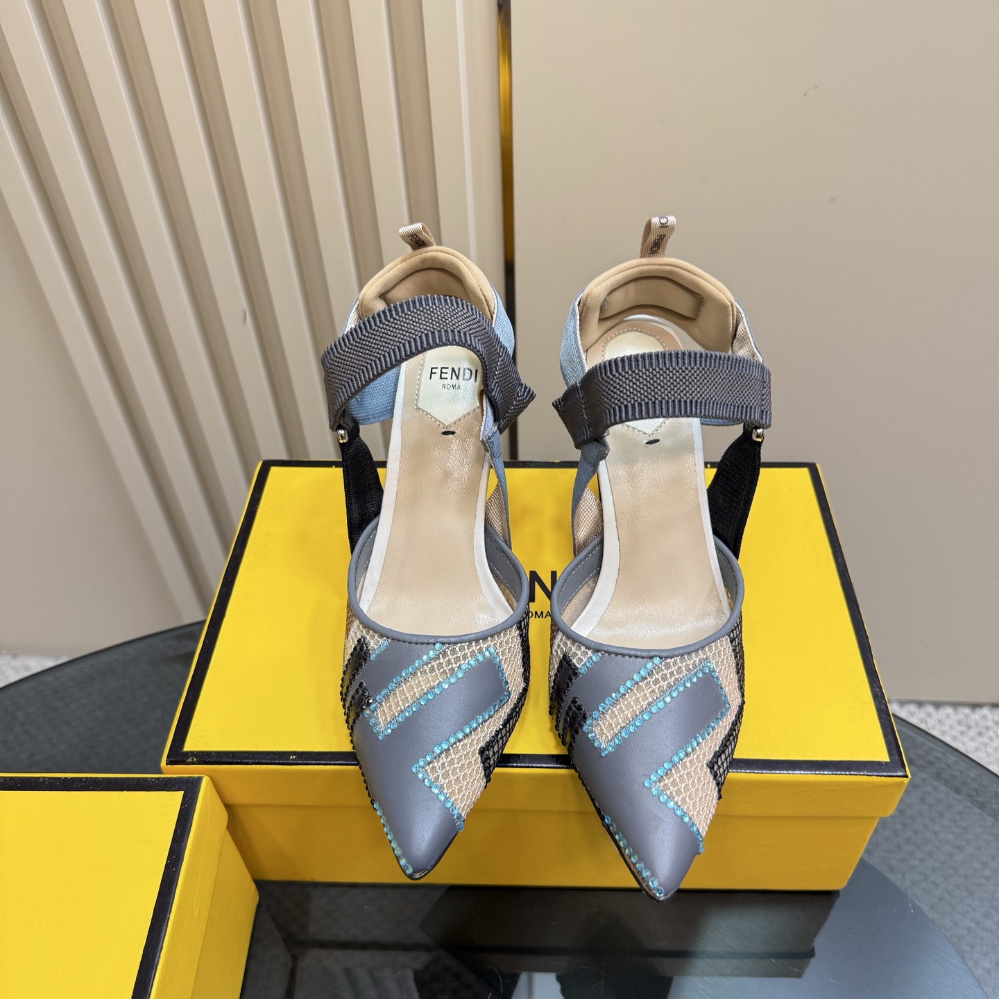 NIGO Fendi Women's Summer Mesh Leather Chunky Heeled High Heels Sandals Shoes #nigo75339