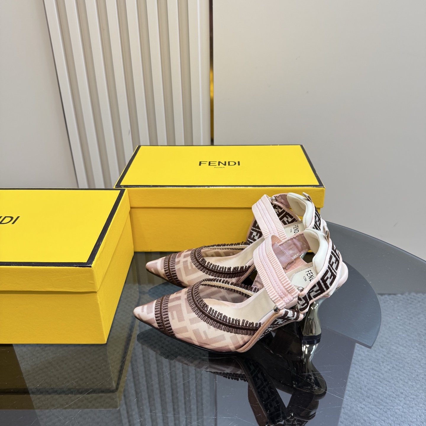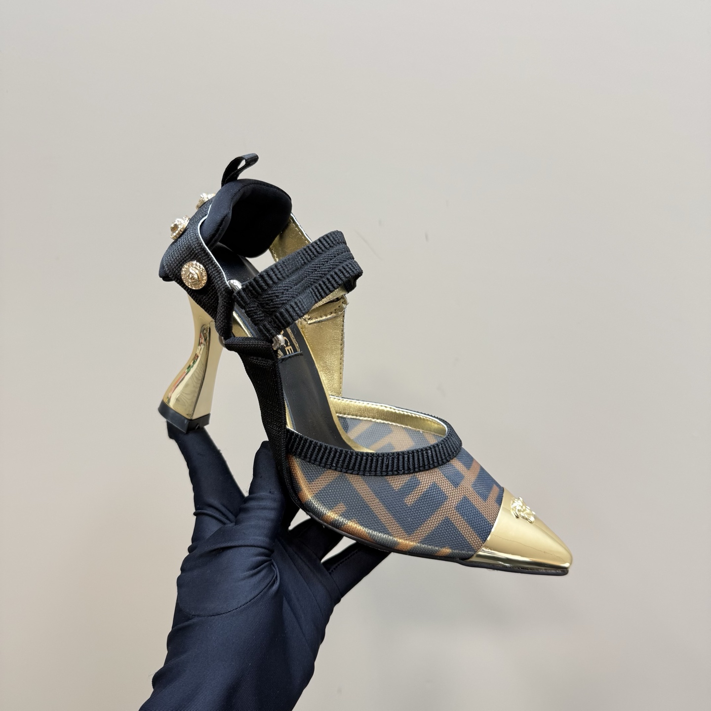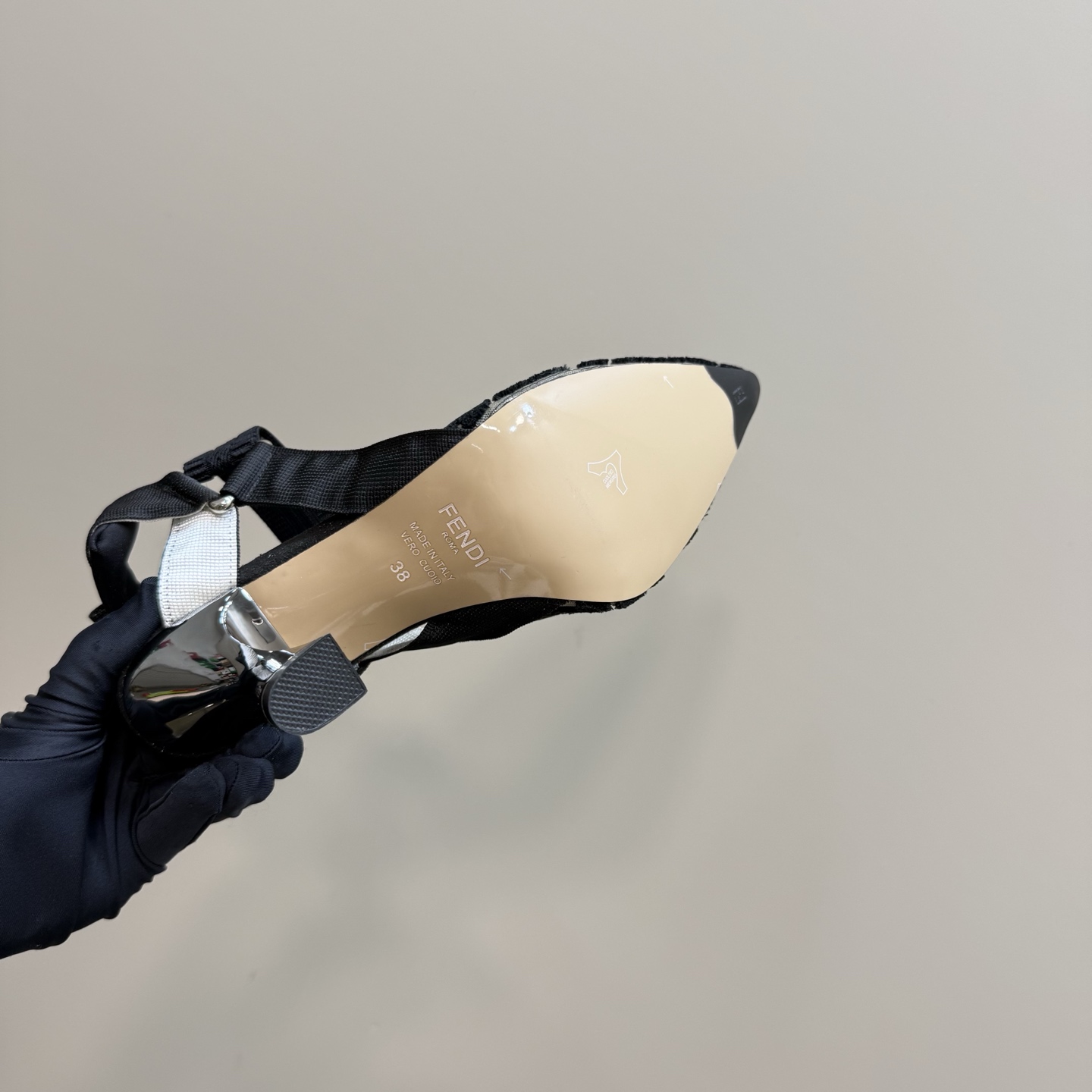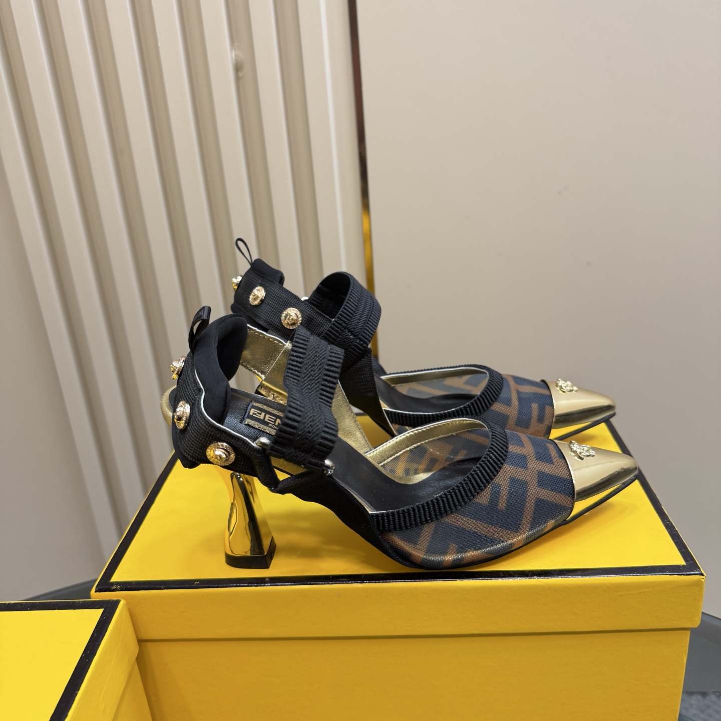 NIGO Fendi Women's Summer Mesh Leather Chunky Heeled High Heels Sandals Shoes #nigo75339