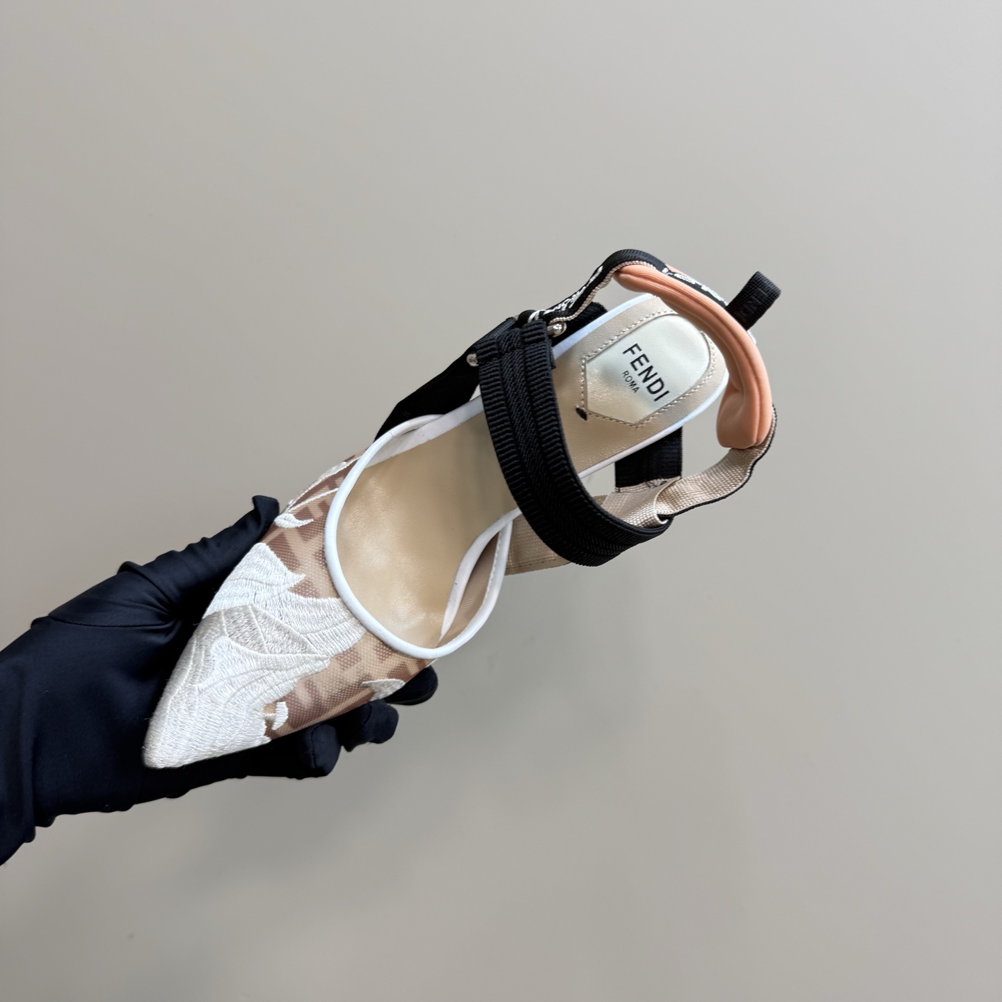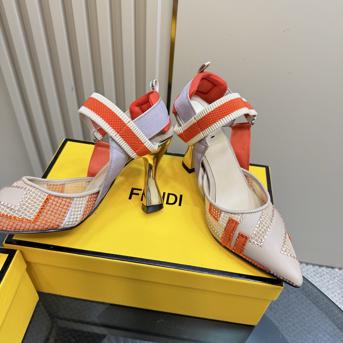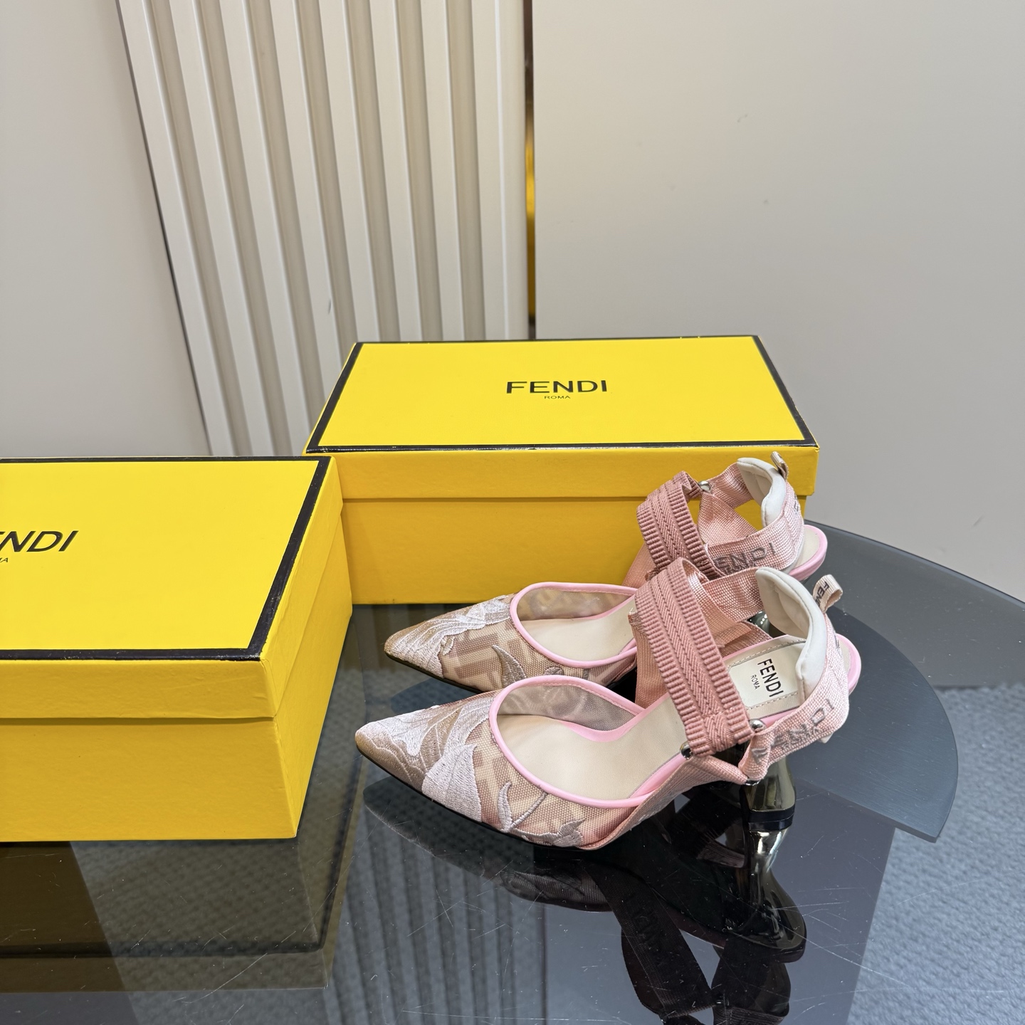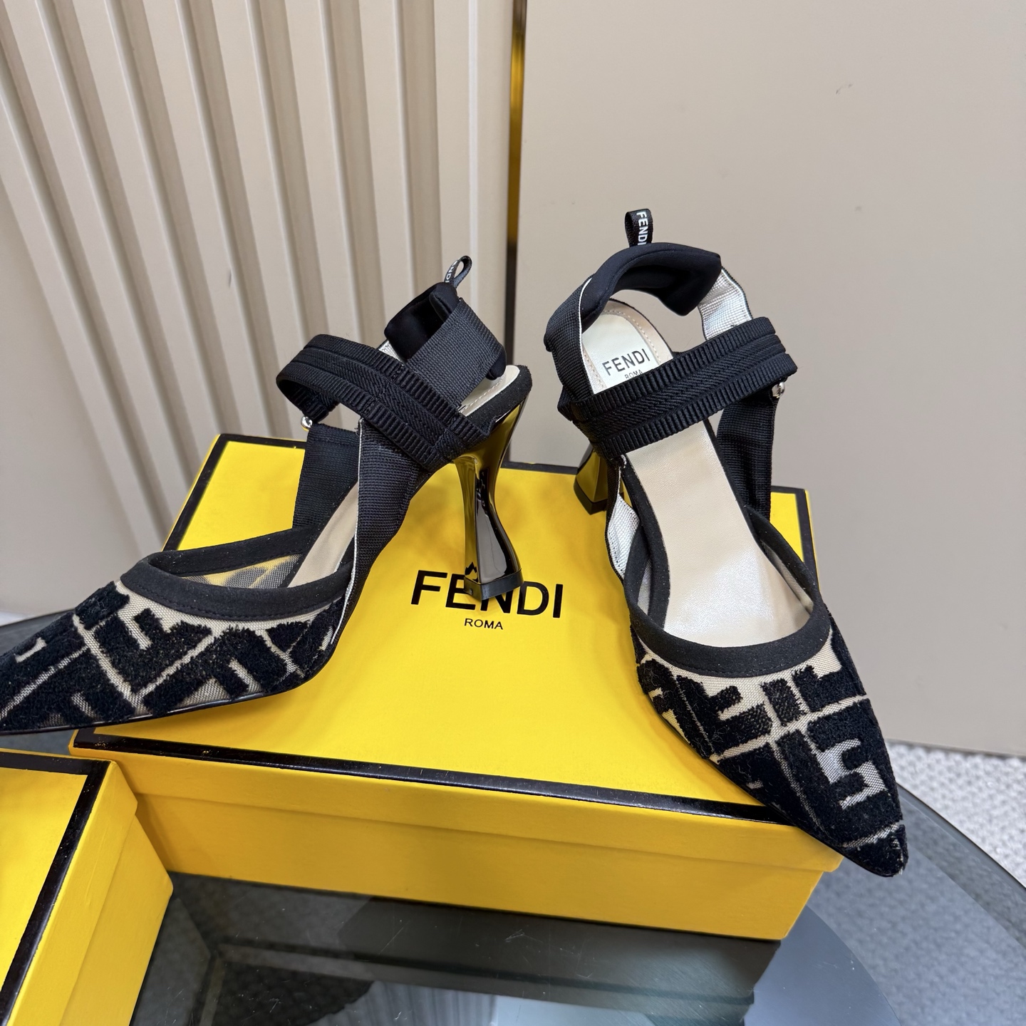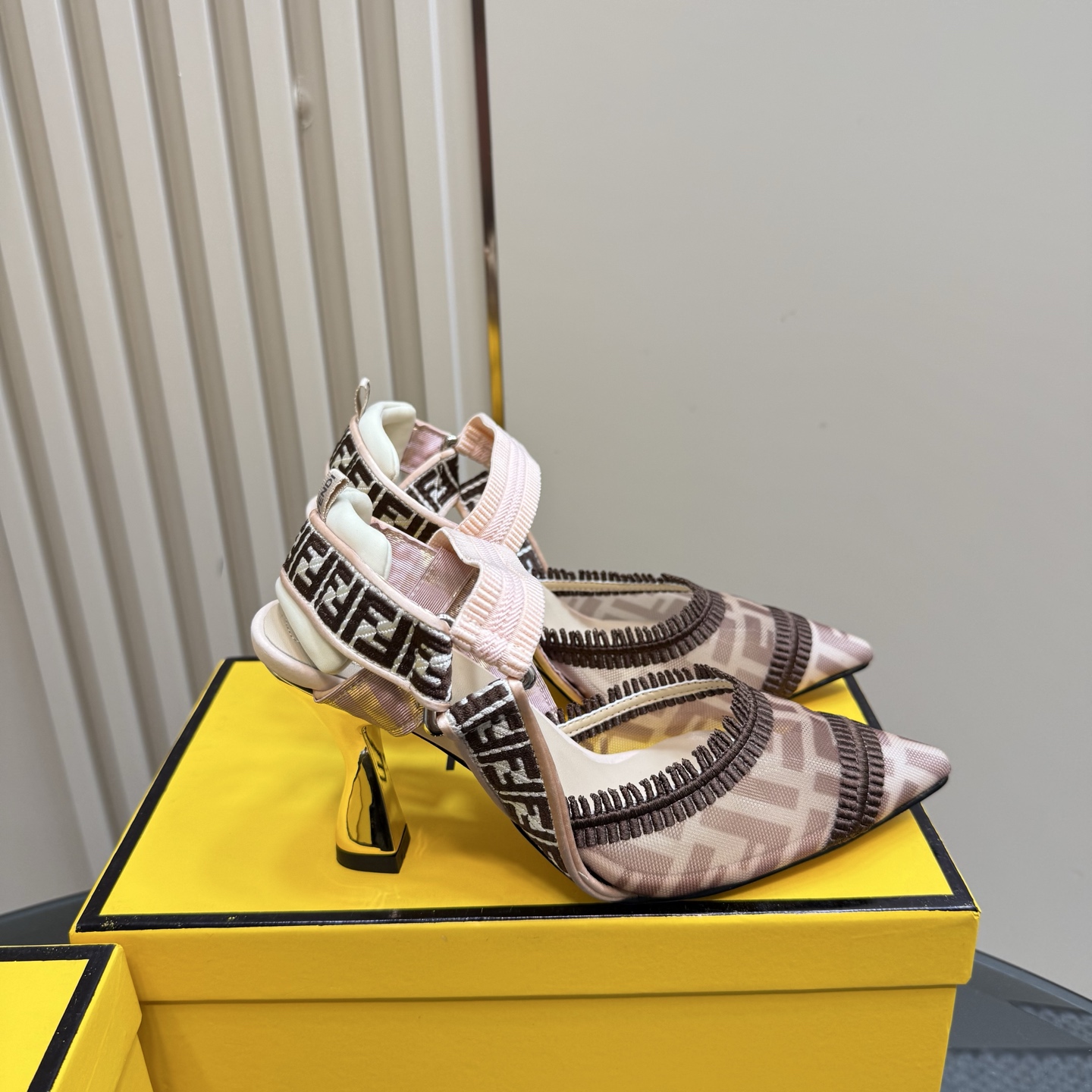 NIGO Fendi Women's Summer Mesh Leather Chunky Heeled High Heels Sandals Shoes #nigo75339