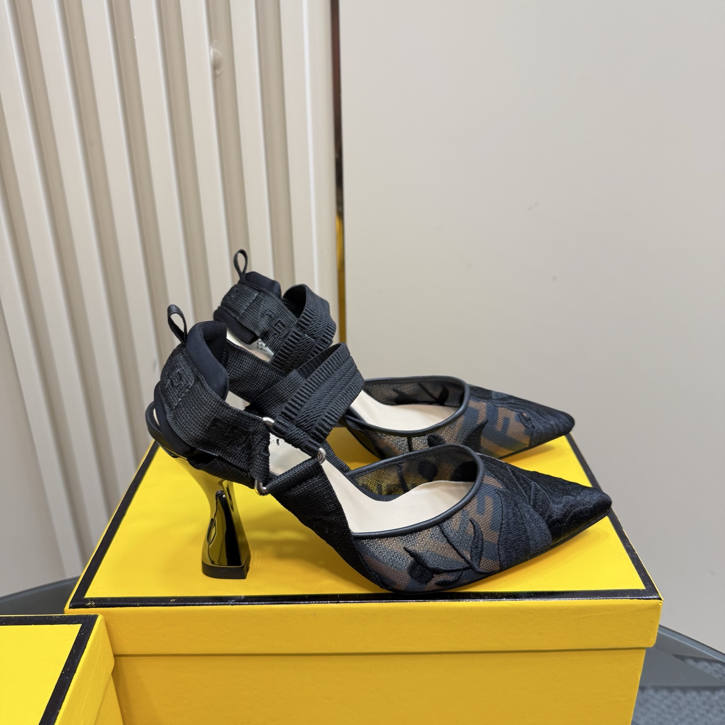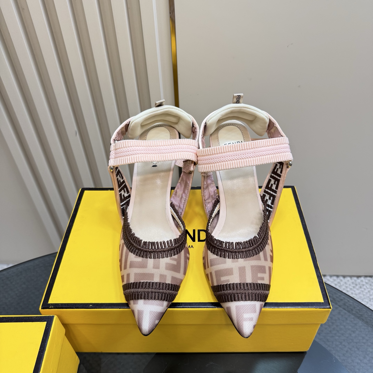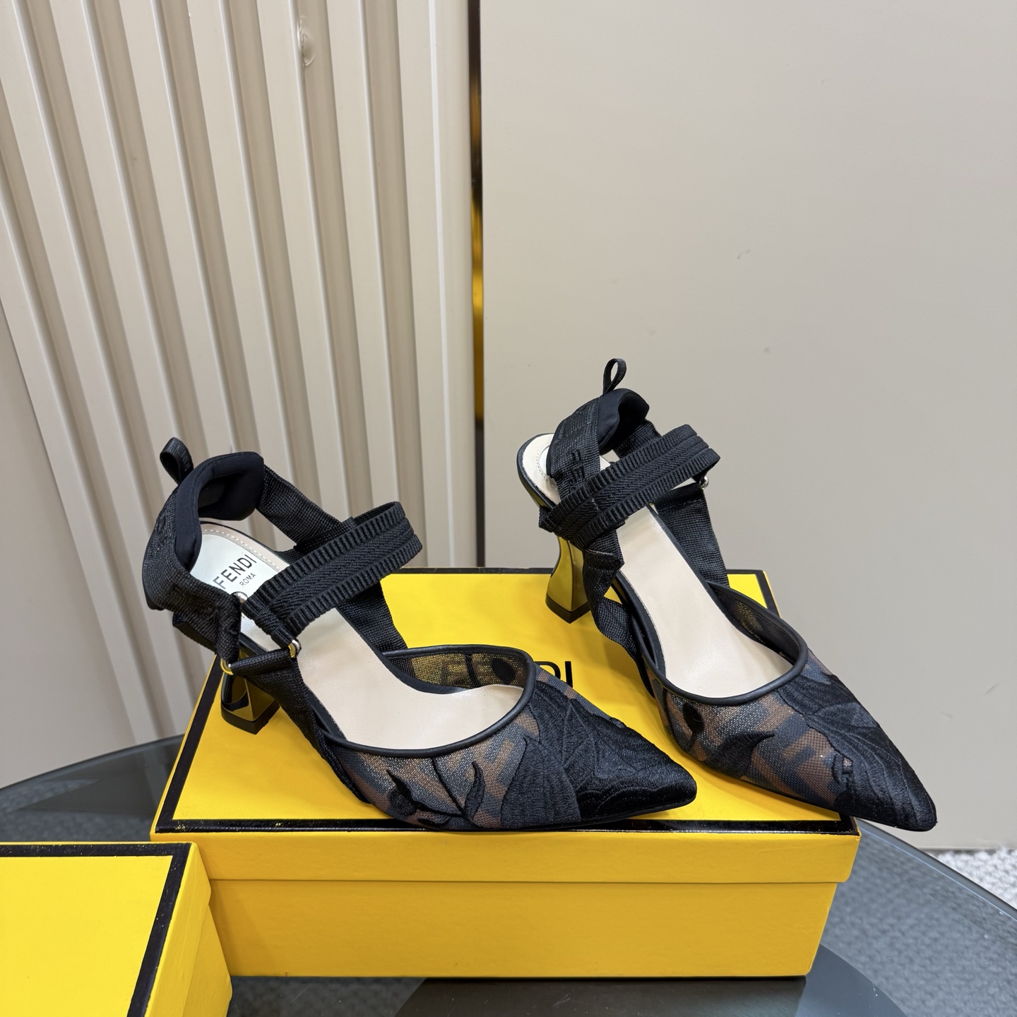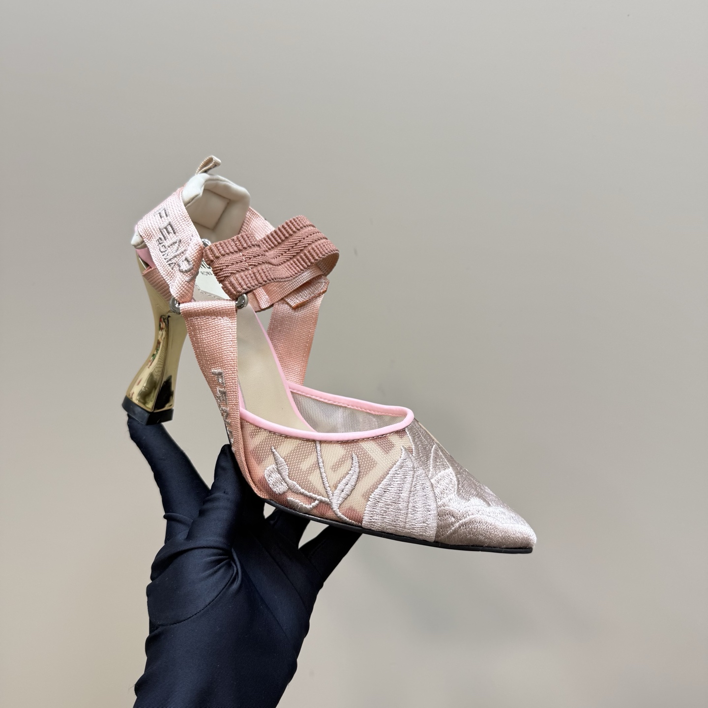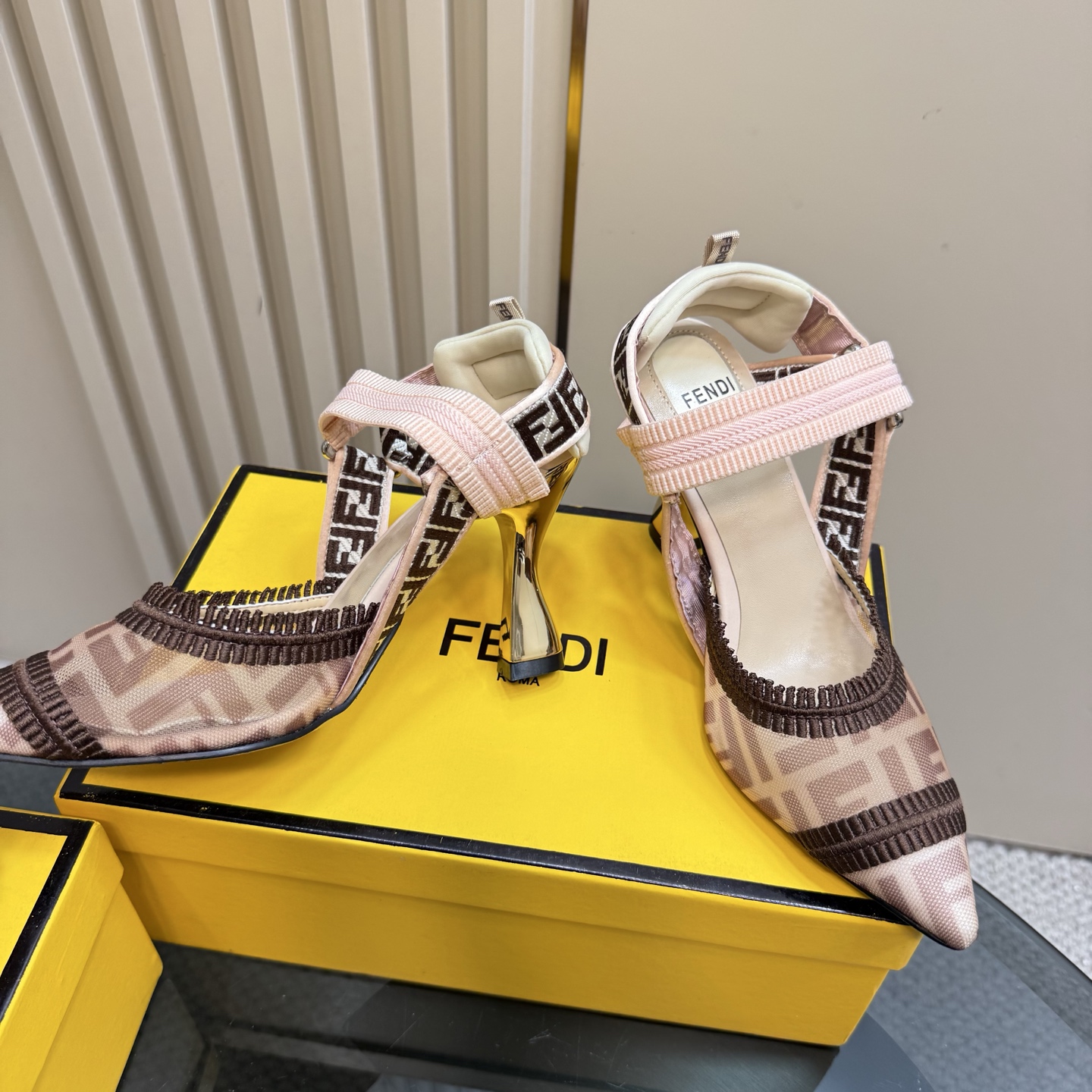 NIGO Fendi Women's Summer Mesh Leather Chunky Heeled High Heels Sandals Shoes #nigo75339