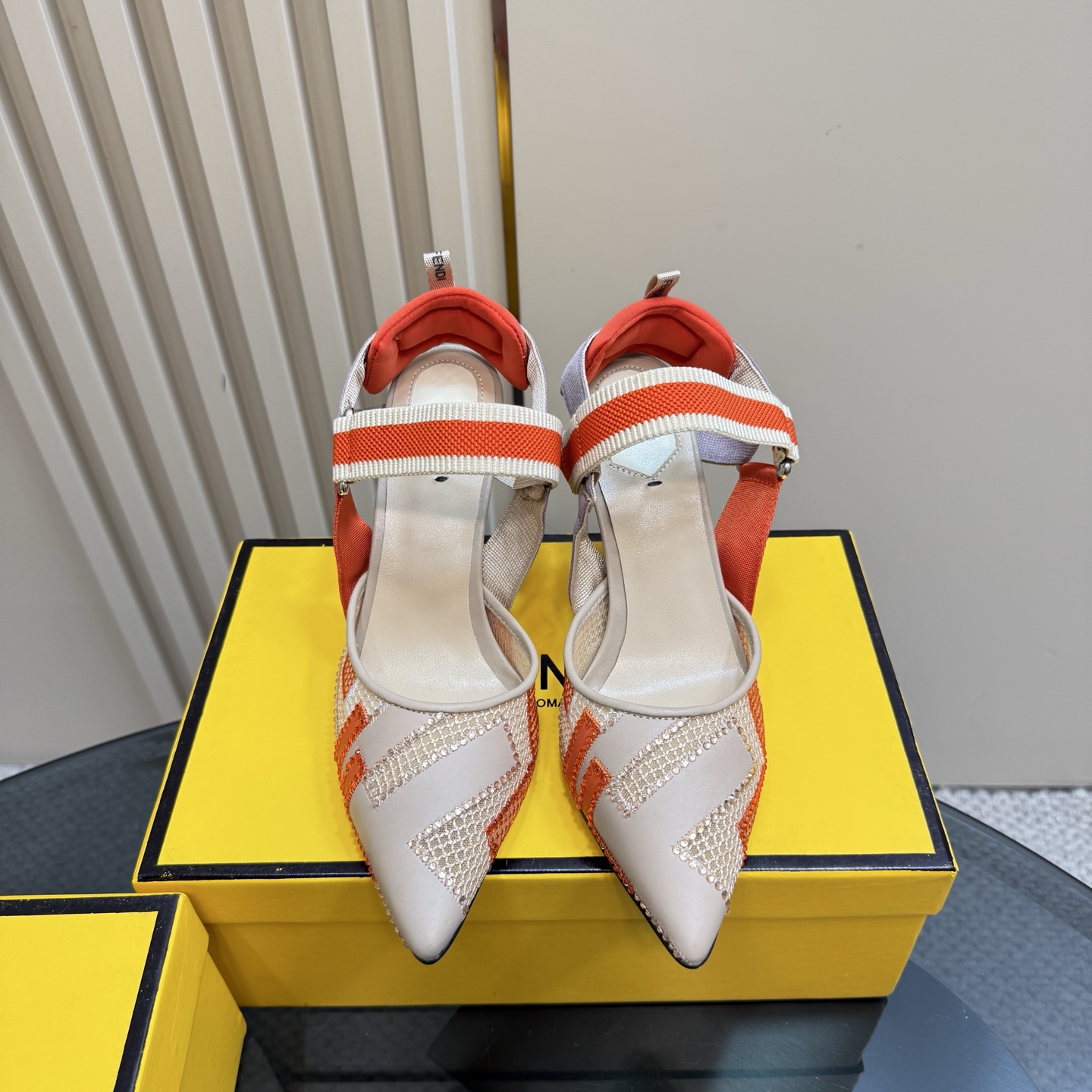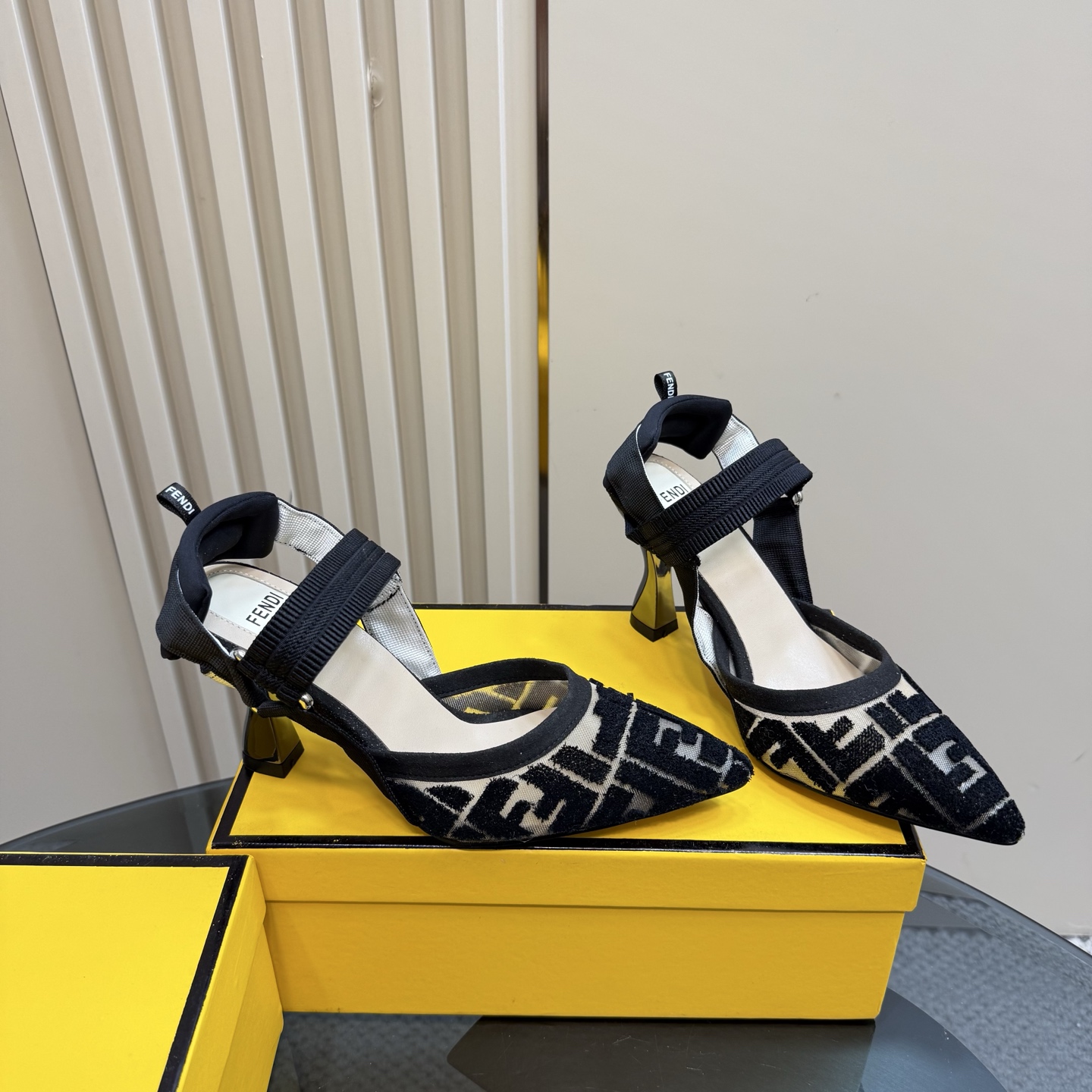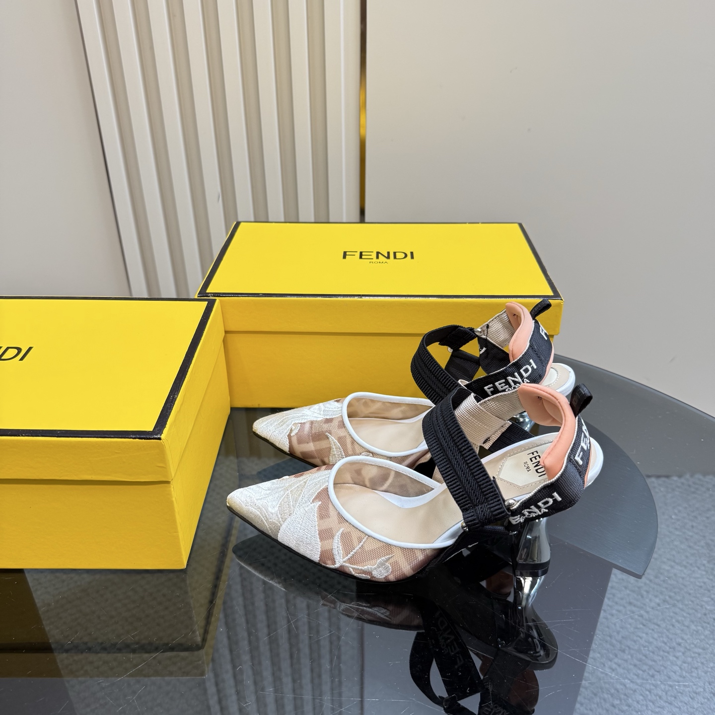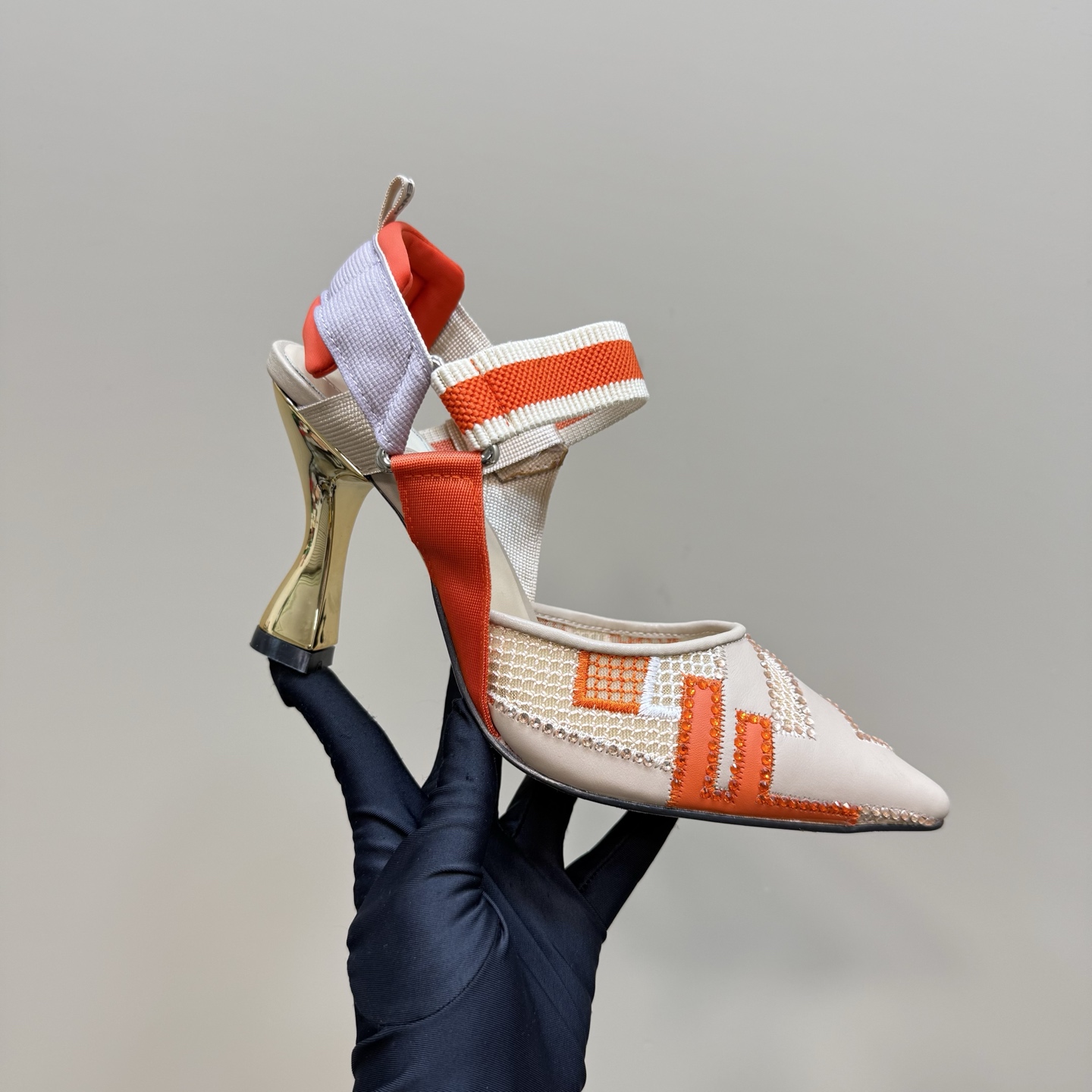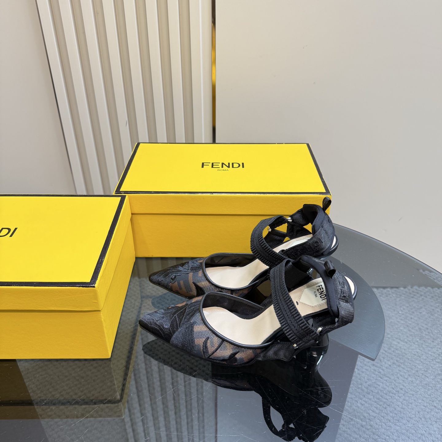 NIGO Fendi Women's Summer Mesh Leather Chunky Heeled High Heels Sandals Shoes #nigo75339
