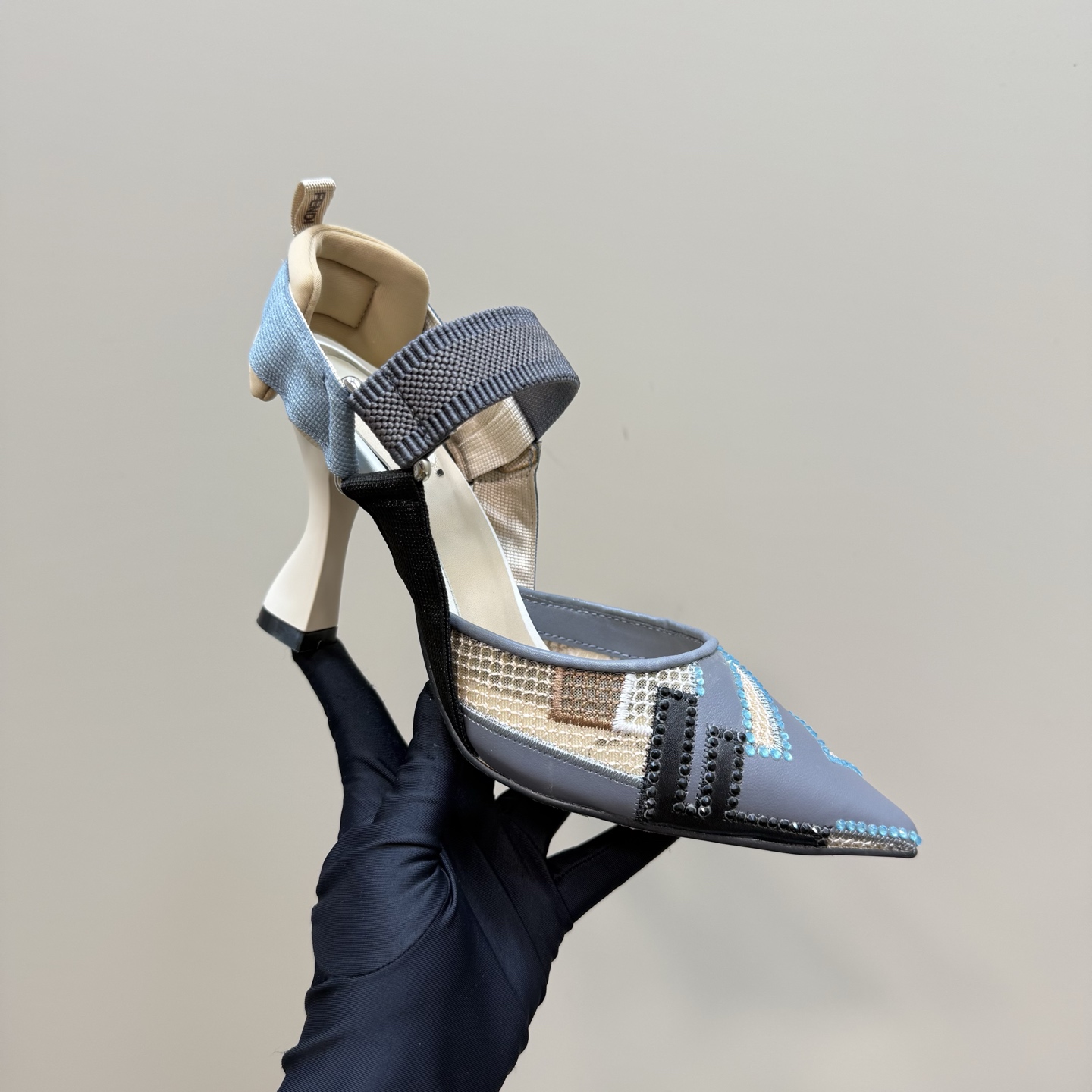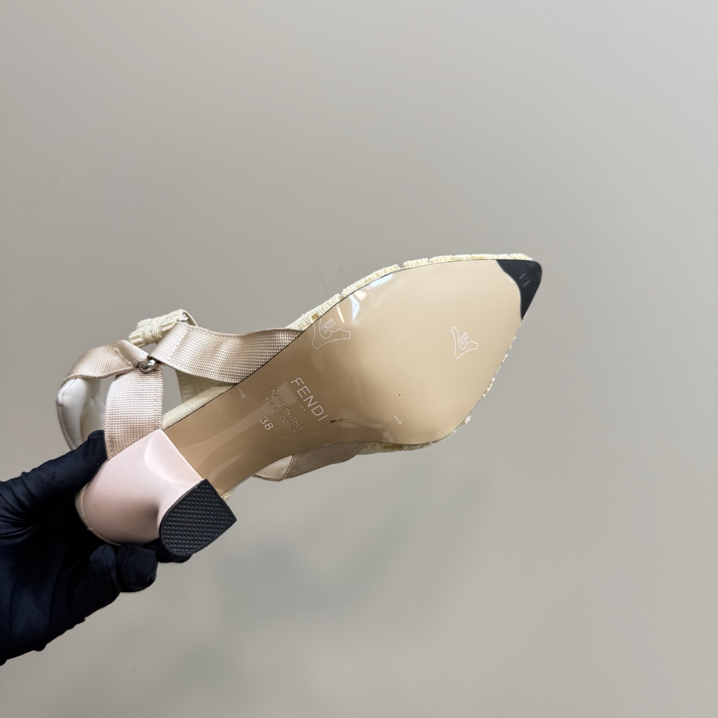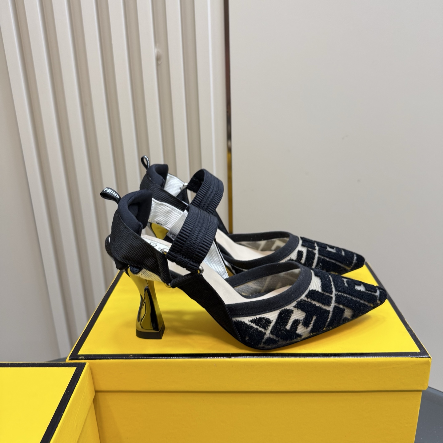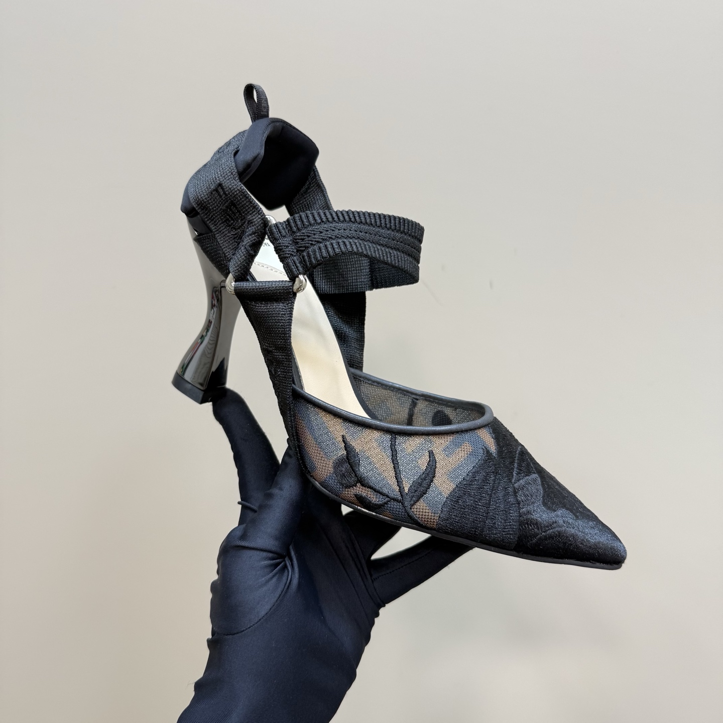 NIGO Fendi Women's Summer Mesh Leather Chunky Heeled High Heels Sandals Shoes #nigo75339