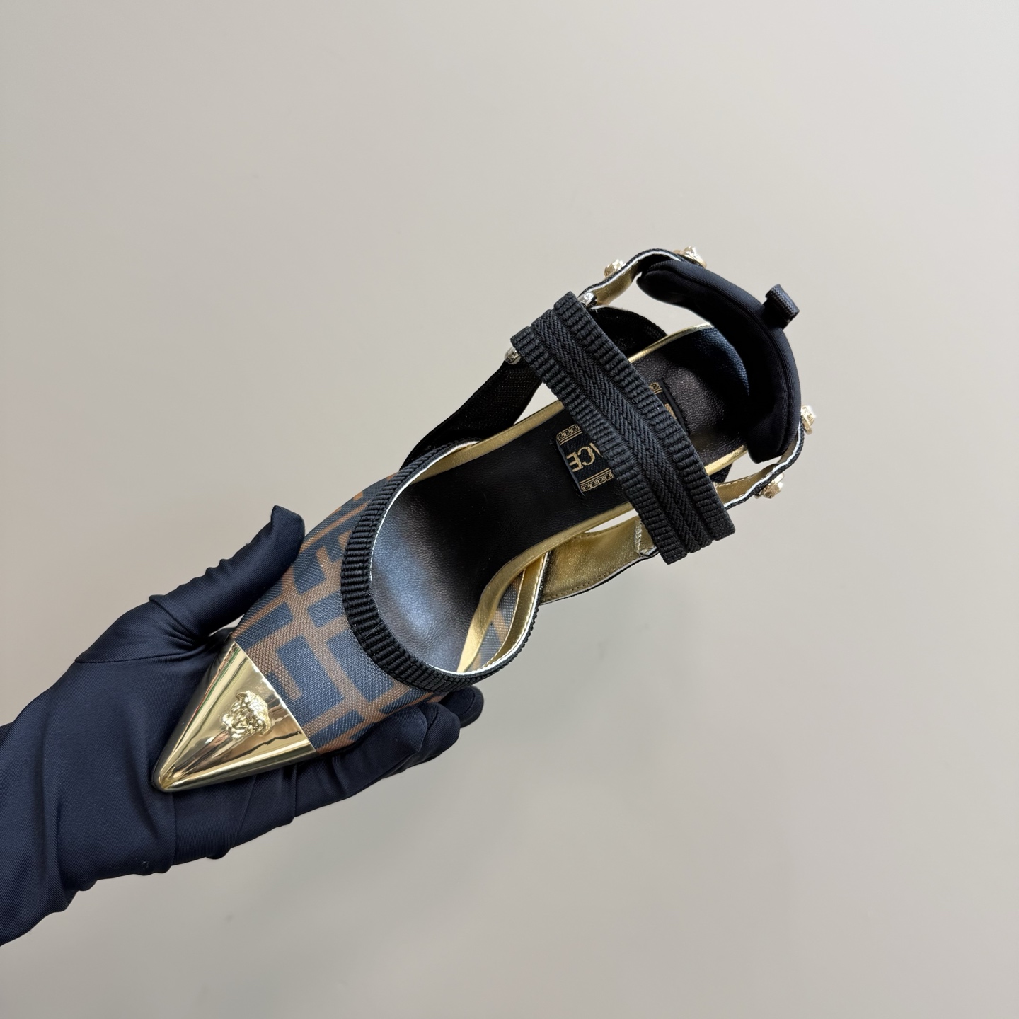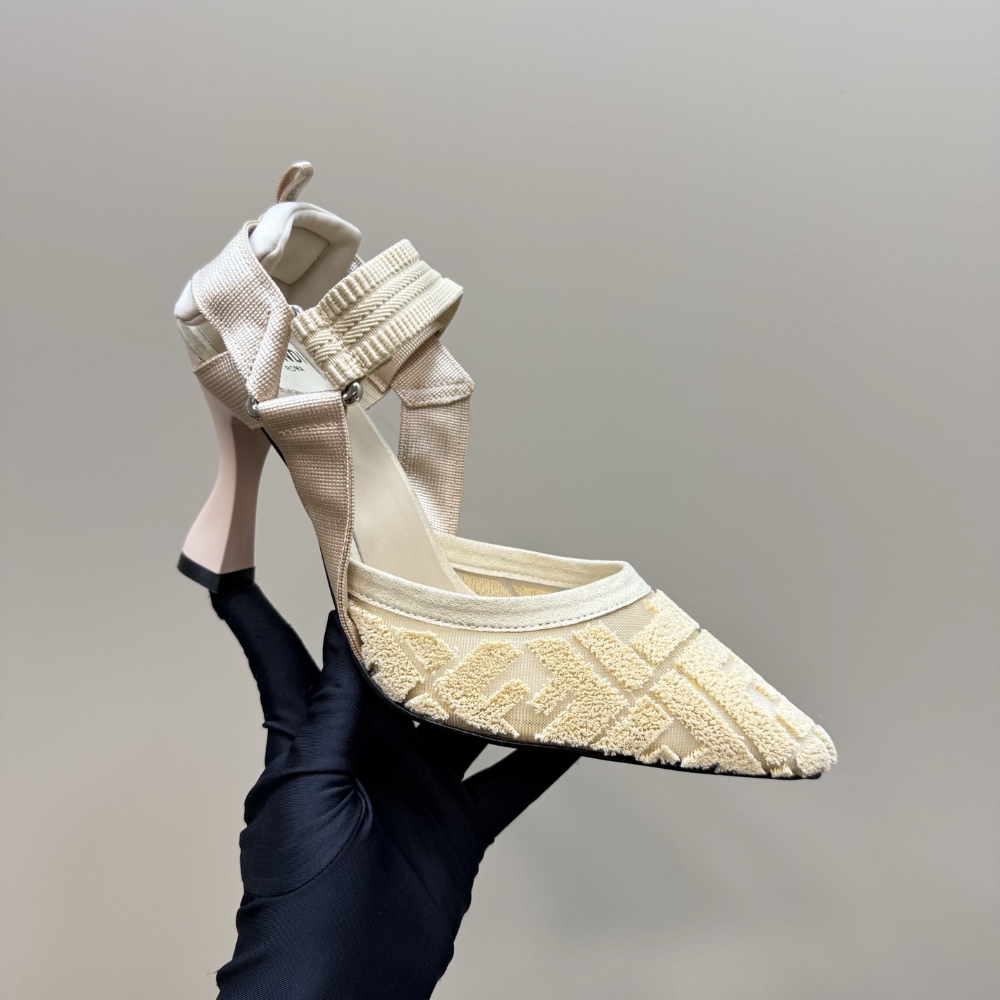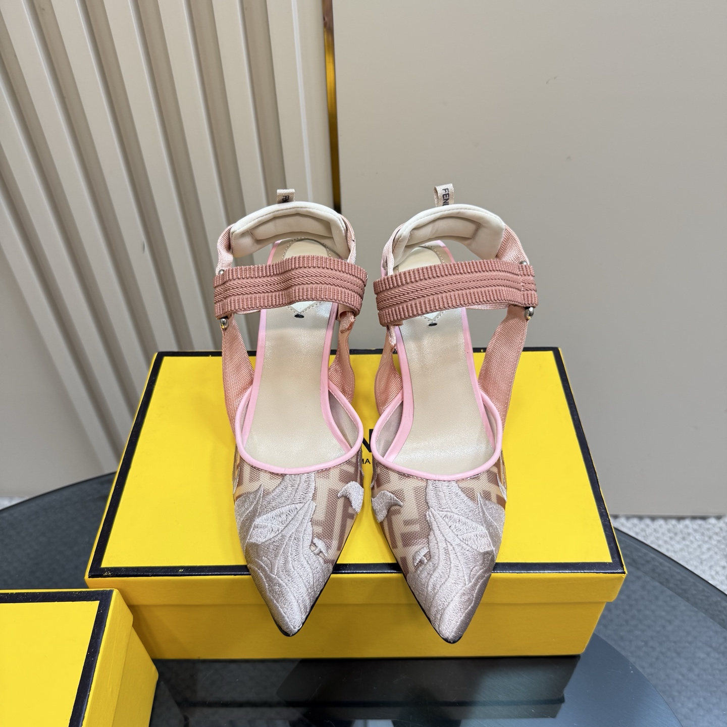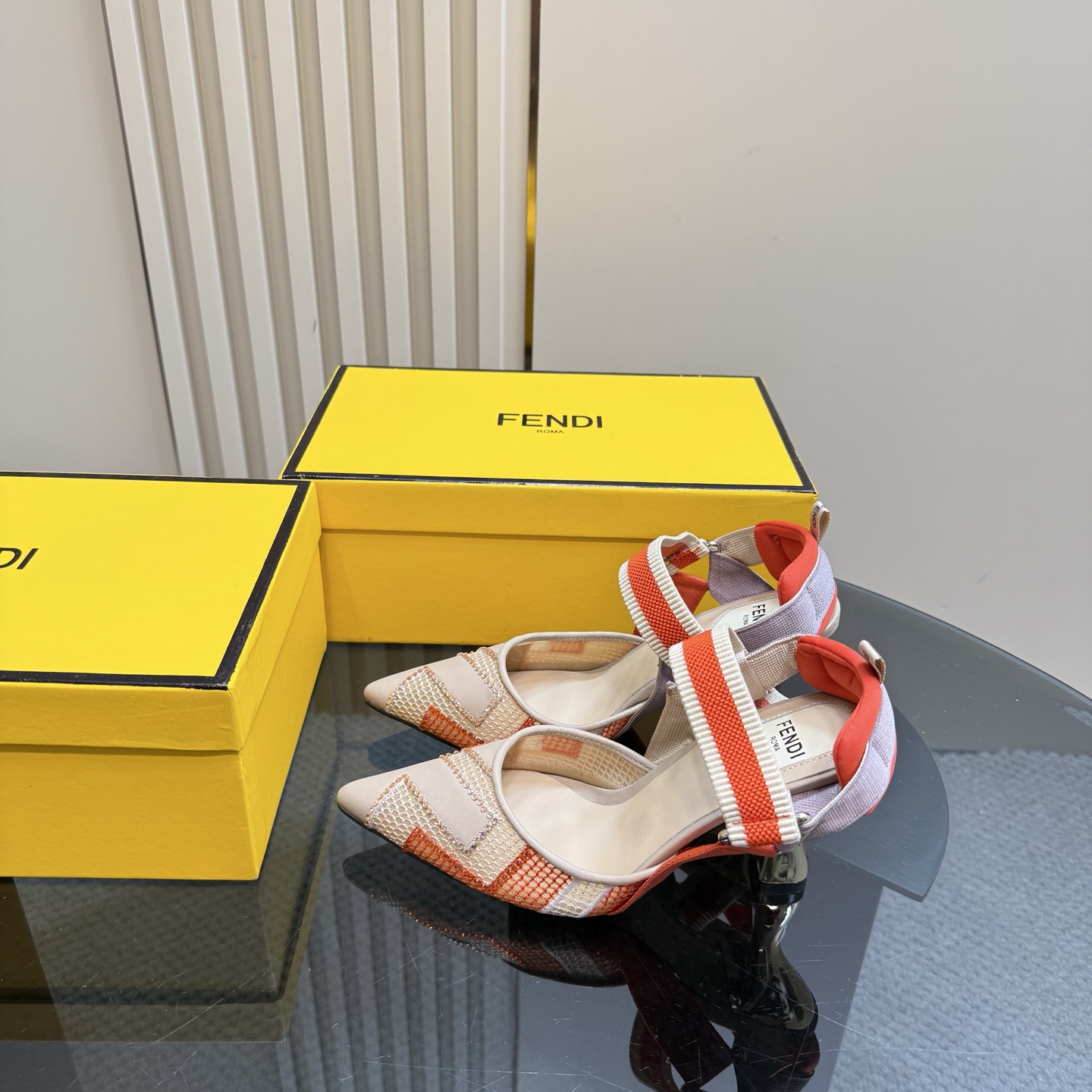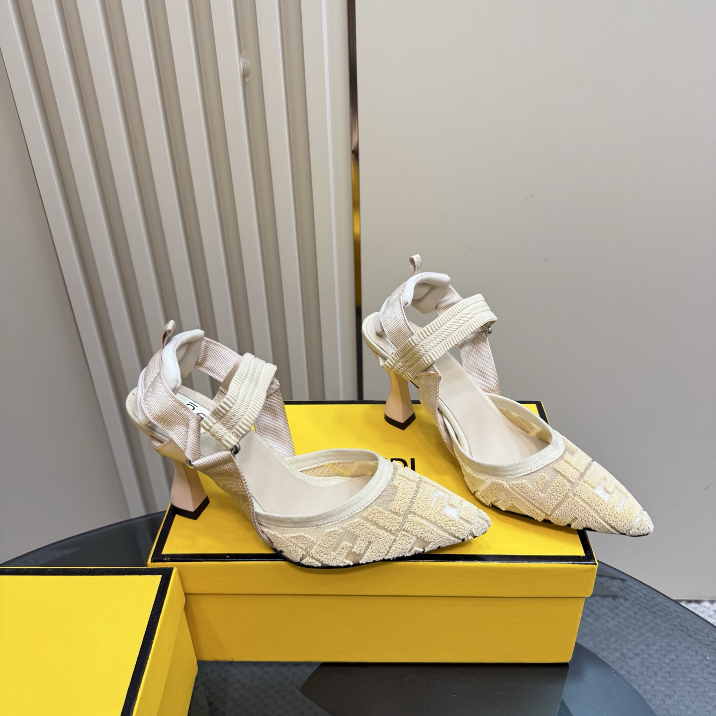 NIGO Fendi Women's Summer Mesh Leather Chunky Heeled High Heels Sandals Shoes #nigo75339