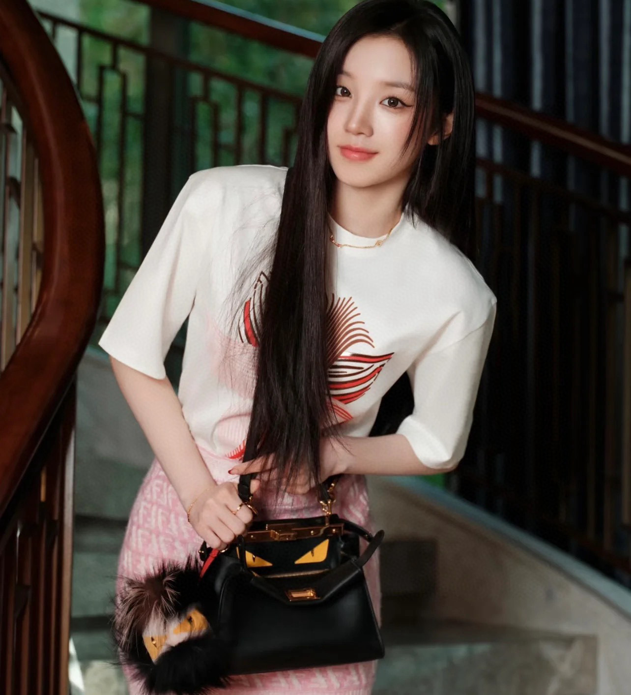 NIGO Fendi Women's Summer Pink Floral Print Round Neck Cotton Short Sleeve T-Shirt #nigo75836