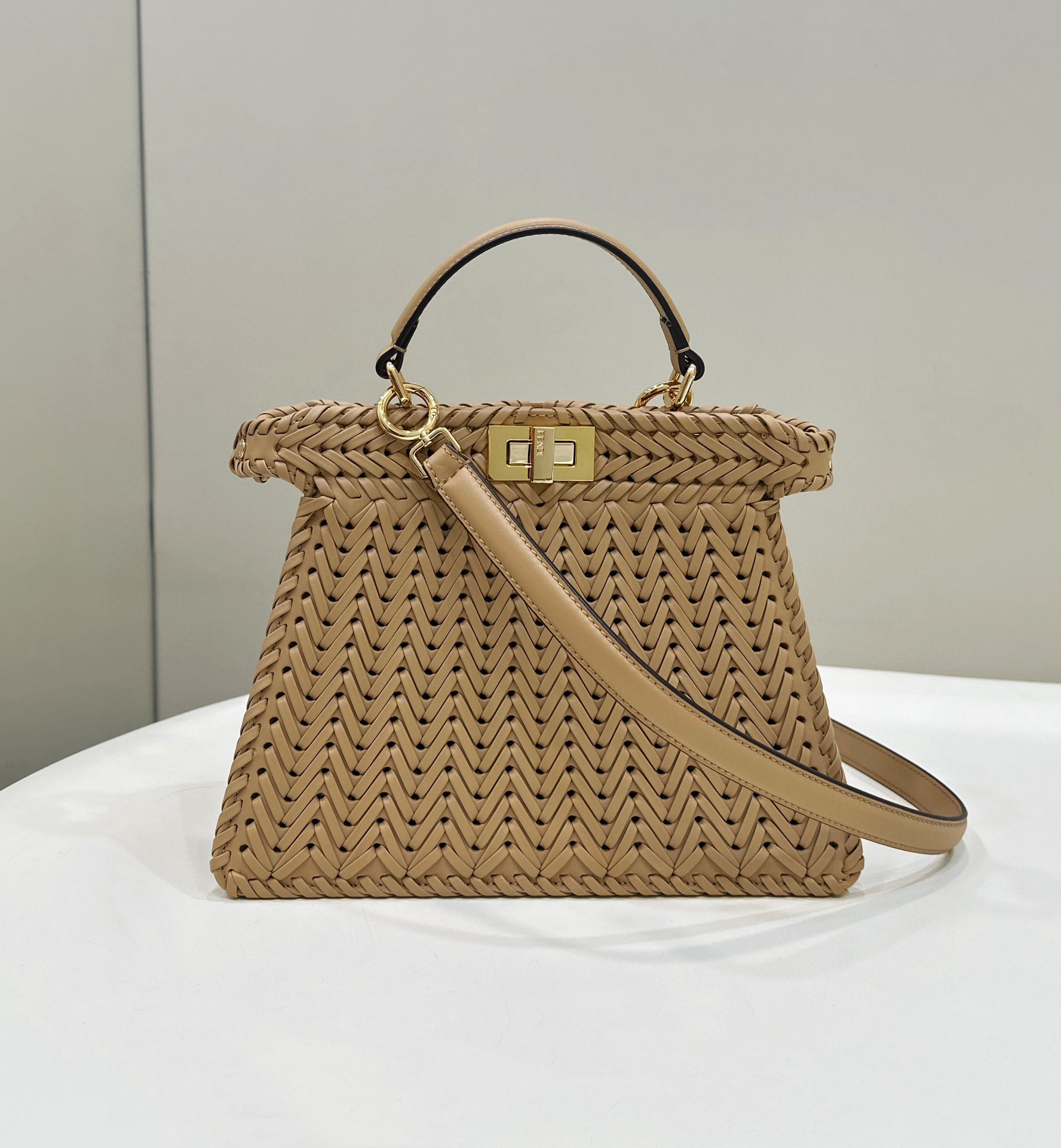 NIGO Fendi Woven Leather Handbag Casual Bags Fashionable Gold Buckle Crossbody Bag #nigo71288