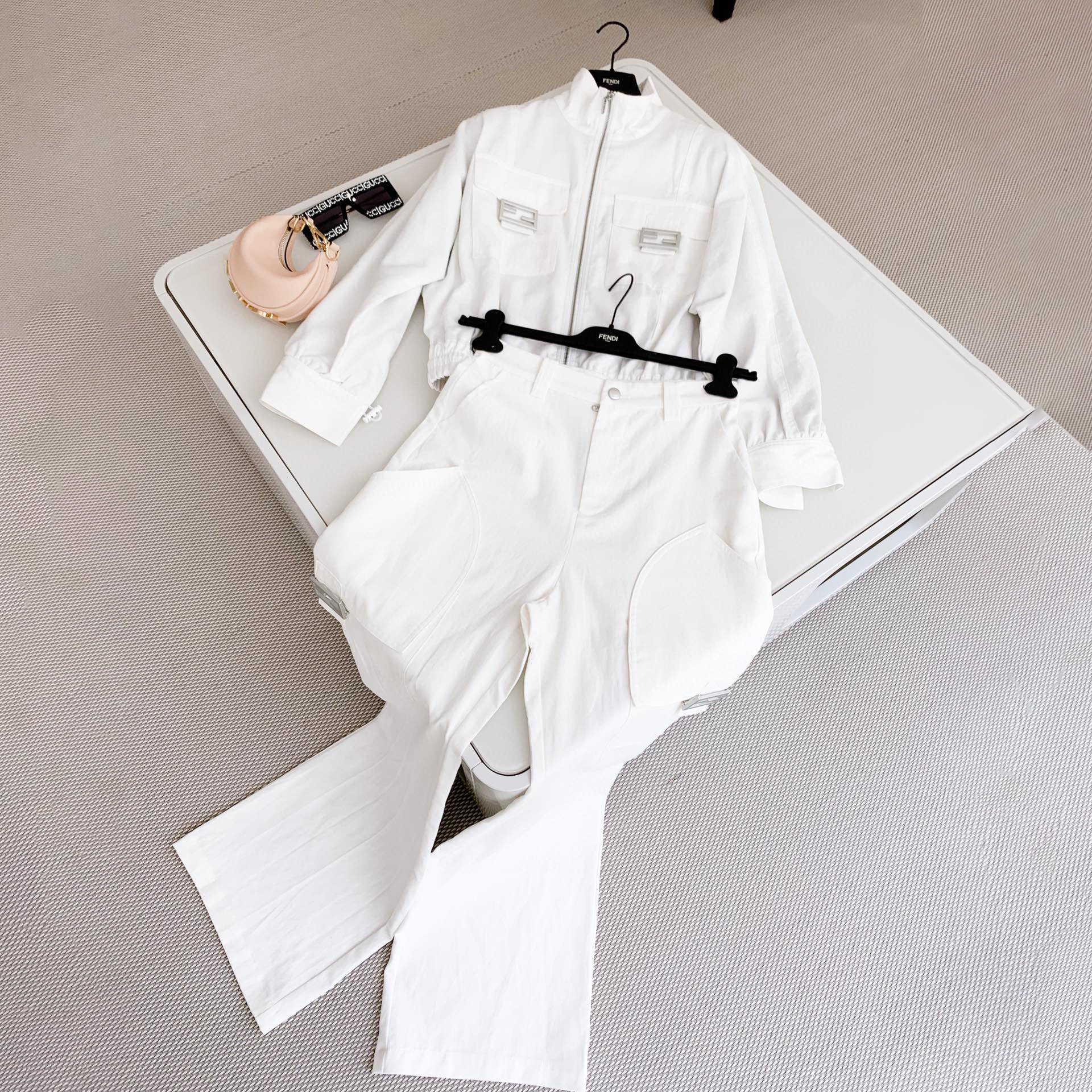 Fendi NIGO Woman White Canvas Jacket Pants Set Suit #nigo21149