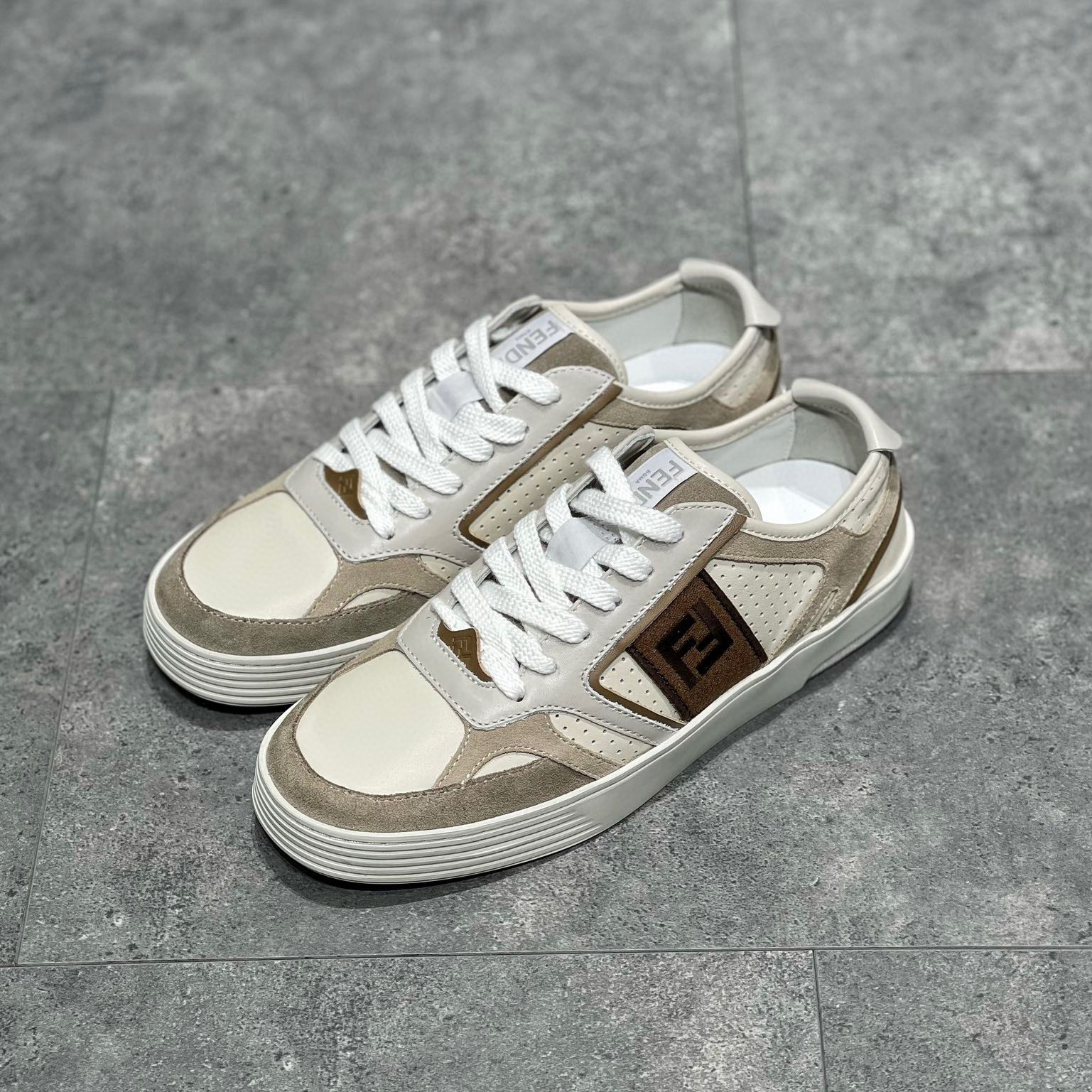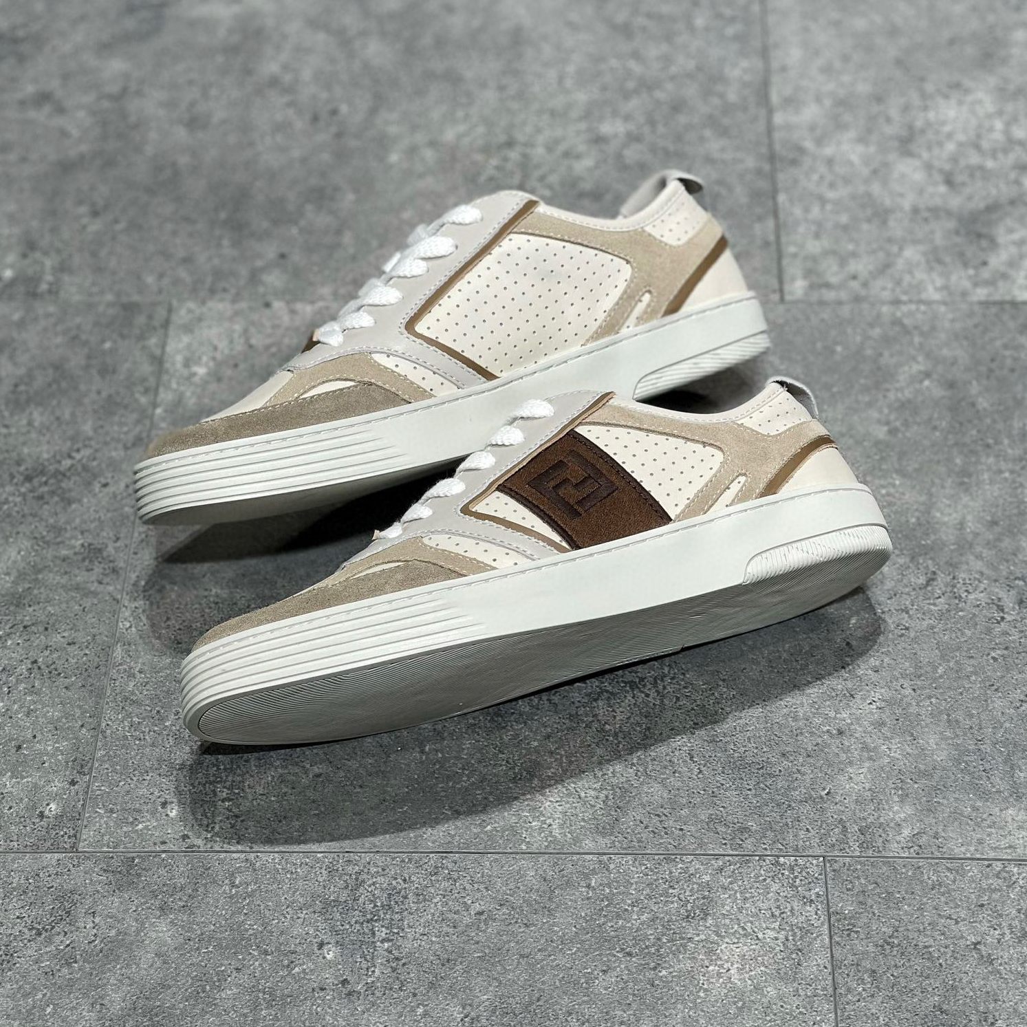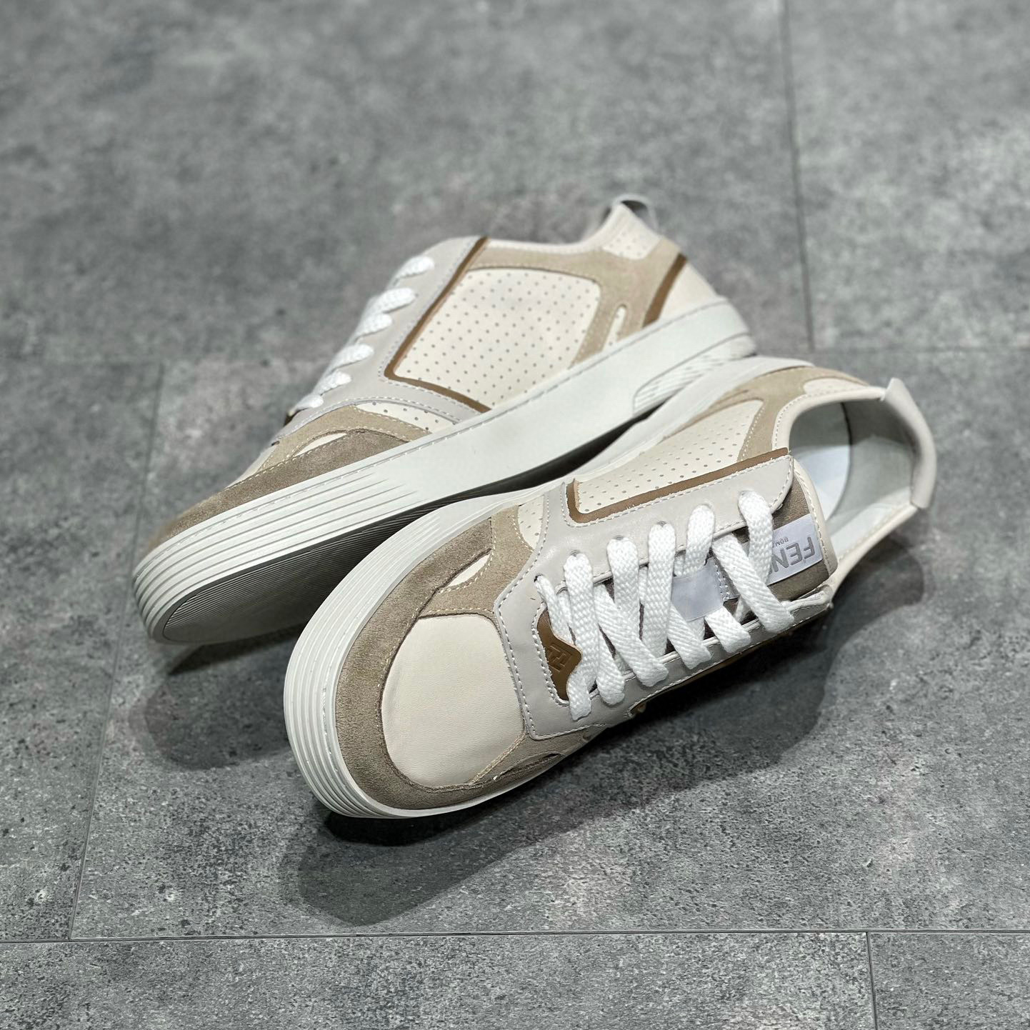 Fendi NIGO Beige Leather Lace Up Casual Sneakers Shoes #nigo96138