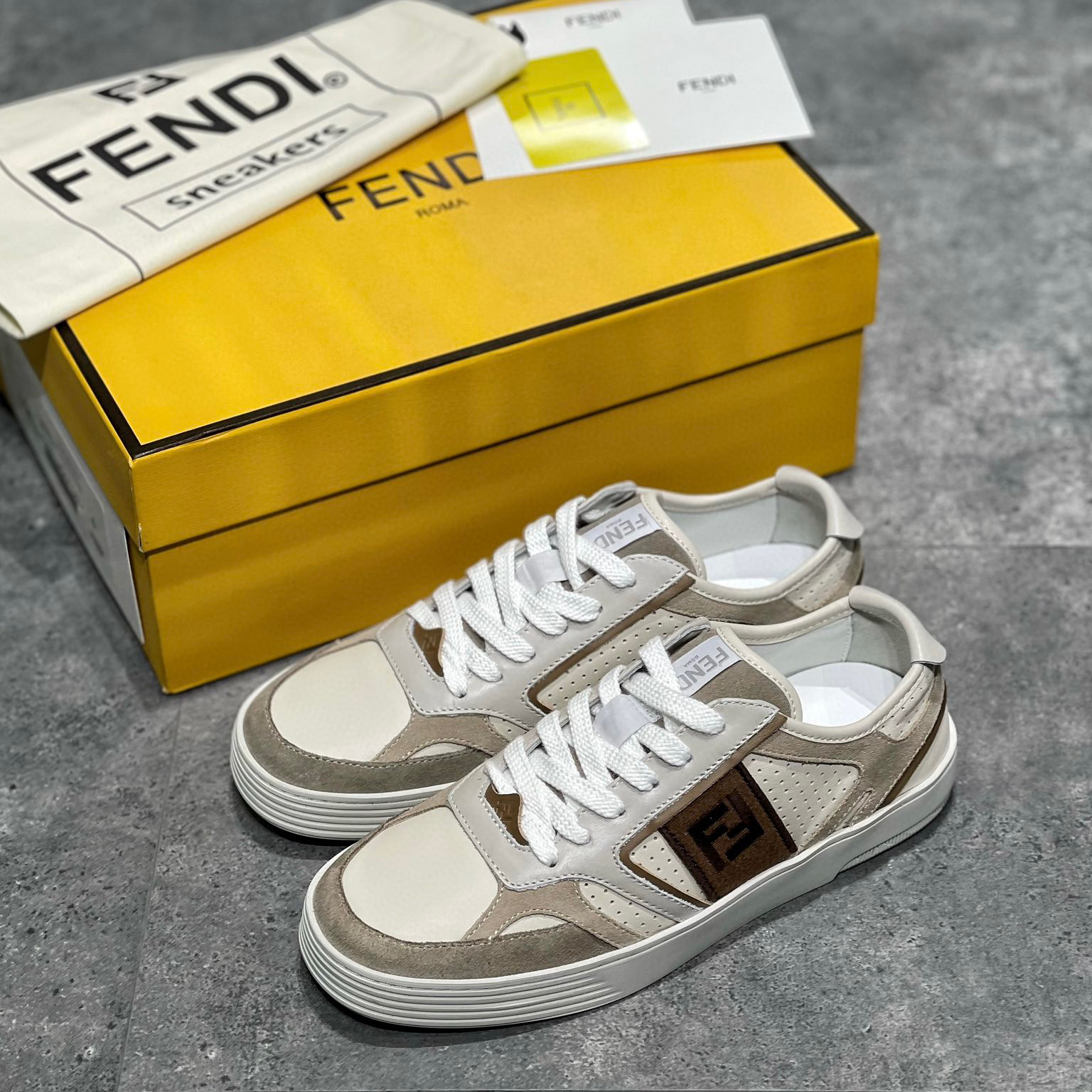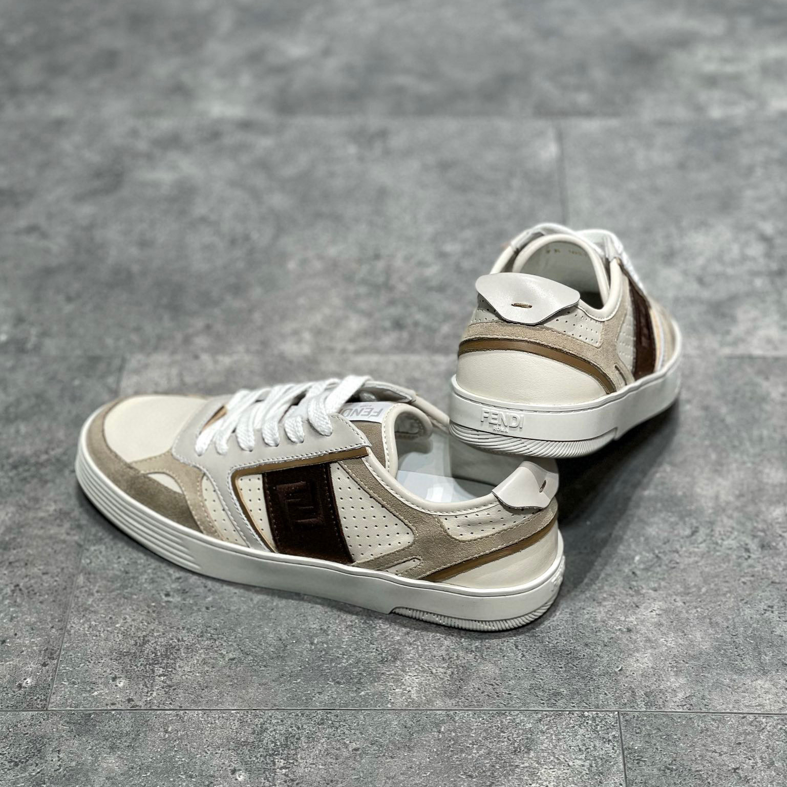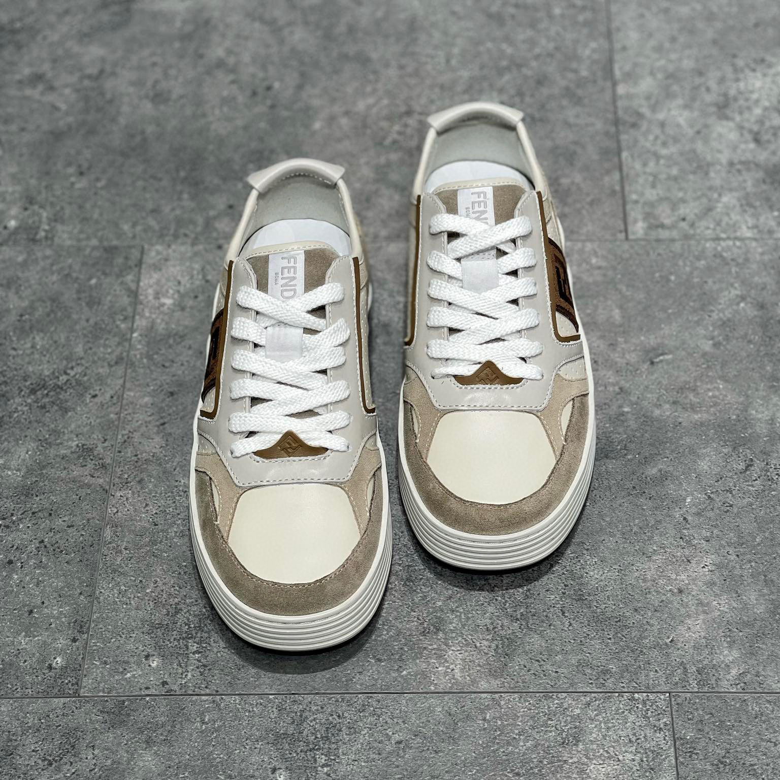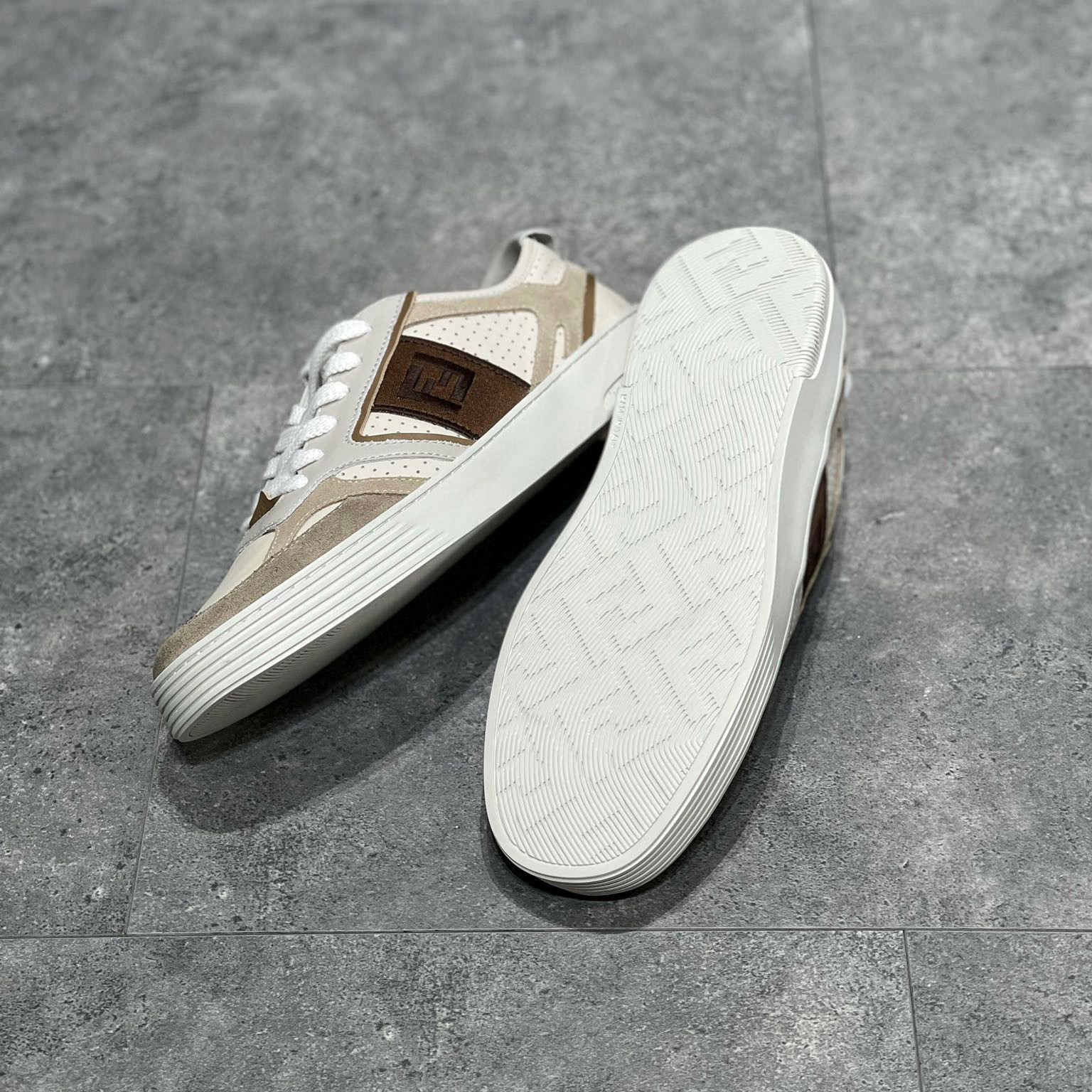 Fendi NIGO Beige Leather Lace Up Casual Sneakers Shoes #nigo96138