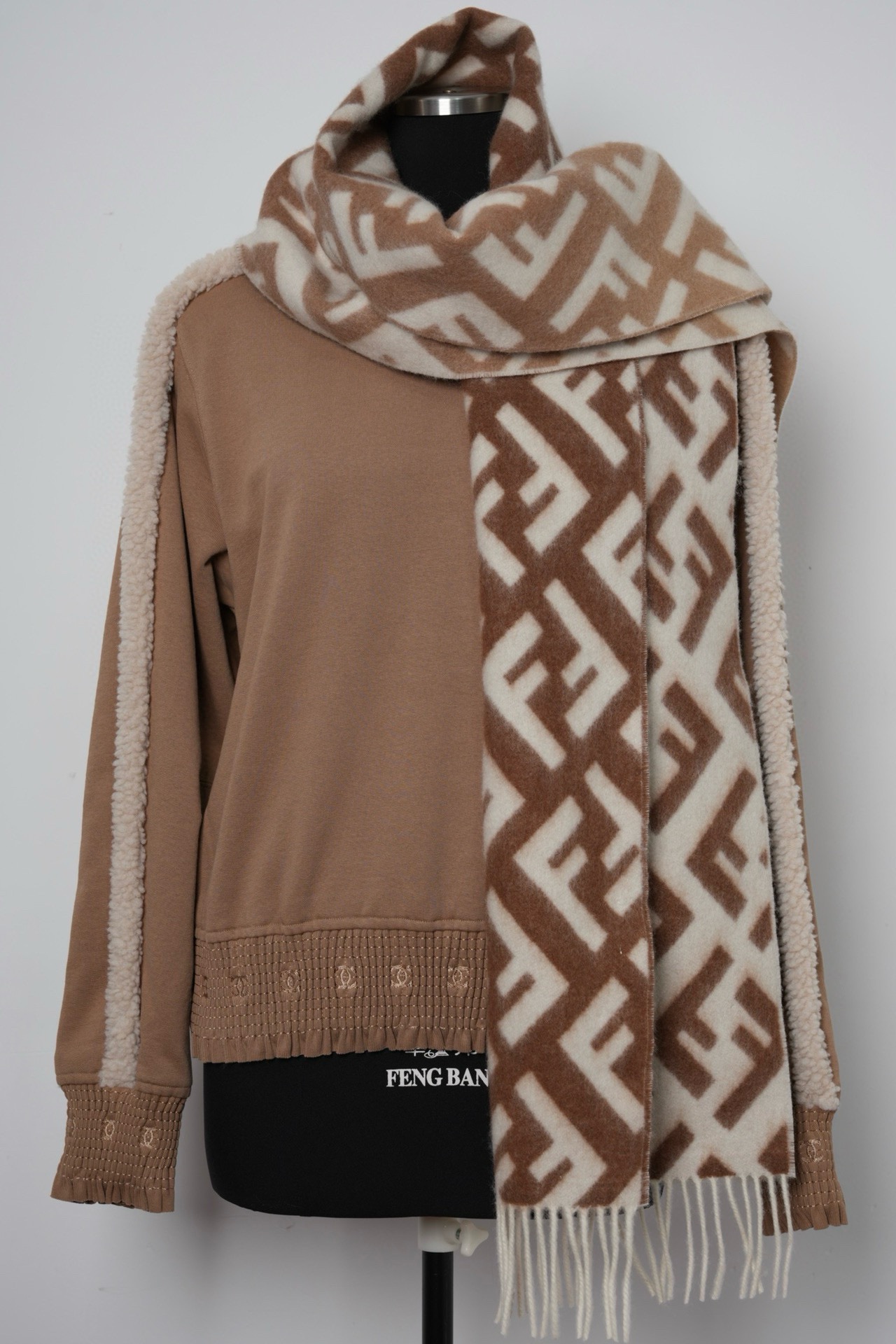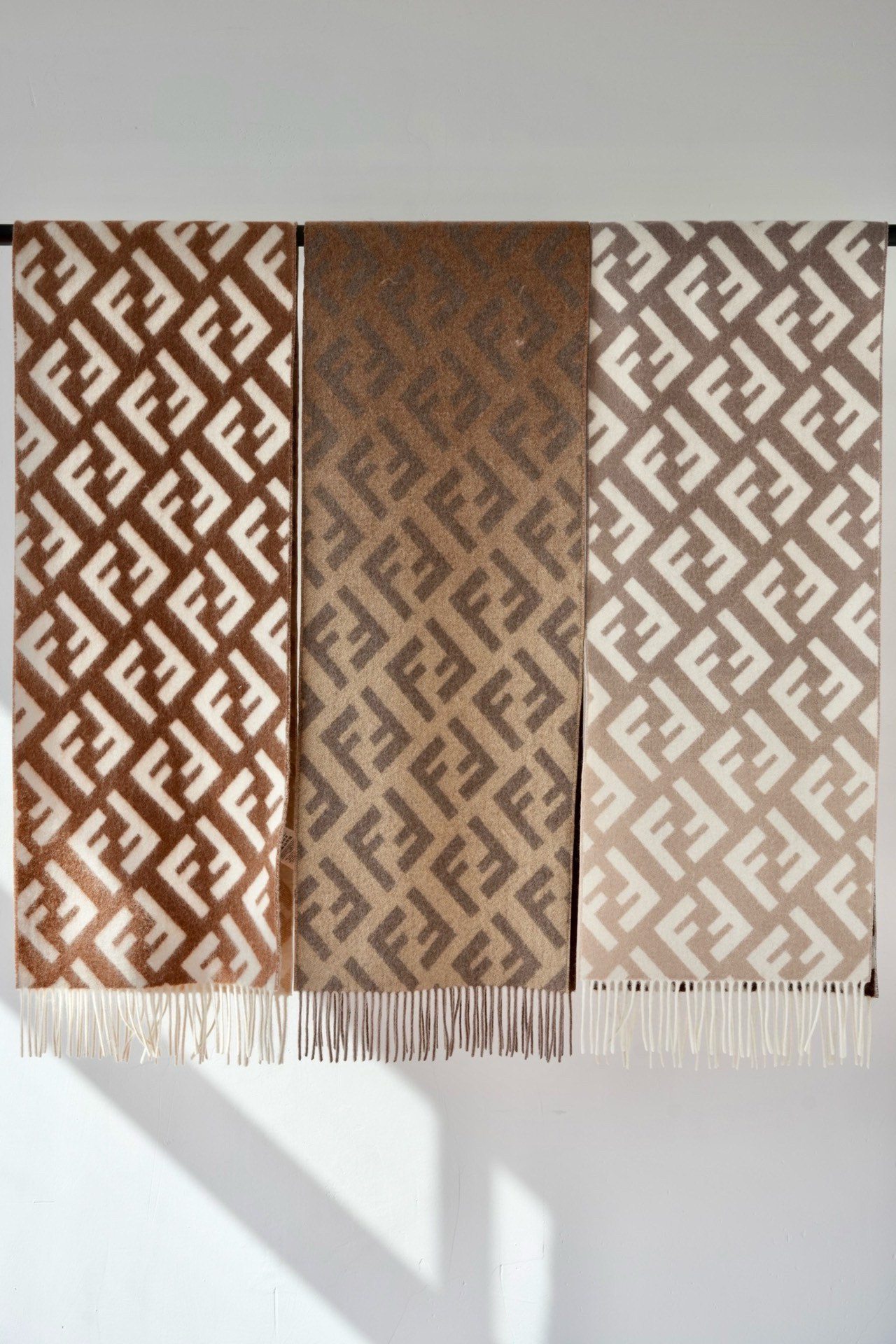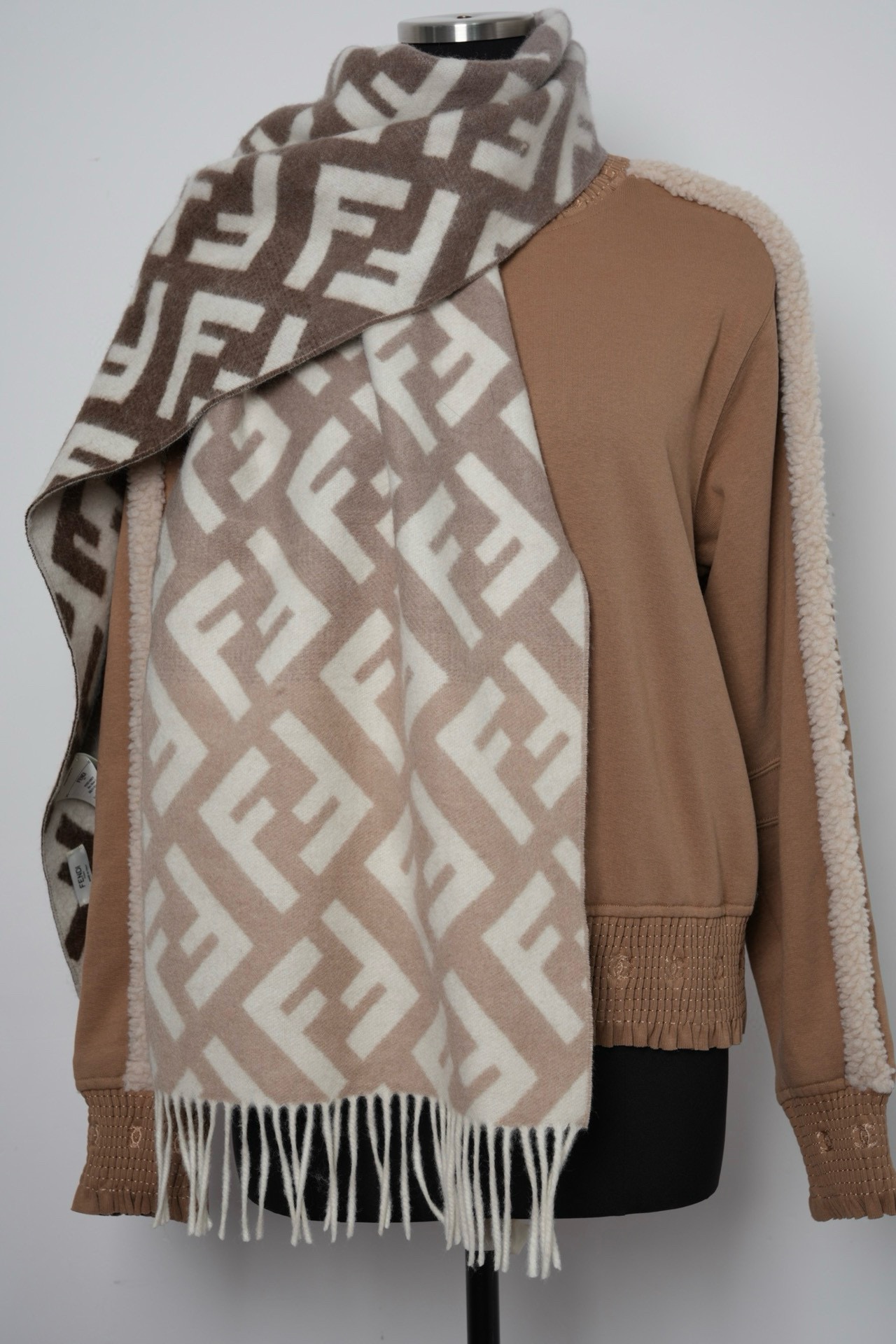 NIGO Fendi Women's FF Letter Logo Pattern Raw Edge Warm Fleece Scarf #nigo73848