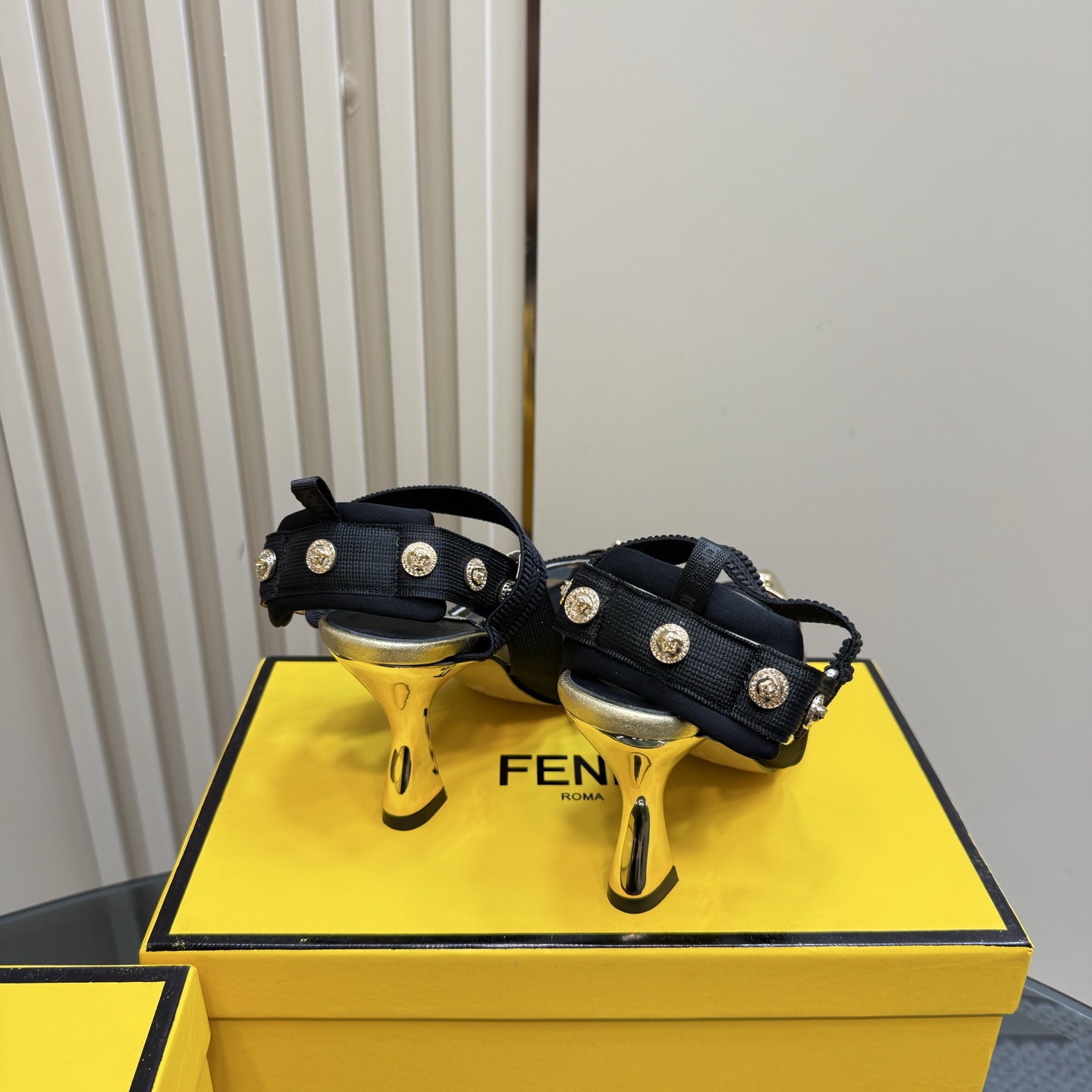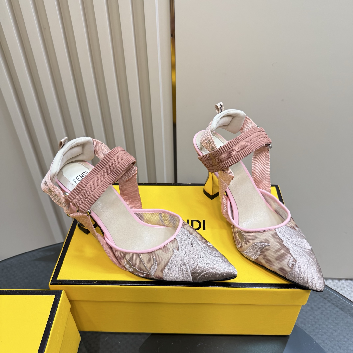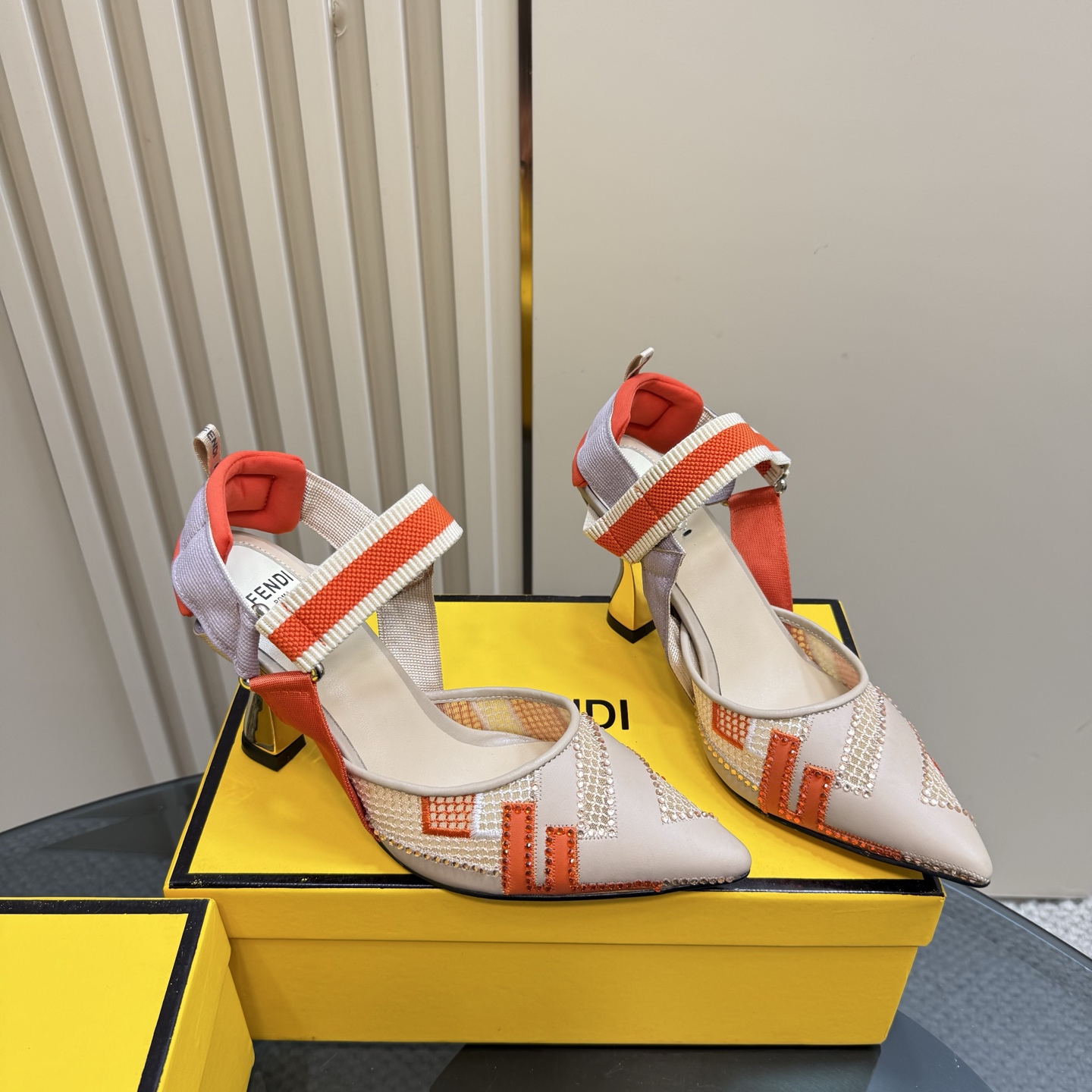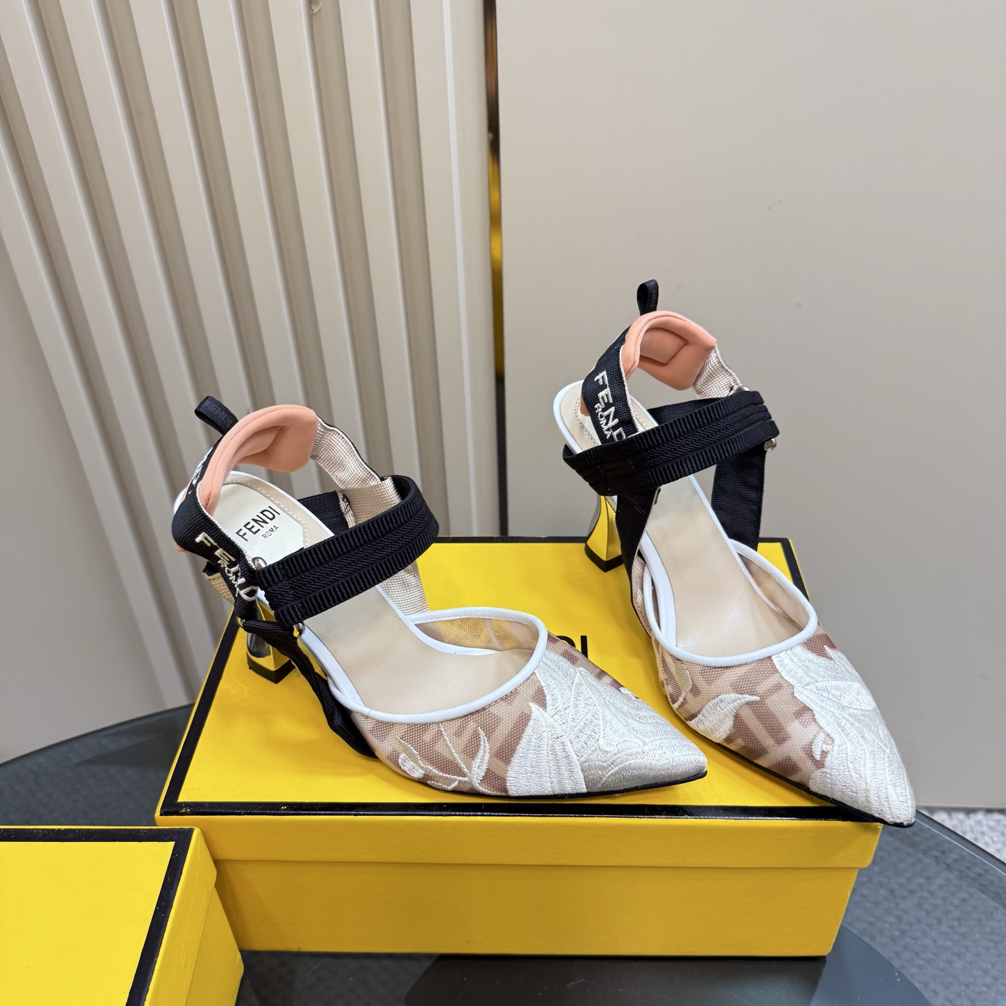 NIGO Fendi Women's Summer Mesh Leather Chunky Heeled High Heels Sandals Shoes #nigo75339