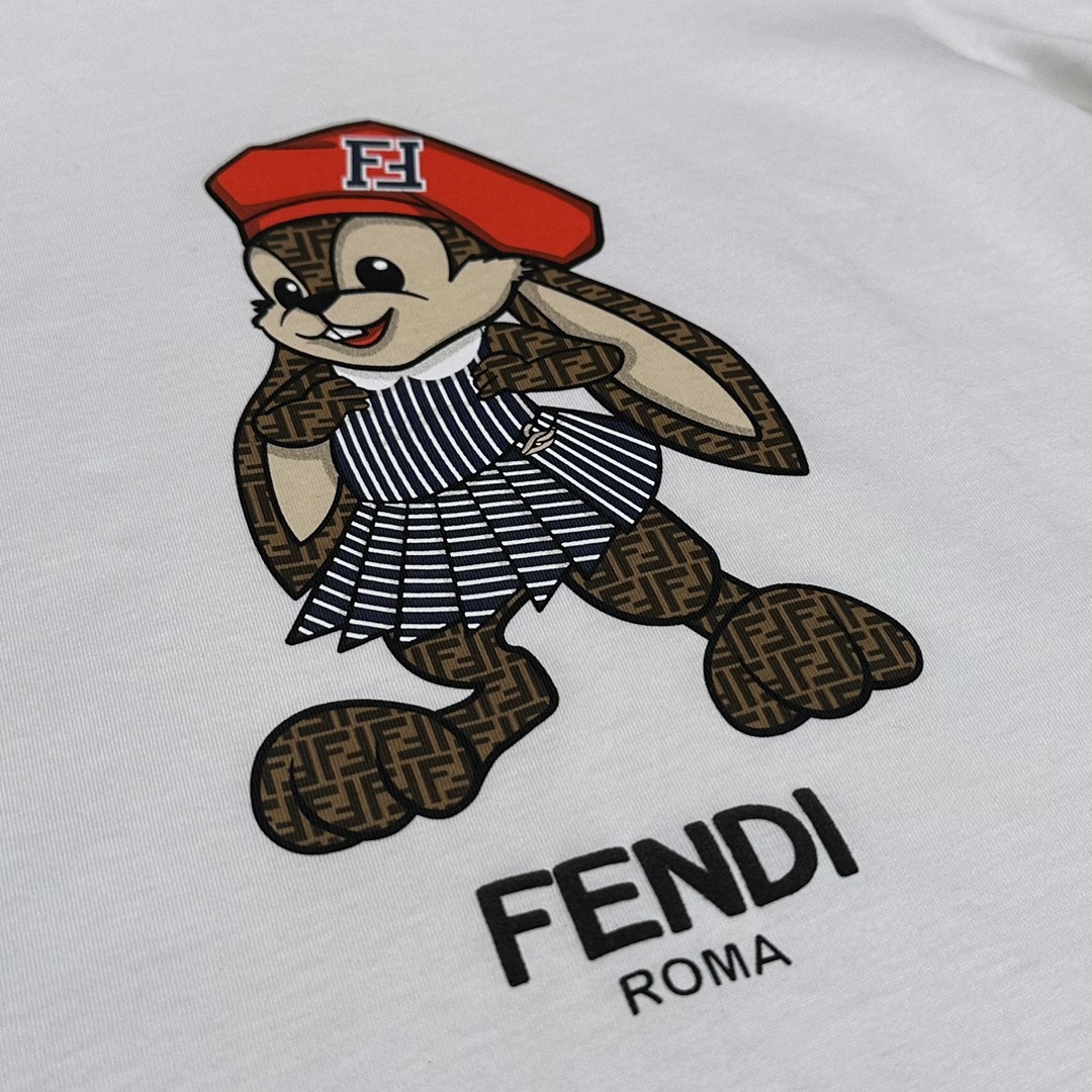 NIGO Fendi Kid's Summer Pattern Printed Short Sleeve Pullover Round Neck Cotton White Junior T-Shirt #nigo31341