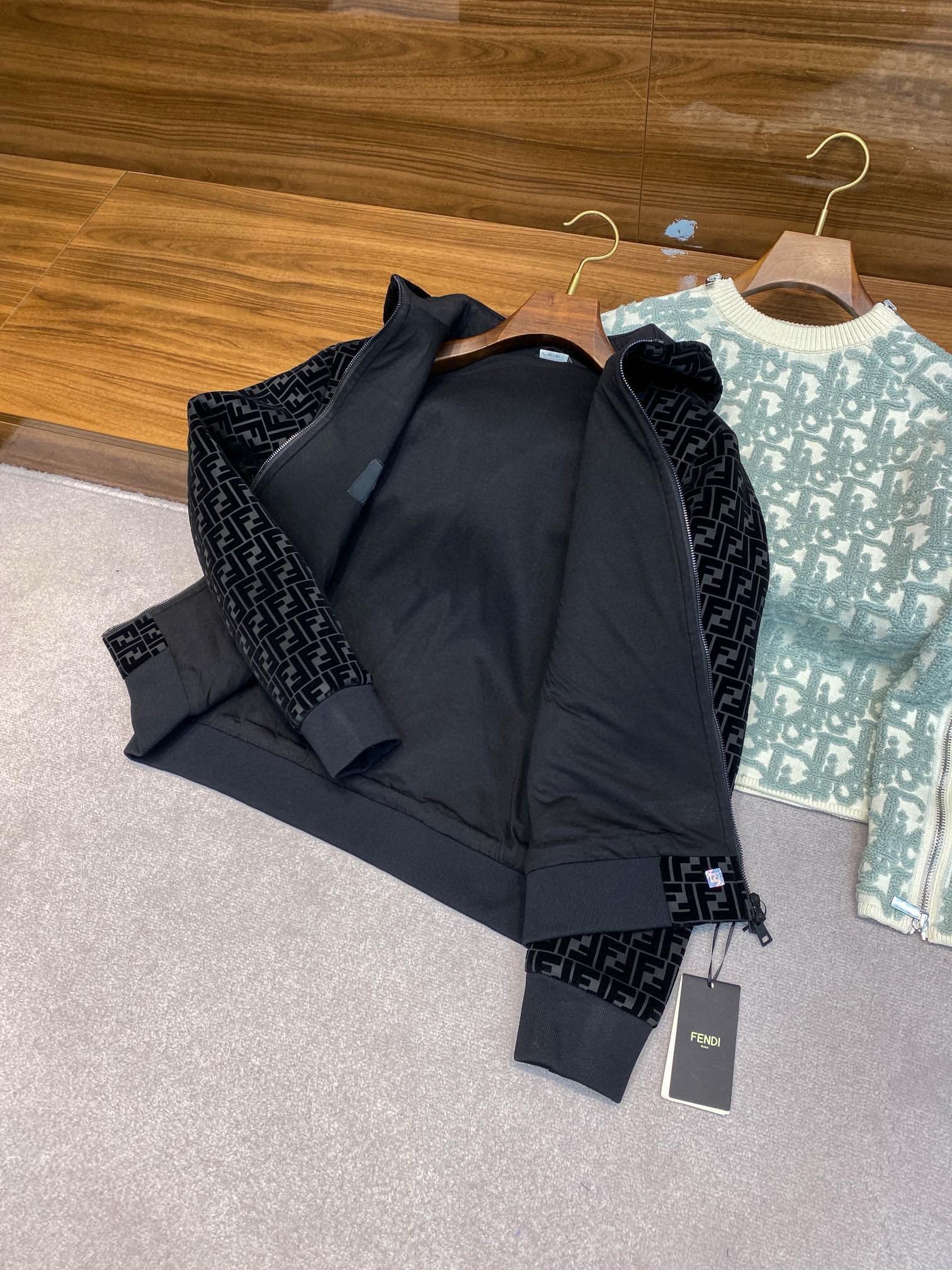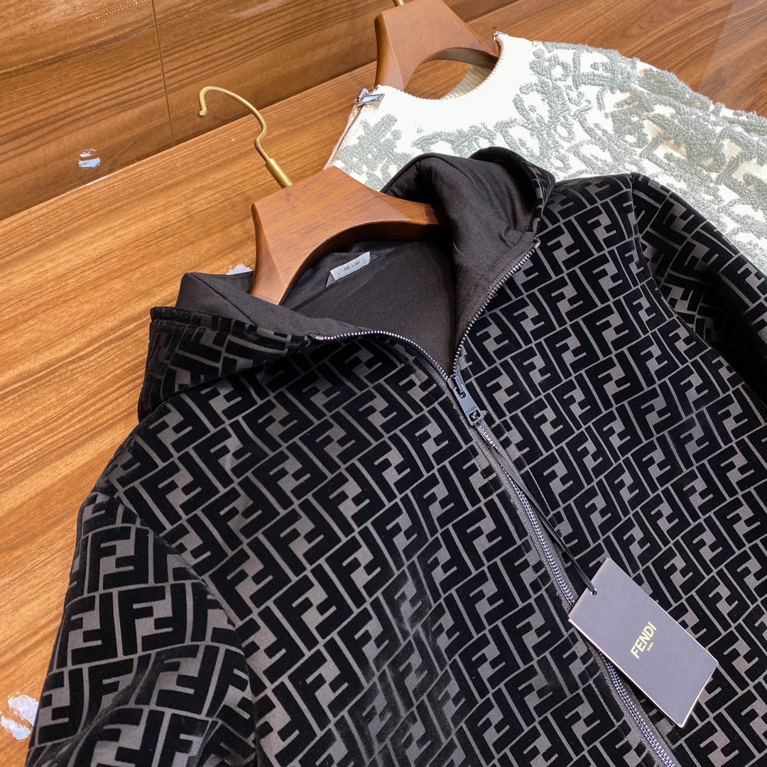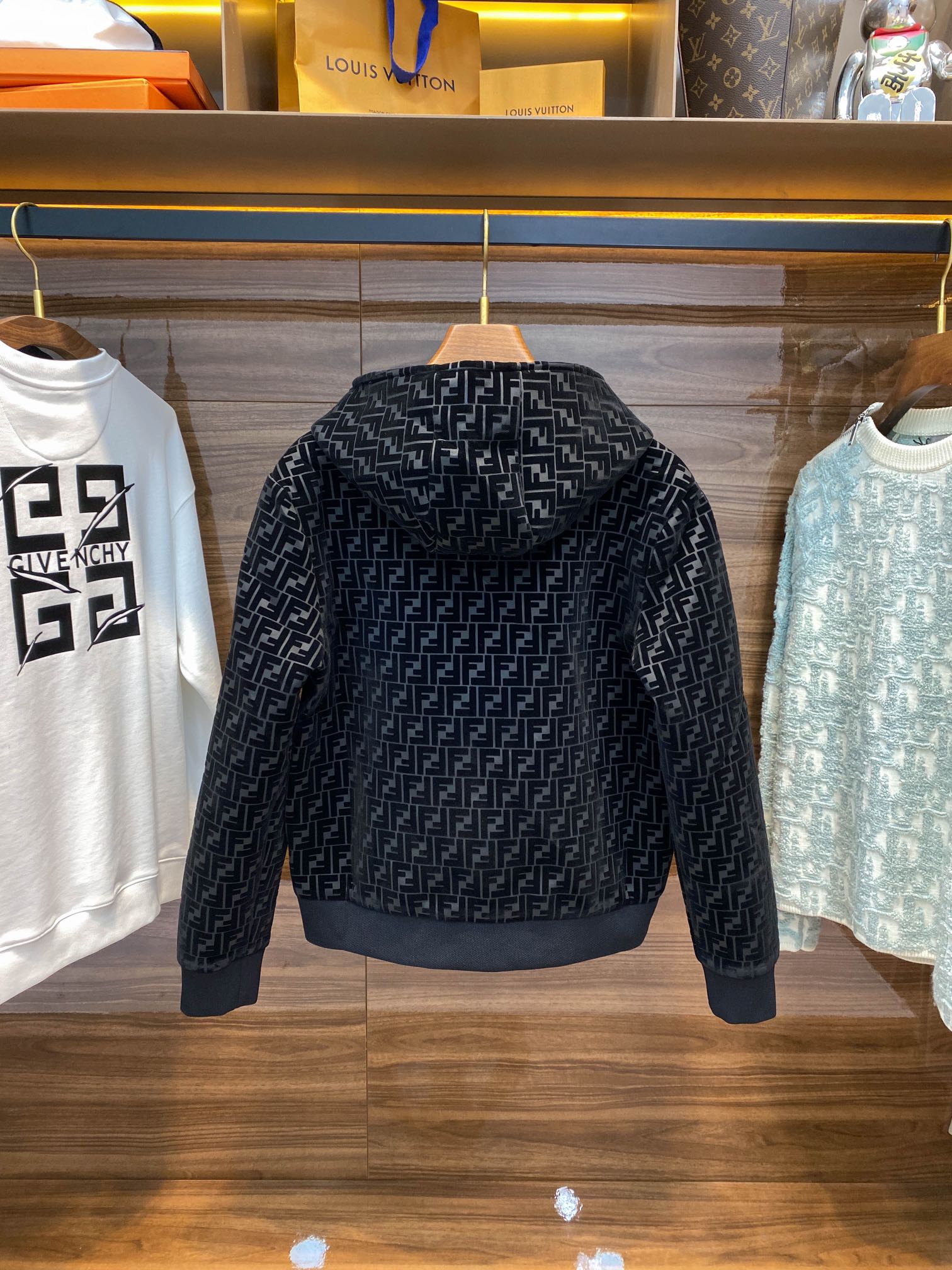NIGO Fendi Men's Spring Autumn Black Letter Logo Printed Plain Cloth Sport Zipper Hooded Jacket #nigo73137