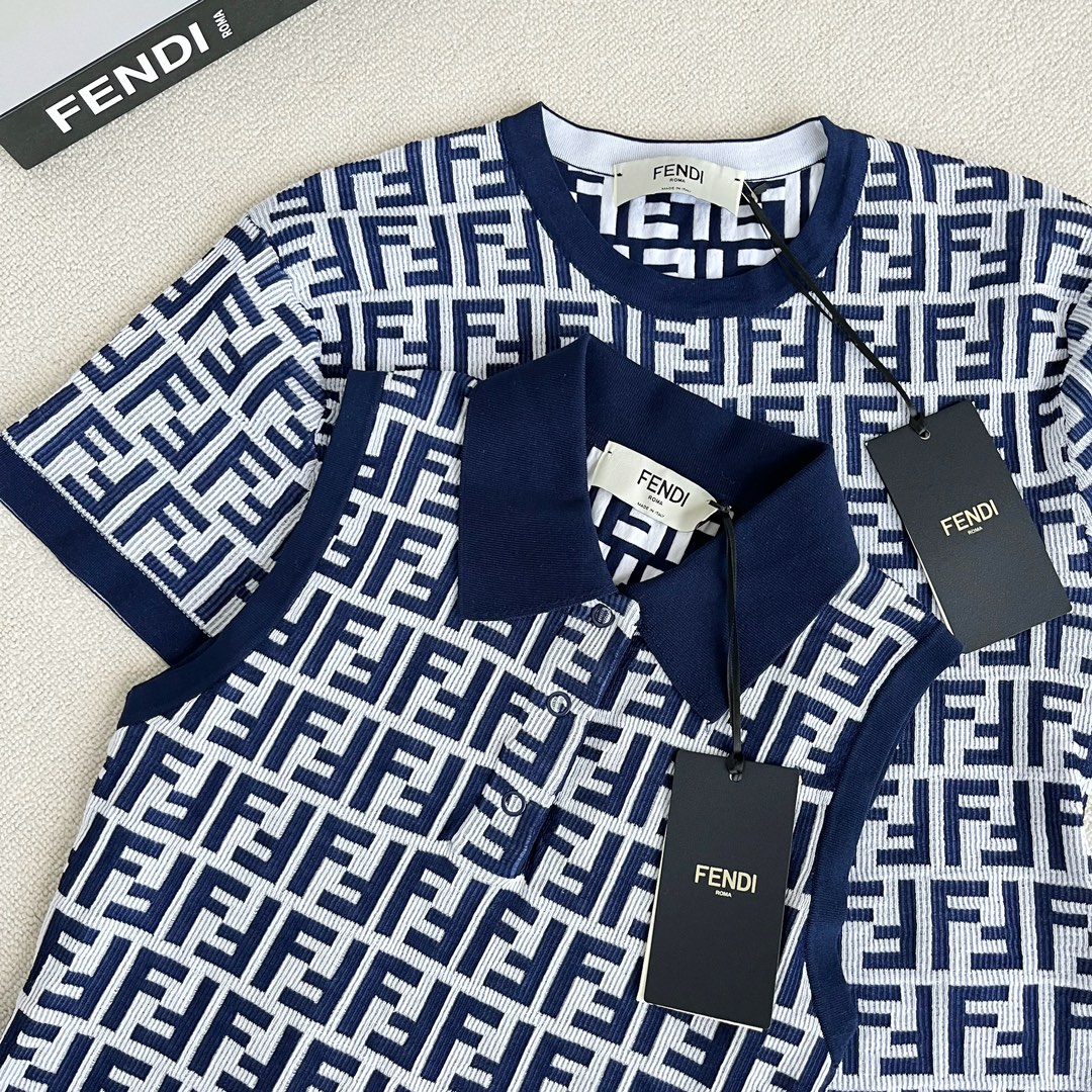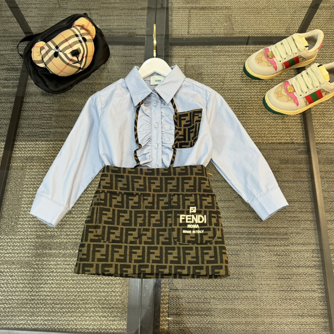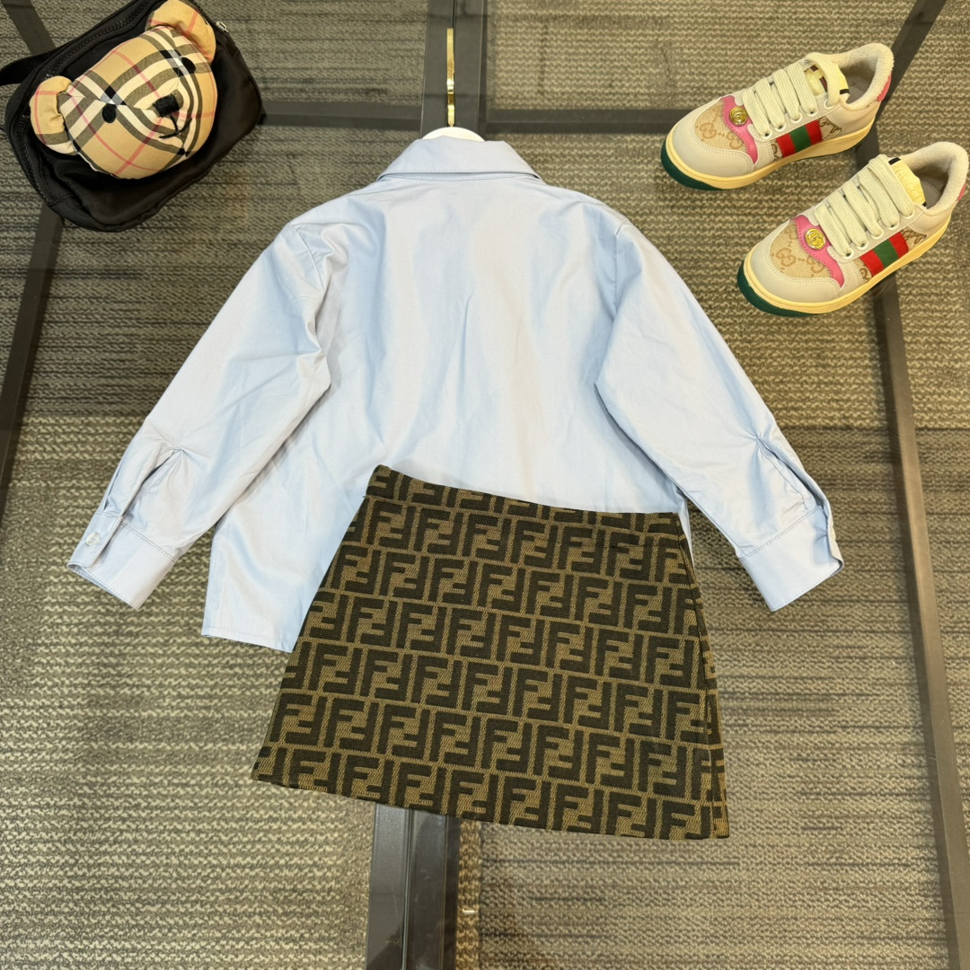 NIGO Fendi Women's Summer FF Letter Printed Lapel Single Breasted Long Sleeve Shirt Silhouette Half Skirt Set Suit #nigo73823
