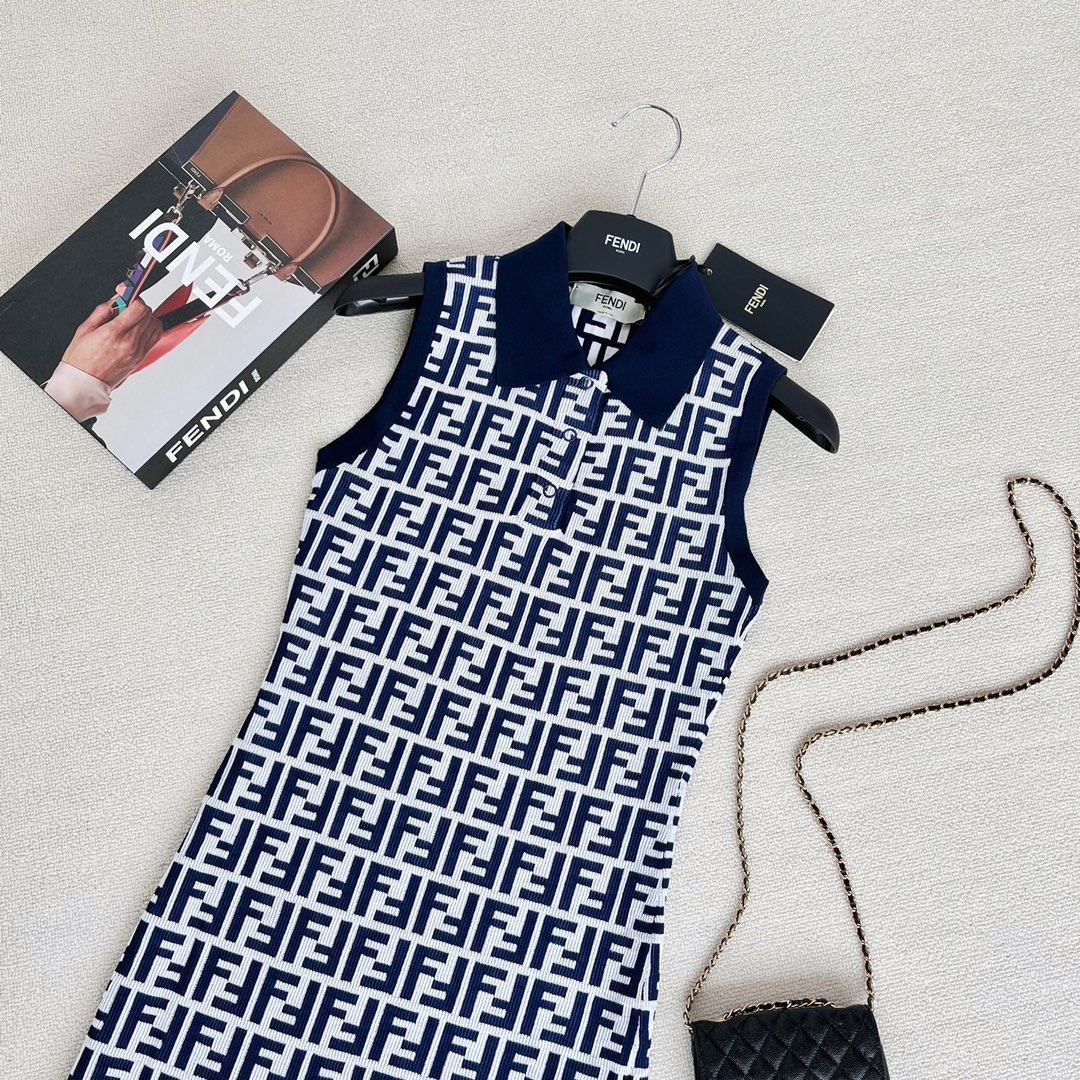 NIGO Fendi Women's Summer Blue Letter Printed Cotton Sleeveless Dresses #nigo73433