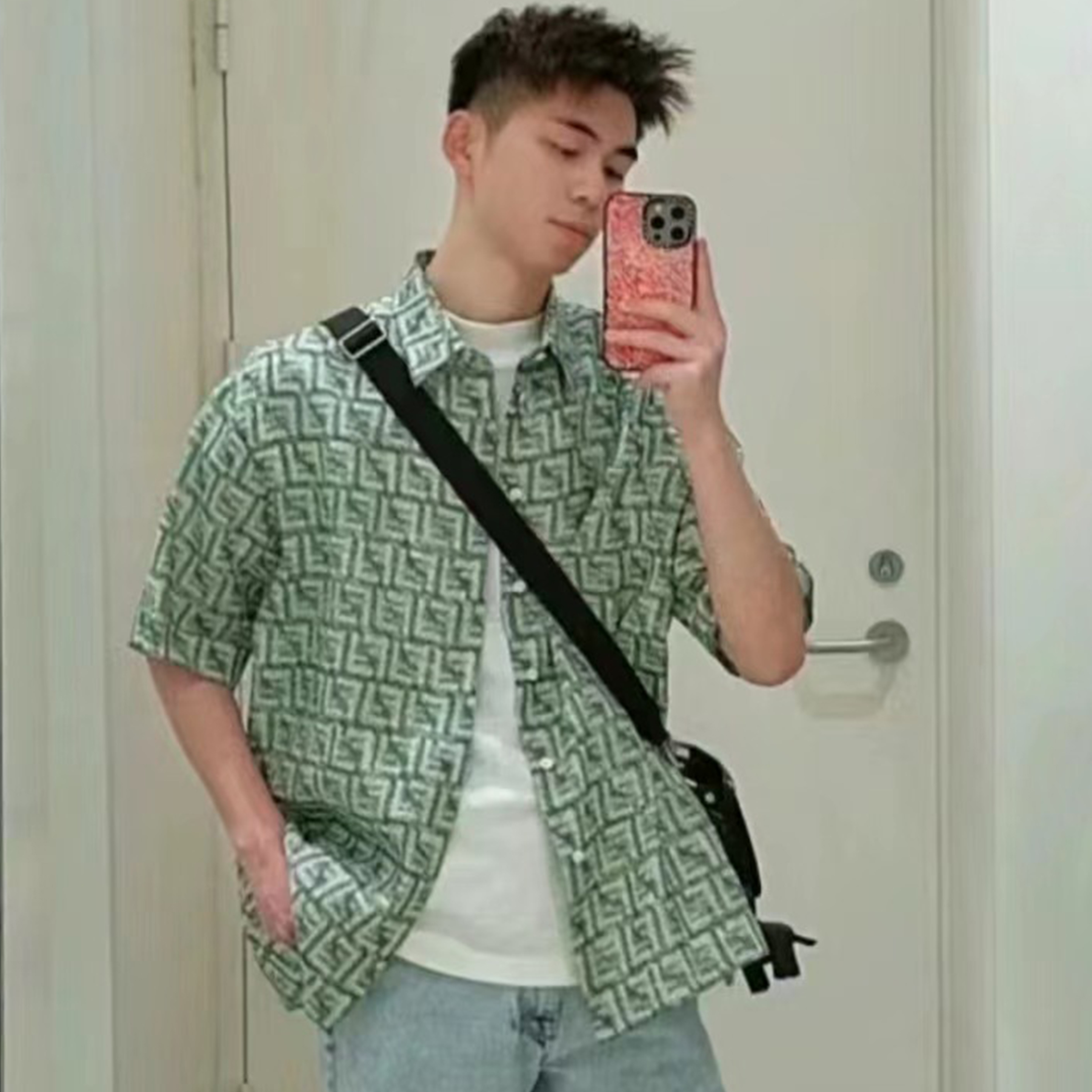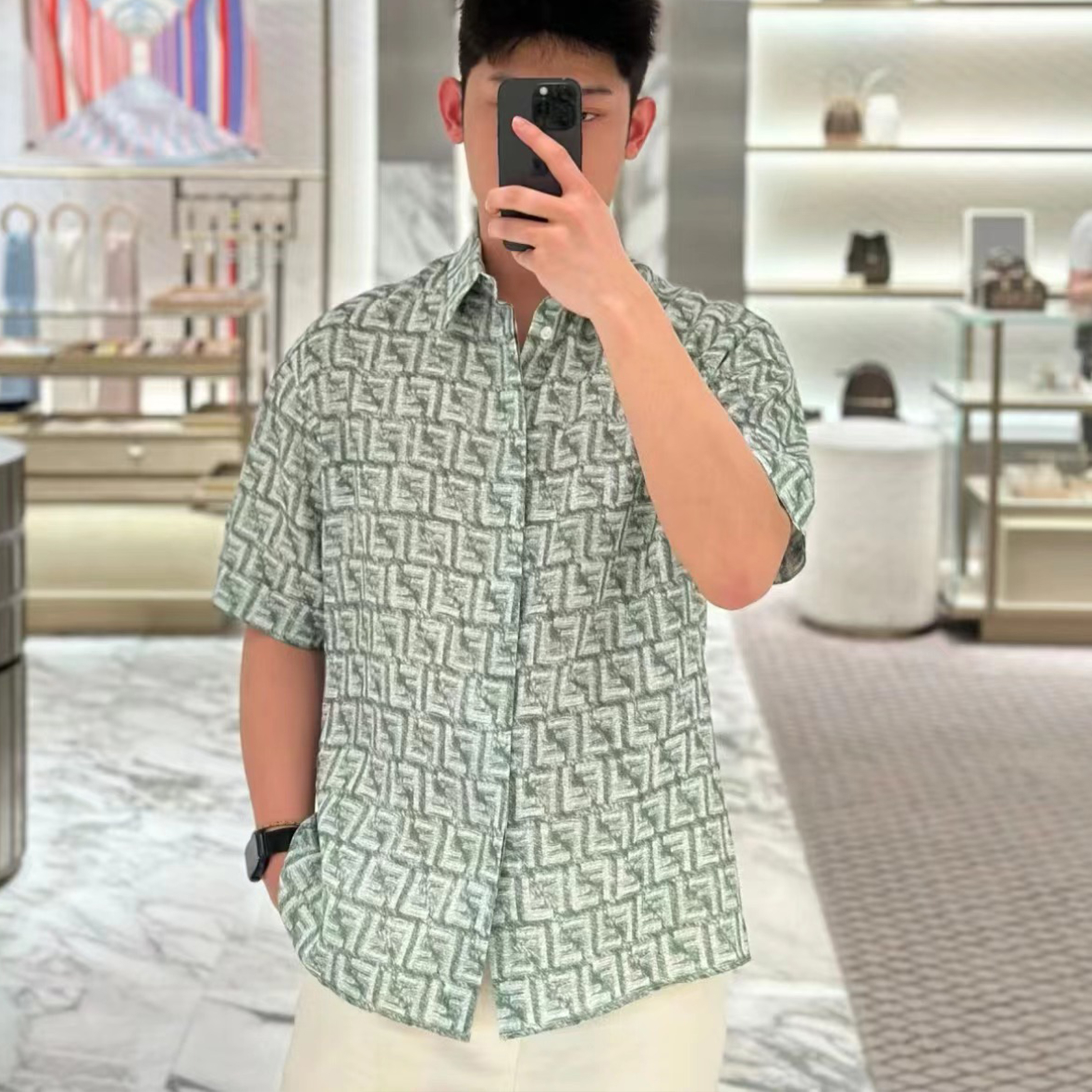 NIGO Fendi Men's Summer Colorblocking Pattern Printed Single Breasted Loose Cotton Short Sleeve Shirt Ngvp #nigo8679