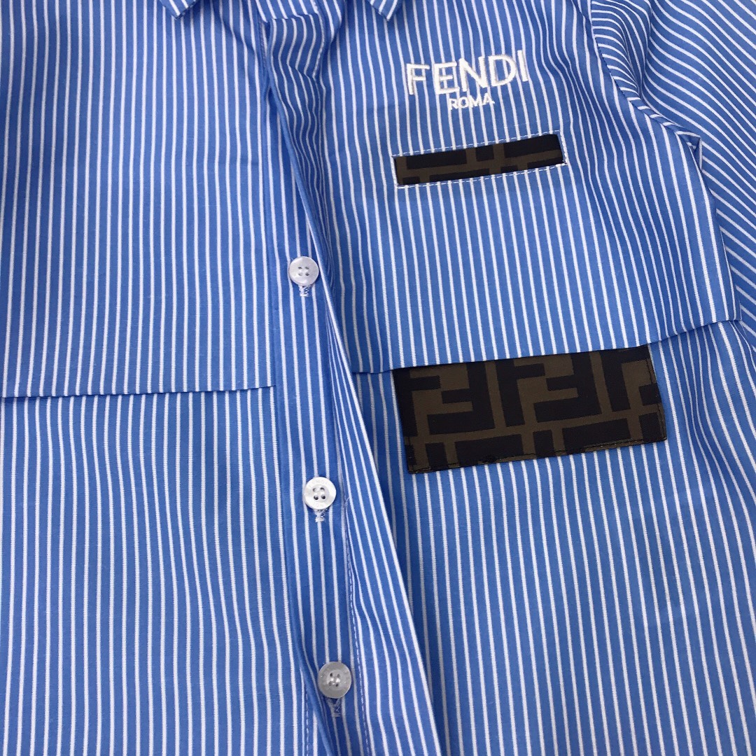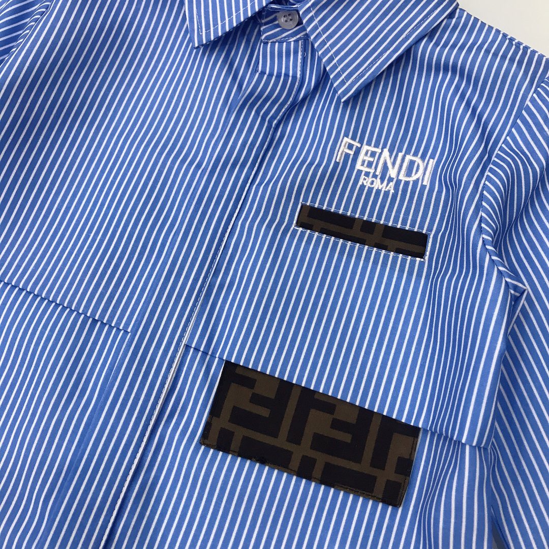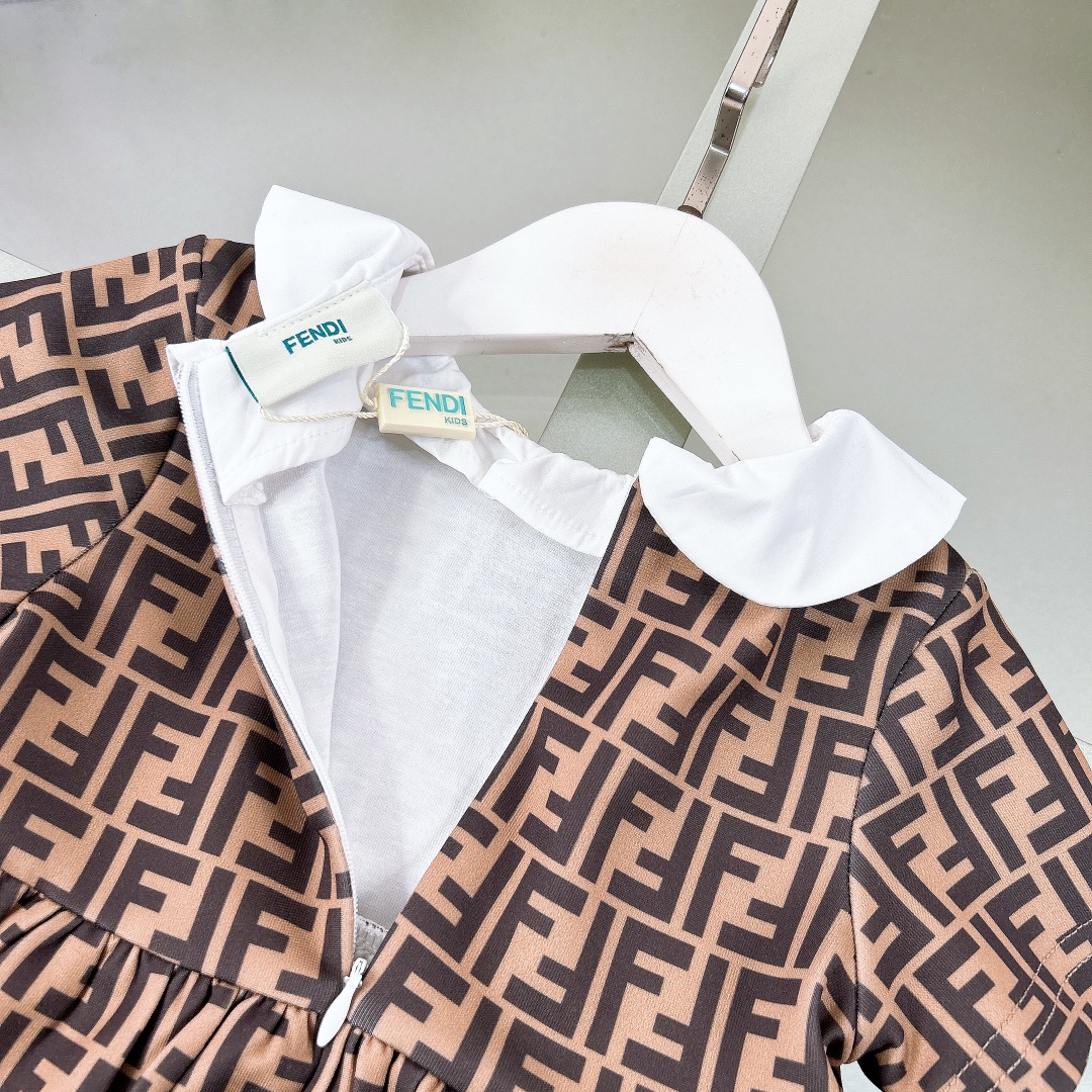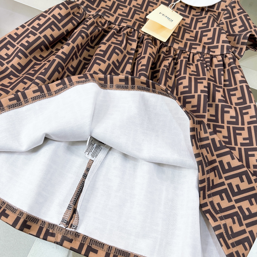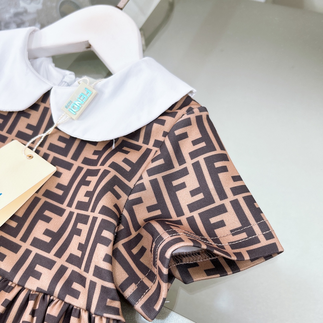 NIGO Fendi Kid's Summer Full Printed Logo Lapel Short Sleeve A-Line Fitted Casual Dress #nigo31284