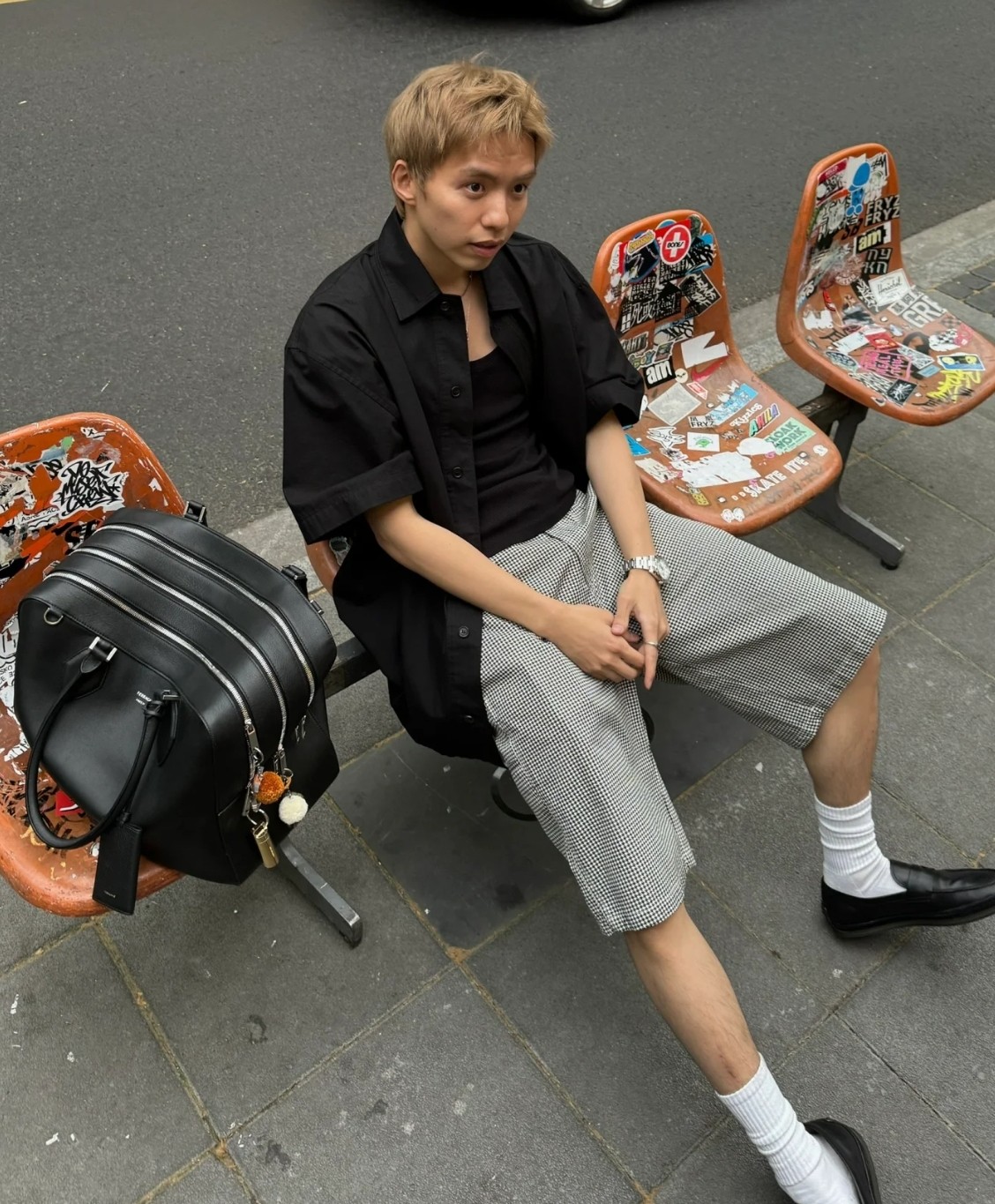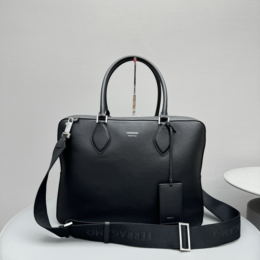 NIGO Ferragamo Men's Black Monogrammed Logo Zipper Closure Calfskin Handbag Bag Bags #nigo72737