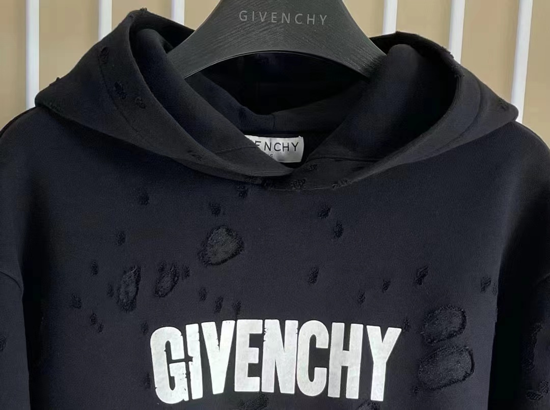 NIGO Givenchy Men's Black Torn Large Letter Cotton Hooded Sweatshirt Pullover #nigo97526