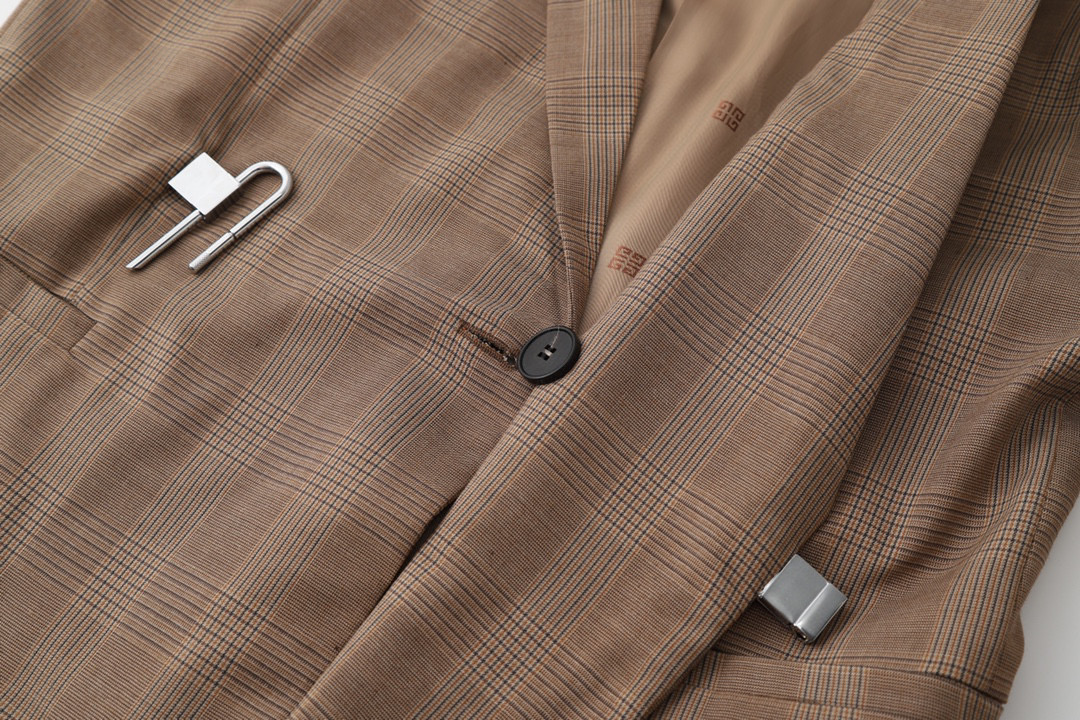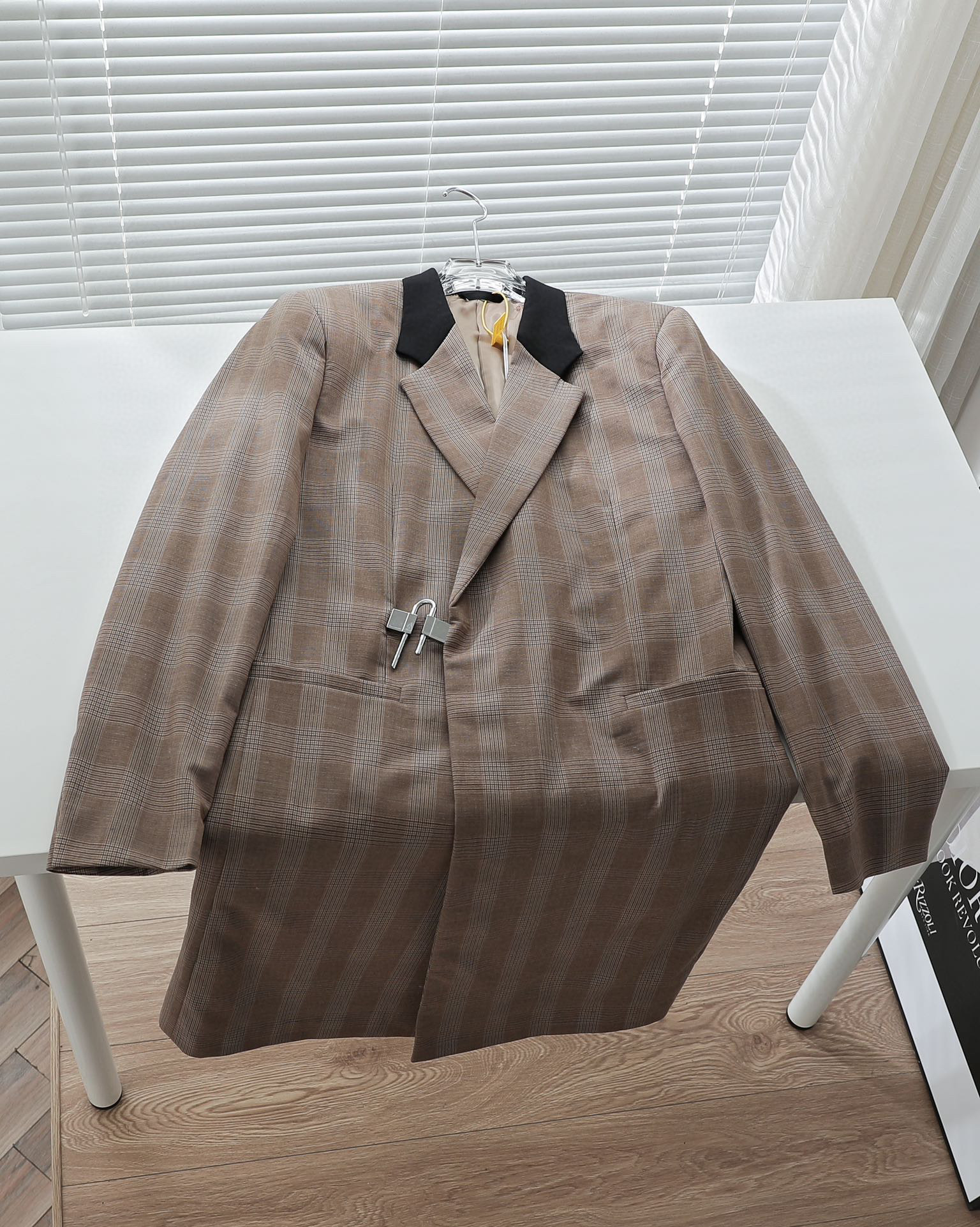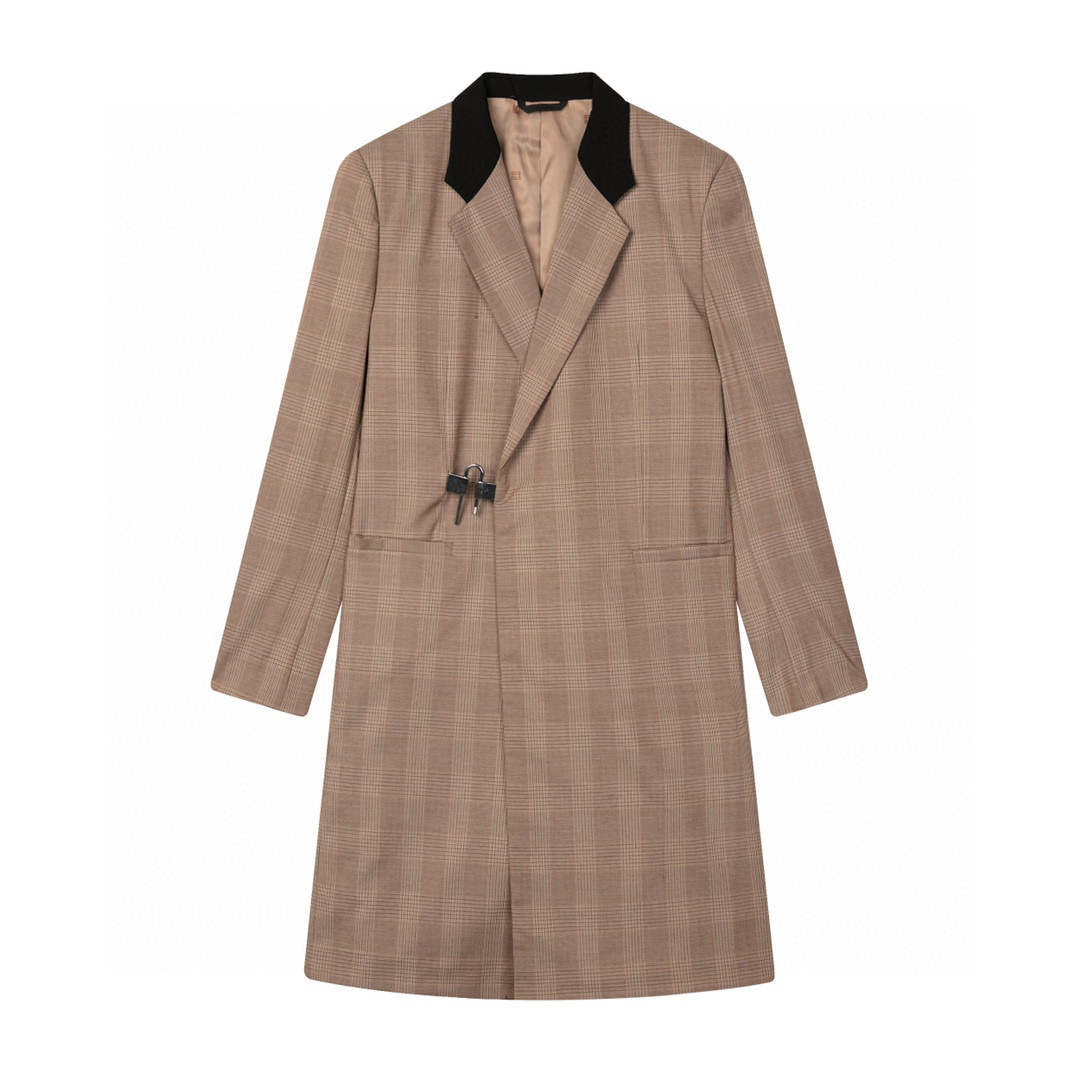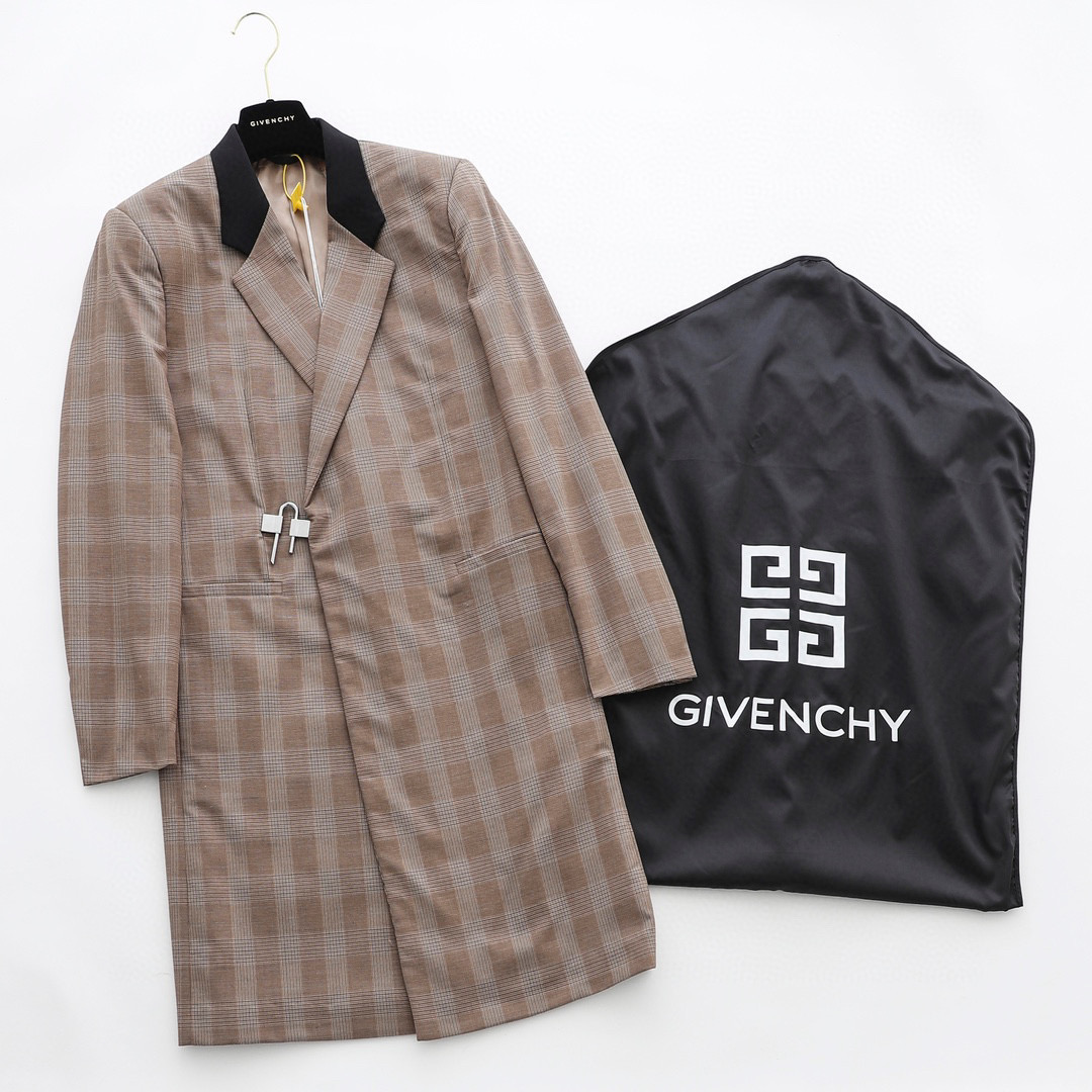 NIGO Givenchy Men's Spring And Autumn Blended Check Lapel U-Lock Button Closure Mid-Length Fitted Straight Coat Ngvp #nigo7244