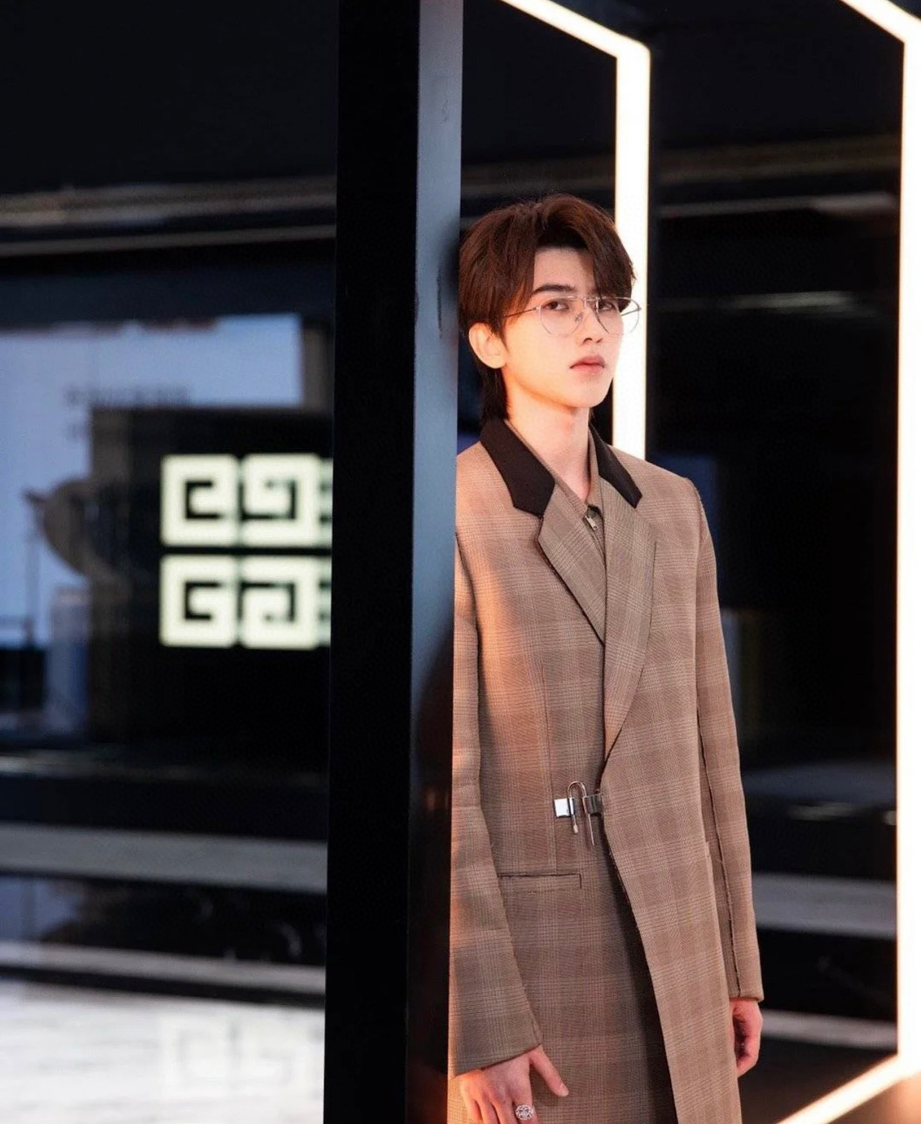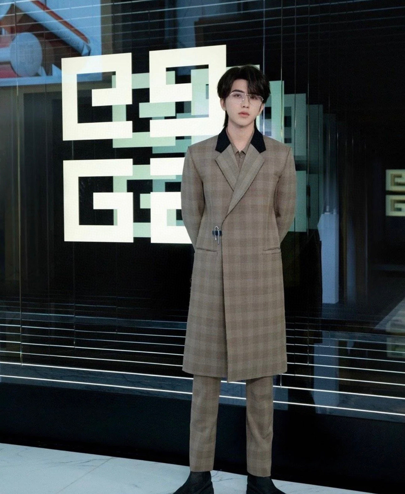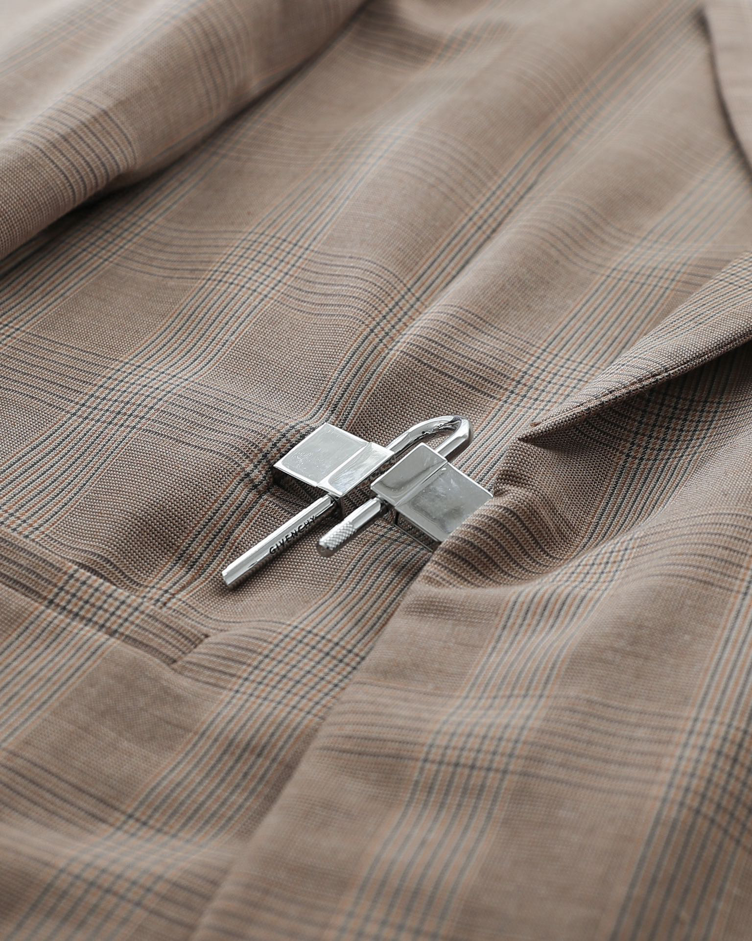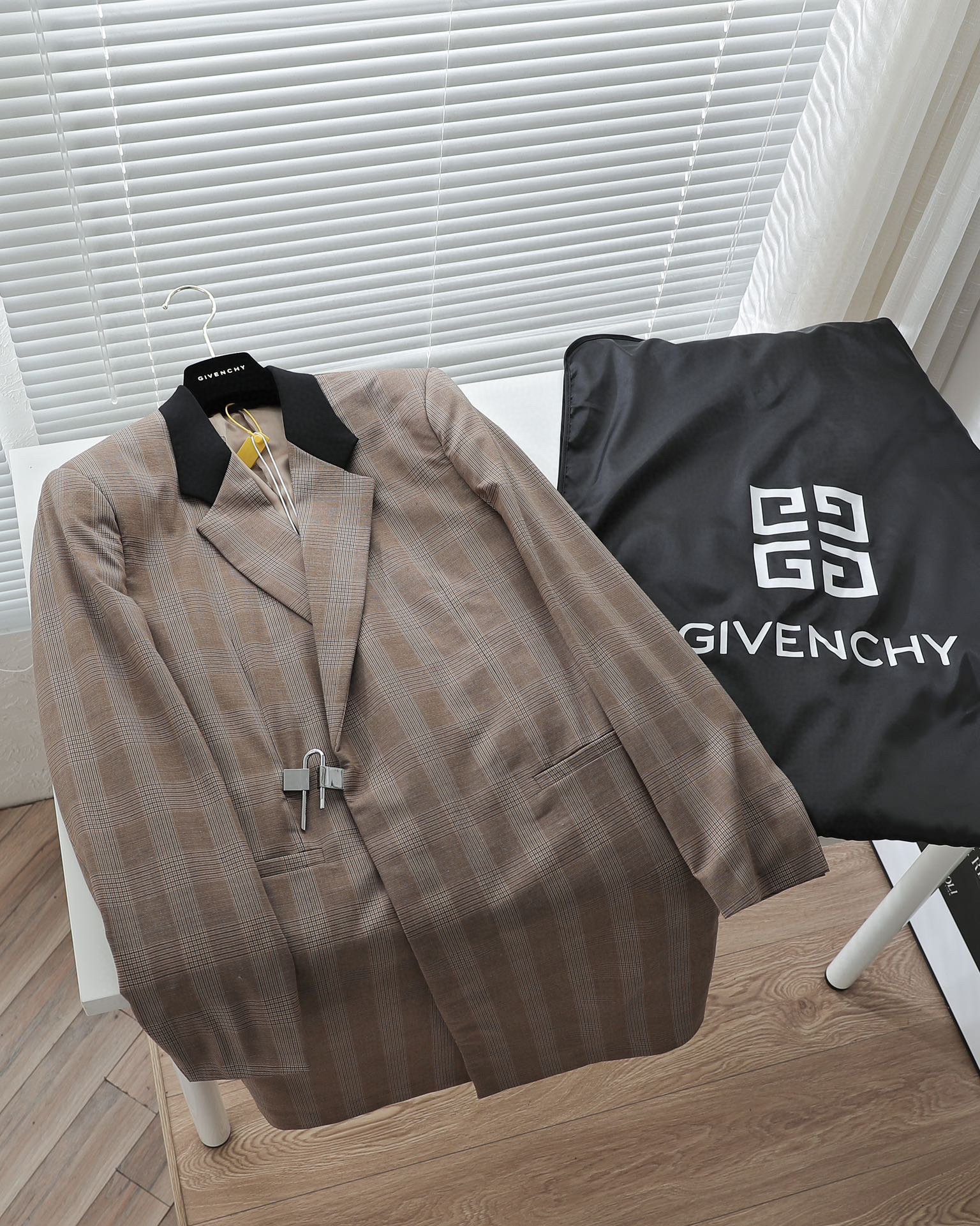 NIGO Givenchy Men's Spring And Autumn Blended Check Lapel U-Lock Button Closure Mid-Length Fitted Straight Coat Ngvp #nigo7244