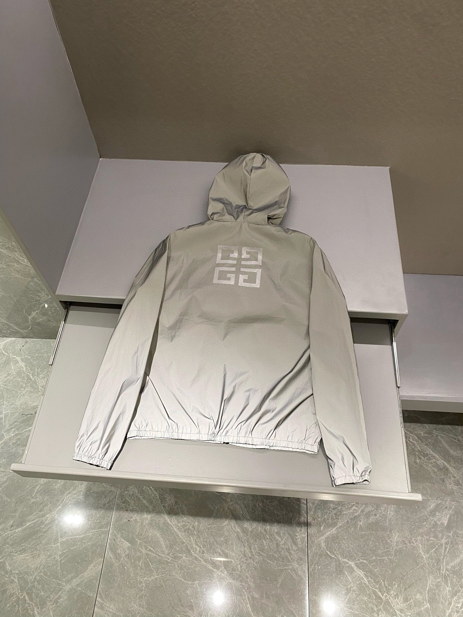 NIGO Givenchy Men's Spring and Autumn Light Blue Letter Printed Zipper Hooded Reflective Slim Long Sleeve Windbreaker Jacket #nigo98965