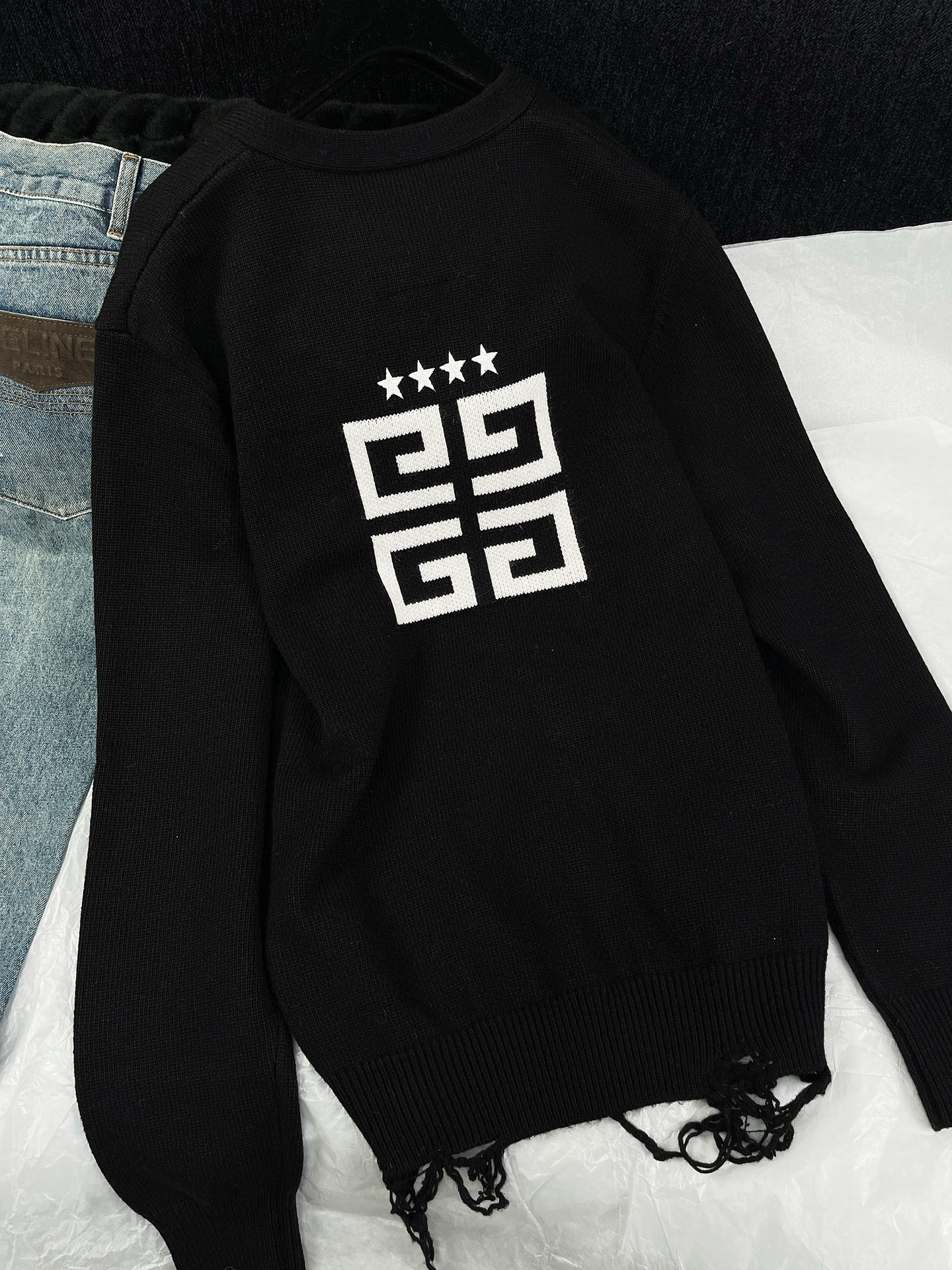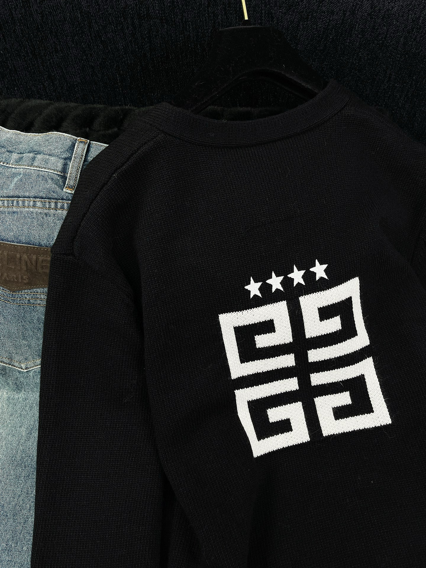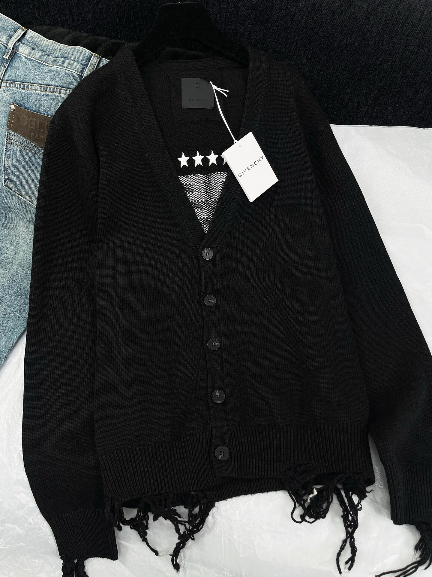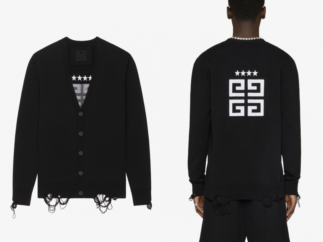 NIGO Givenchy Men's Spring Summer Black Cotton Knit V-Neck Long Sleeve Cardigan #nigo97713