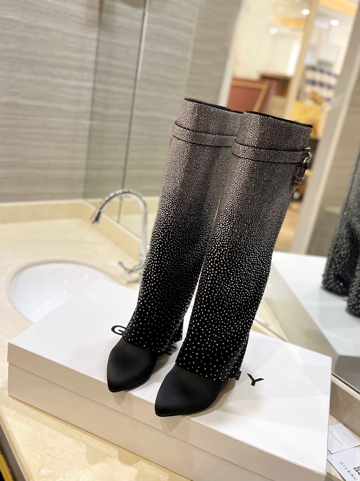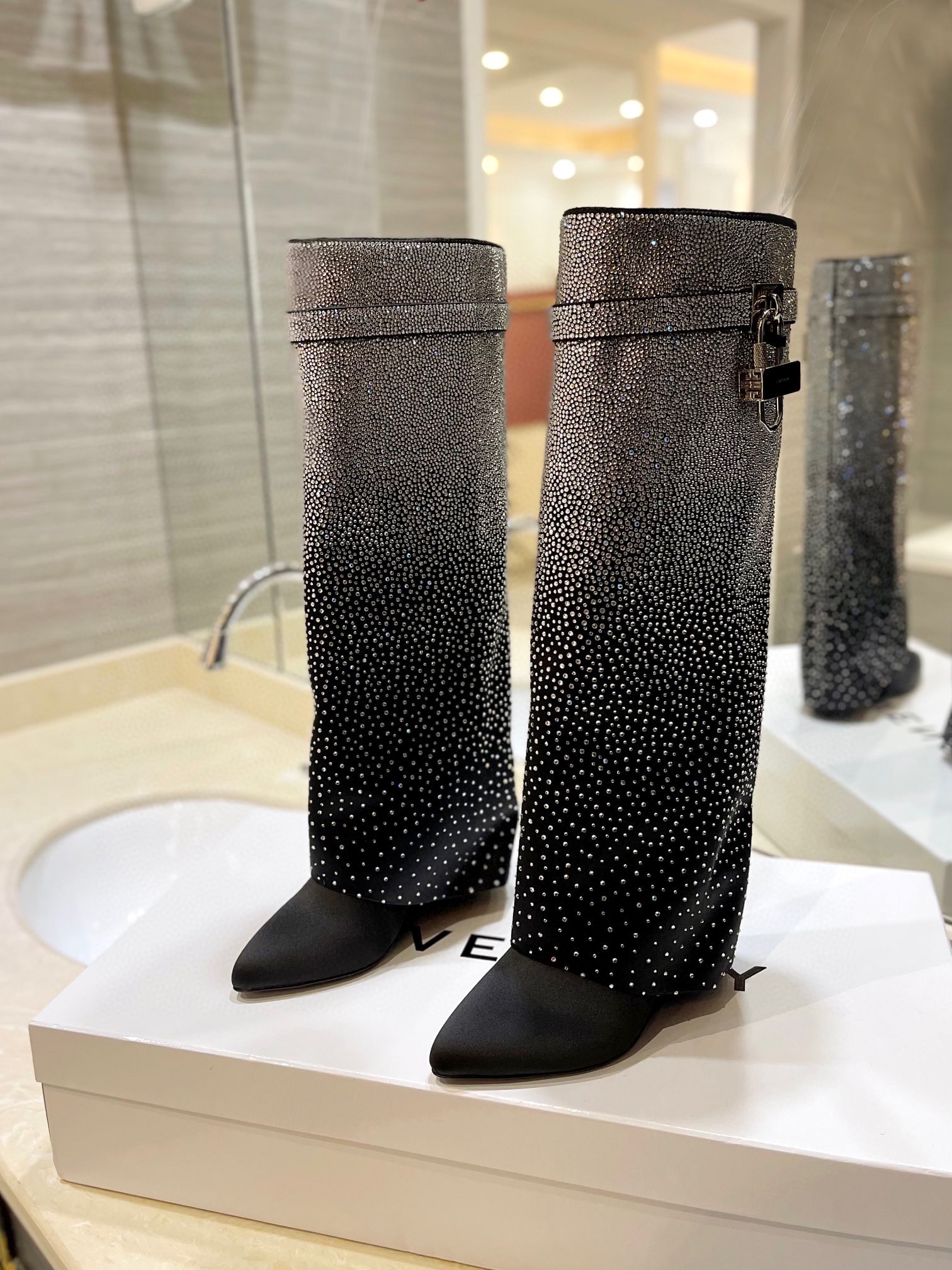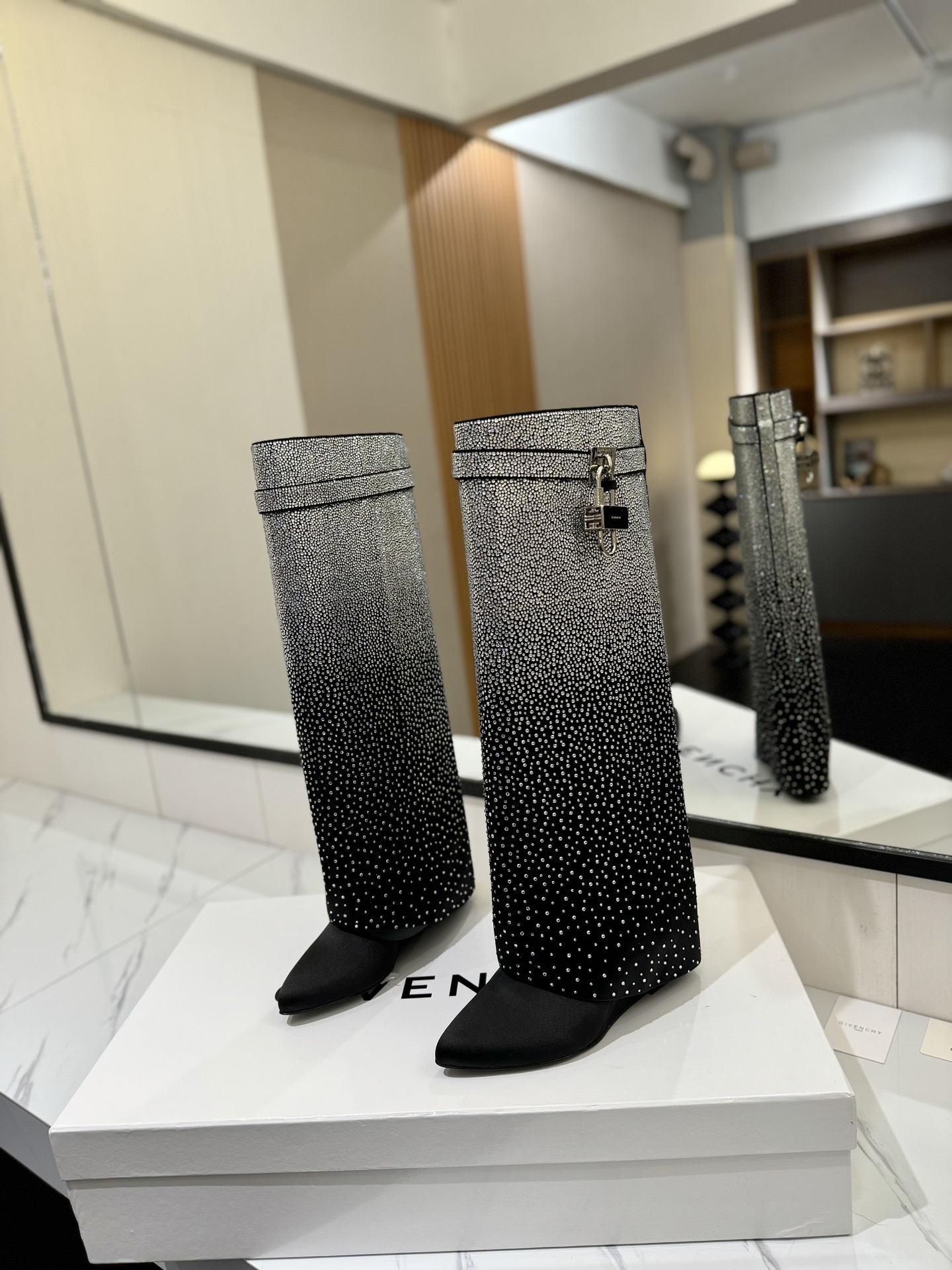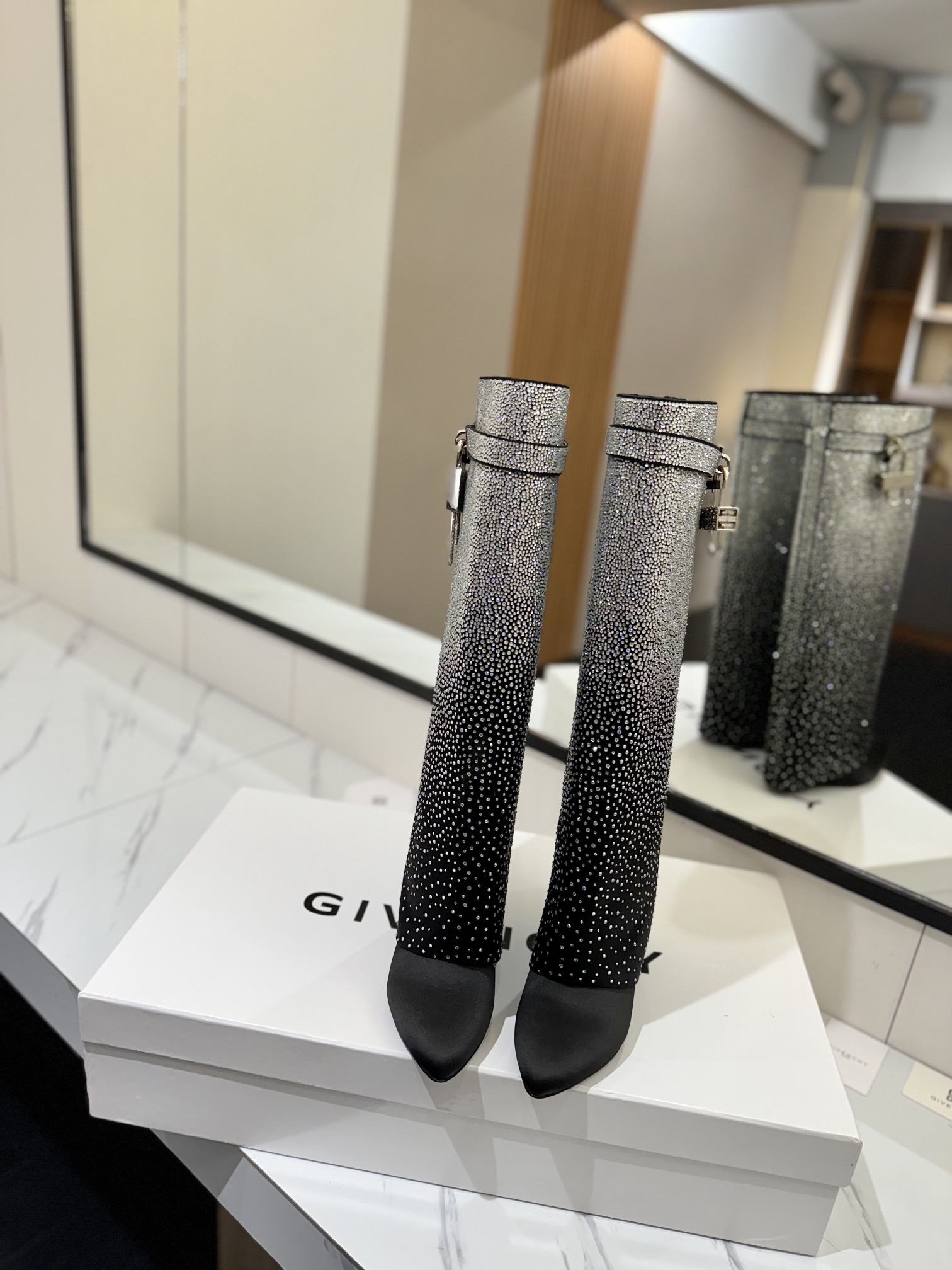 NIGO Givenchy Women's Fall/winter Fashion Classic Pointed Toe Cuffed Ankle Boots With Small Diamonds High Heel Long Boots Shoes #nigo79255