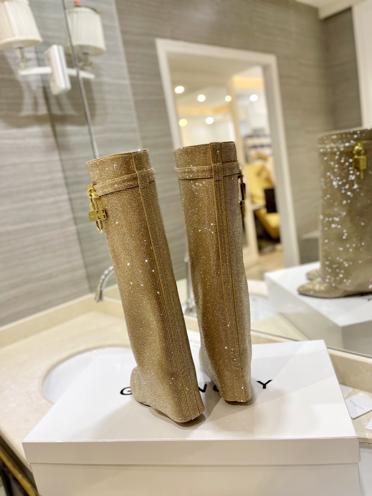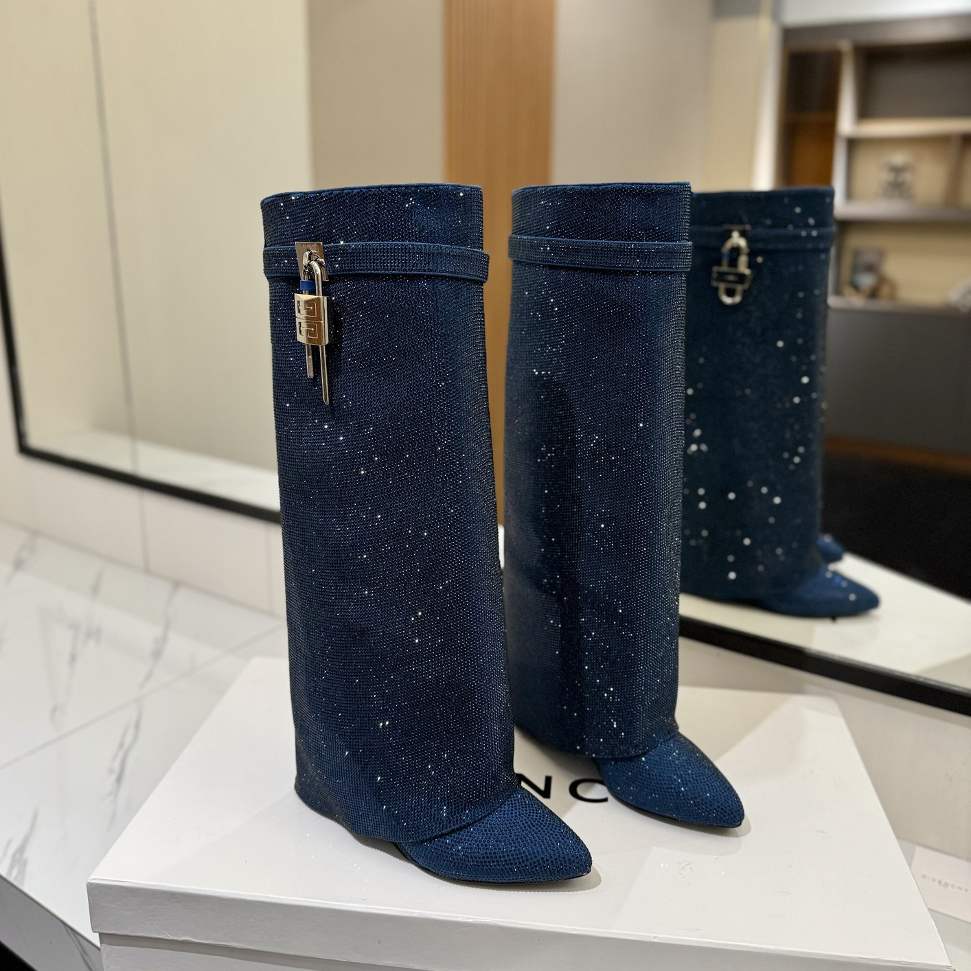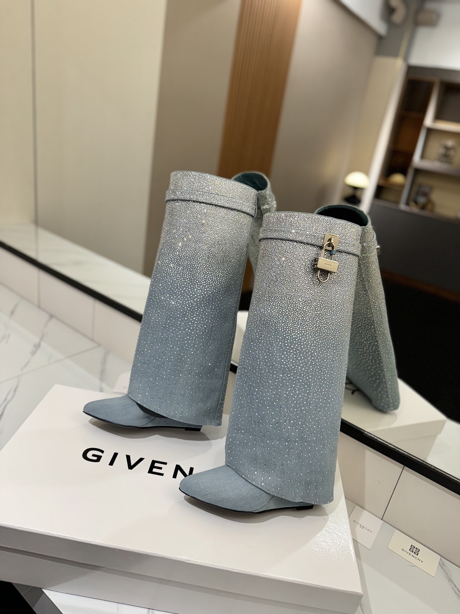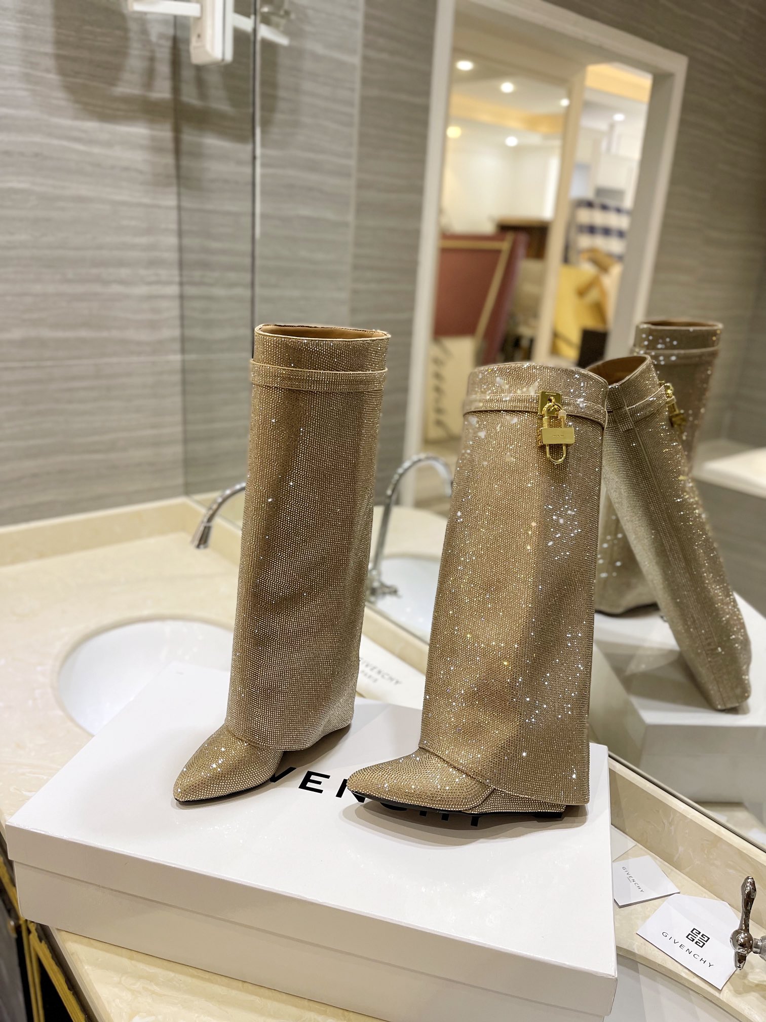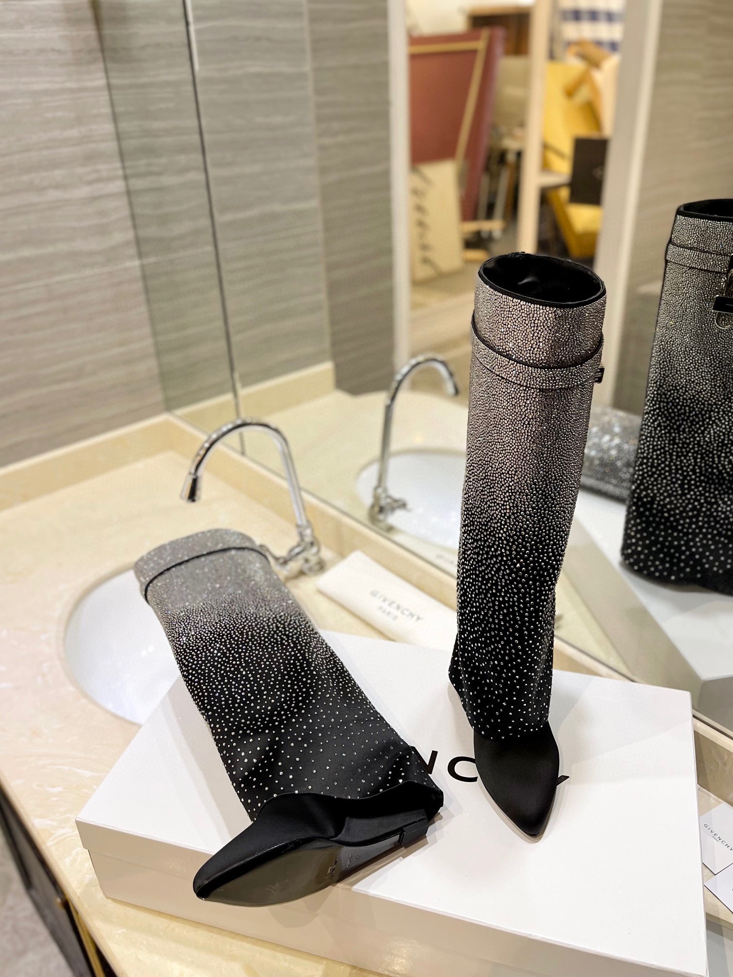 NIGO Givenchy Women's Fall/winter Fashion Classic Pointed Toe Cuffed Ankle Boots With Small Diamonds High Heel Long Boots Shoes #nigo79255
