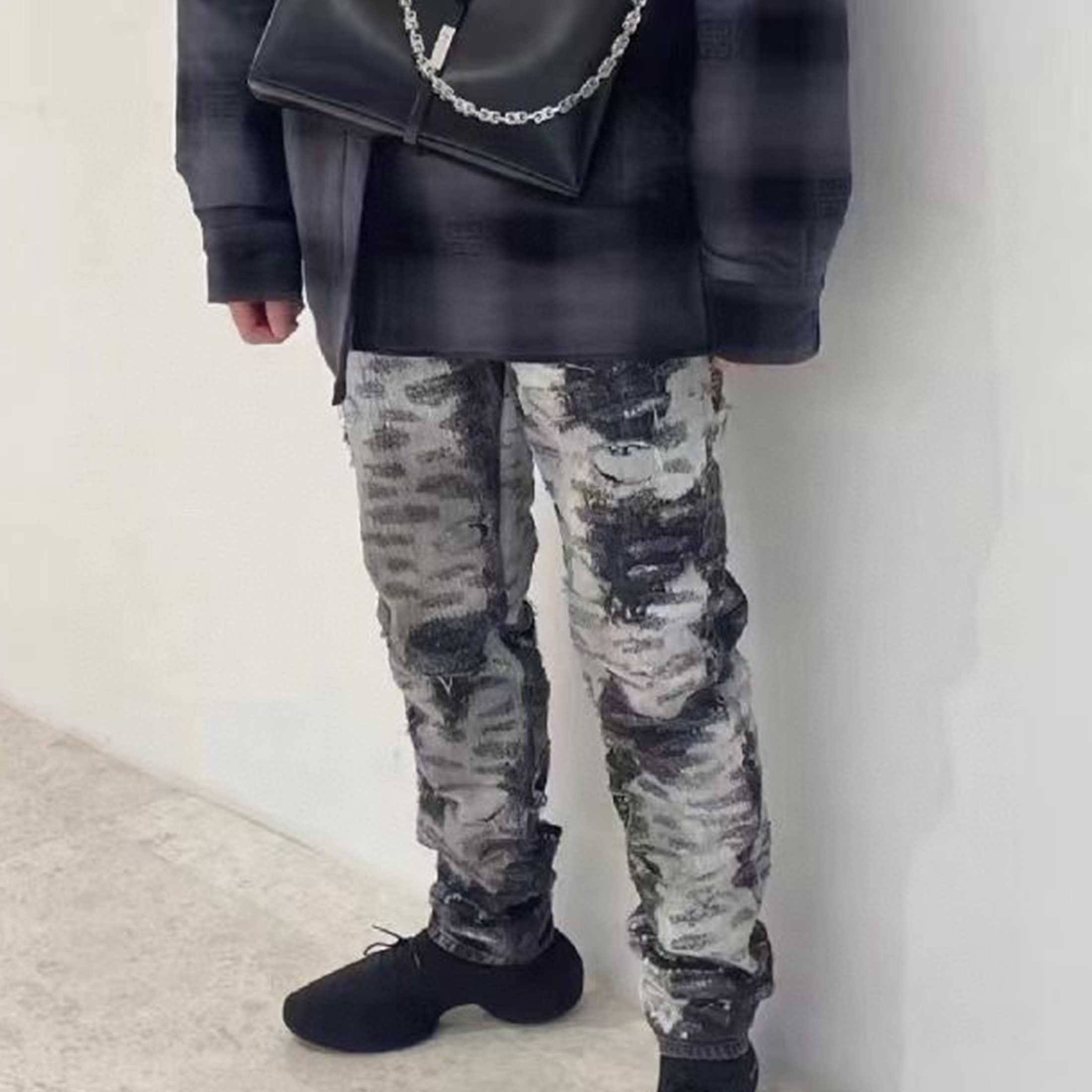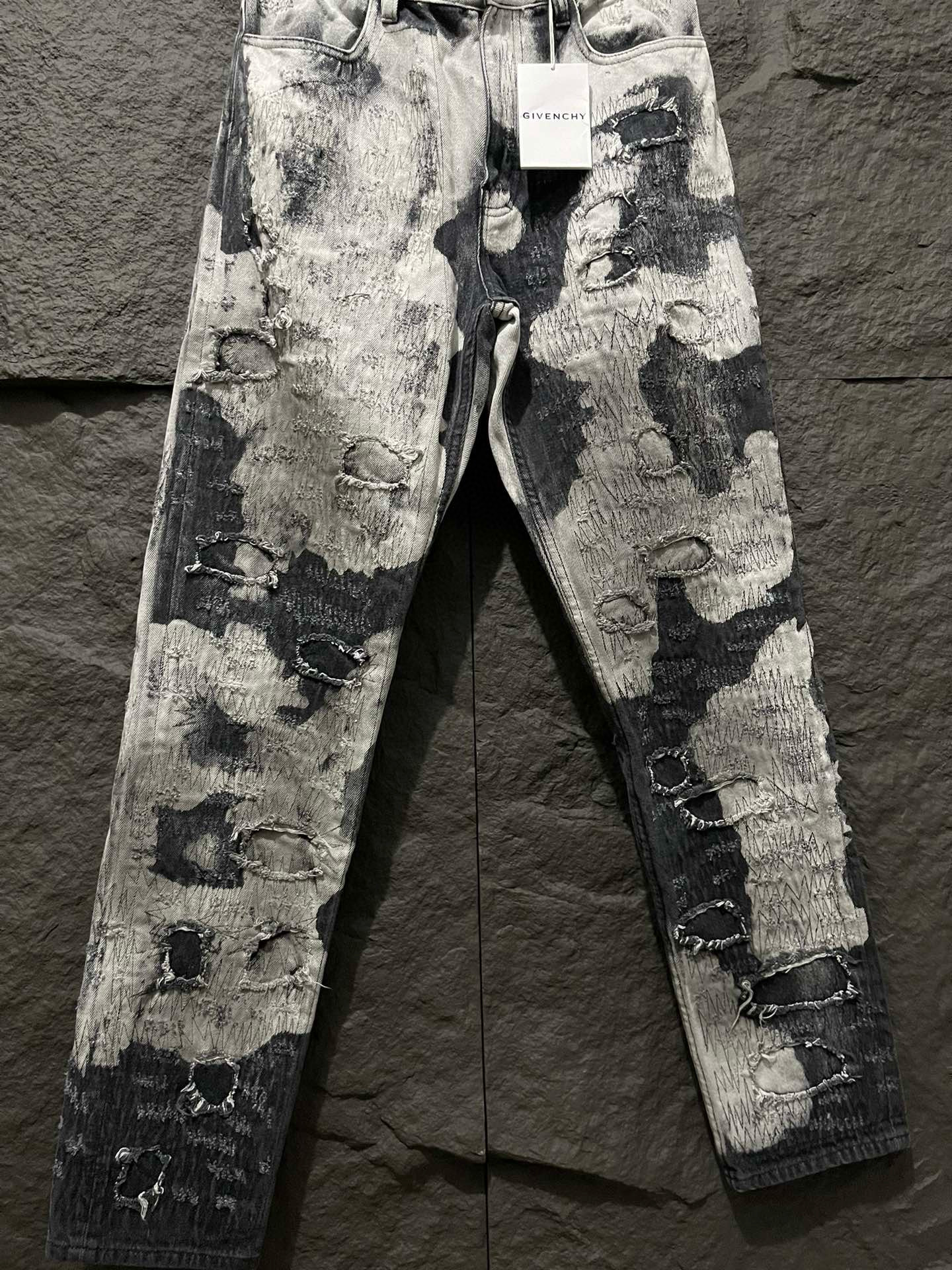 NIGO Givenchy Men's Cotton Black and White Fashion Embroidered Washed Destroyed Denim Trousers Ngvp #nigo7769
