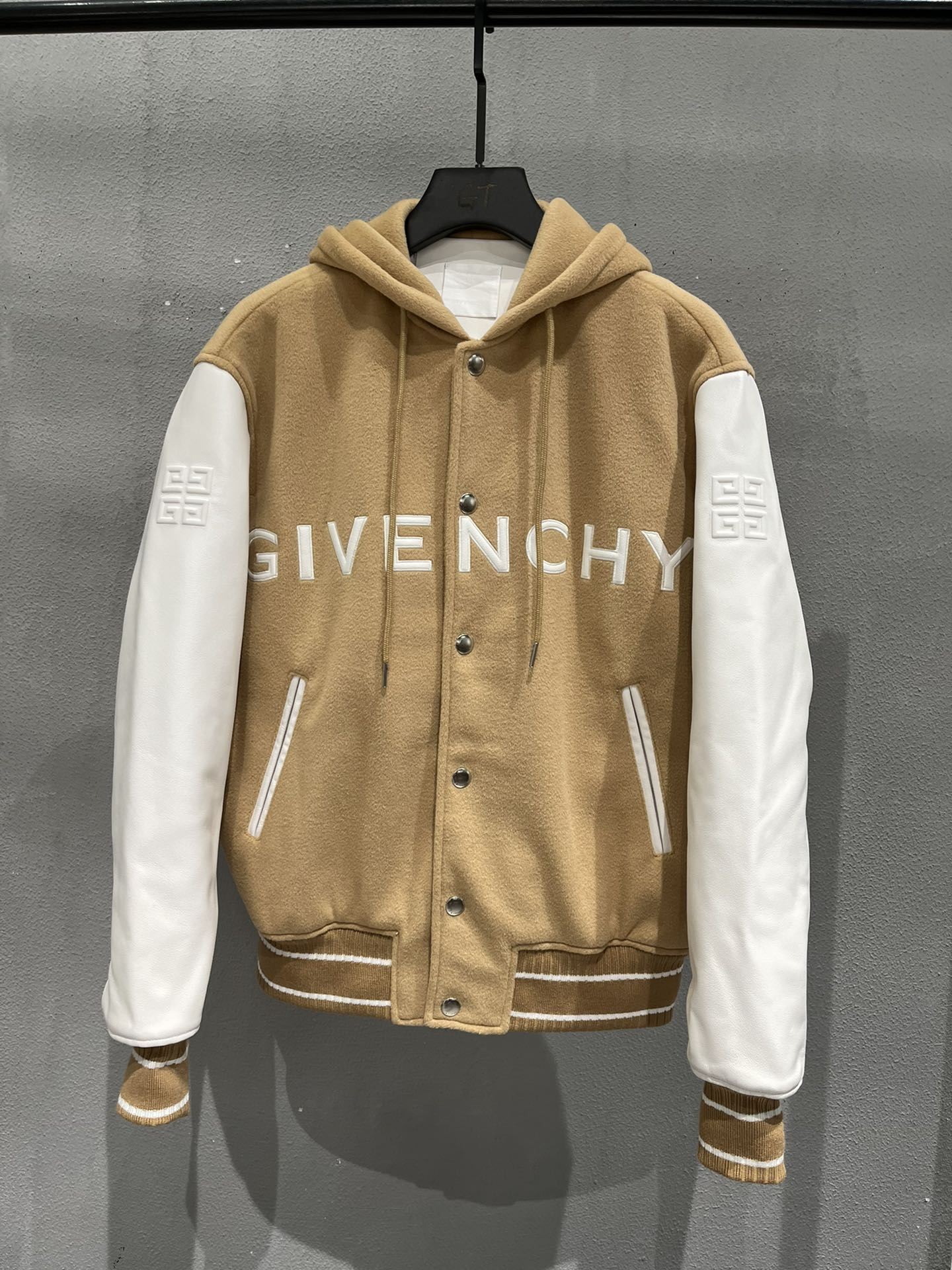NIGO Givenchy Men's Autumn and Winter Color Blocking Single Breasted Wool and Leather Hooded Jacket #nigo98878