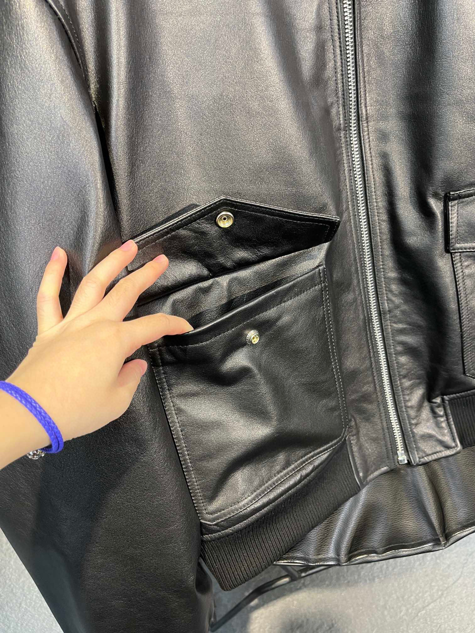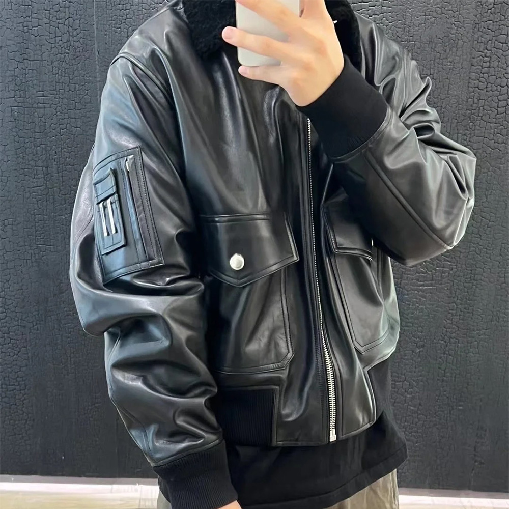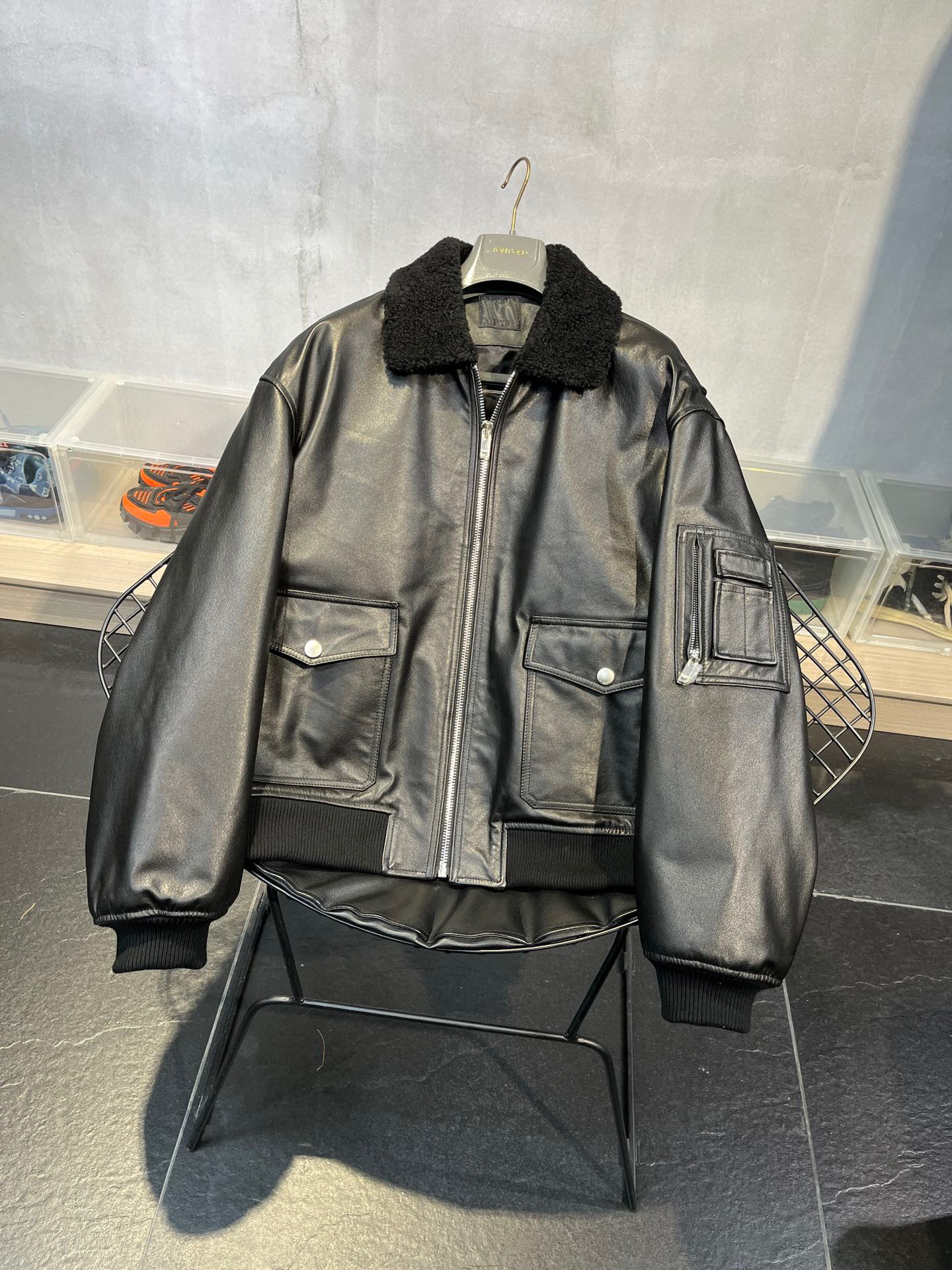 NIGO Givenchy Men's Winter Solid Color Lapel Leather And Shearling With Pocket Zipper Loose Aviator Jacket Ngvp #nigo6935