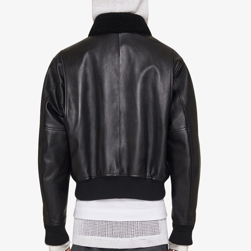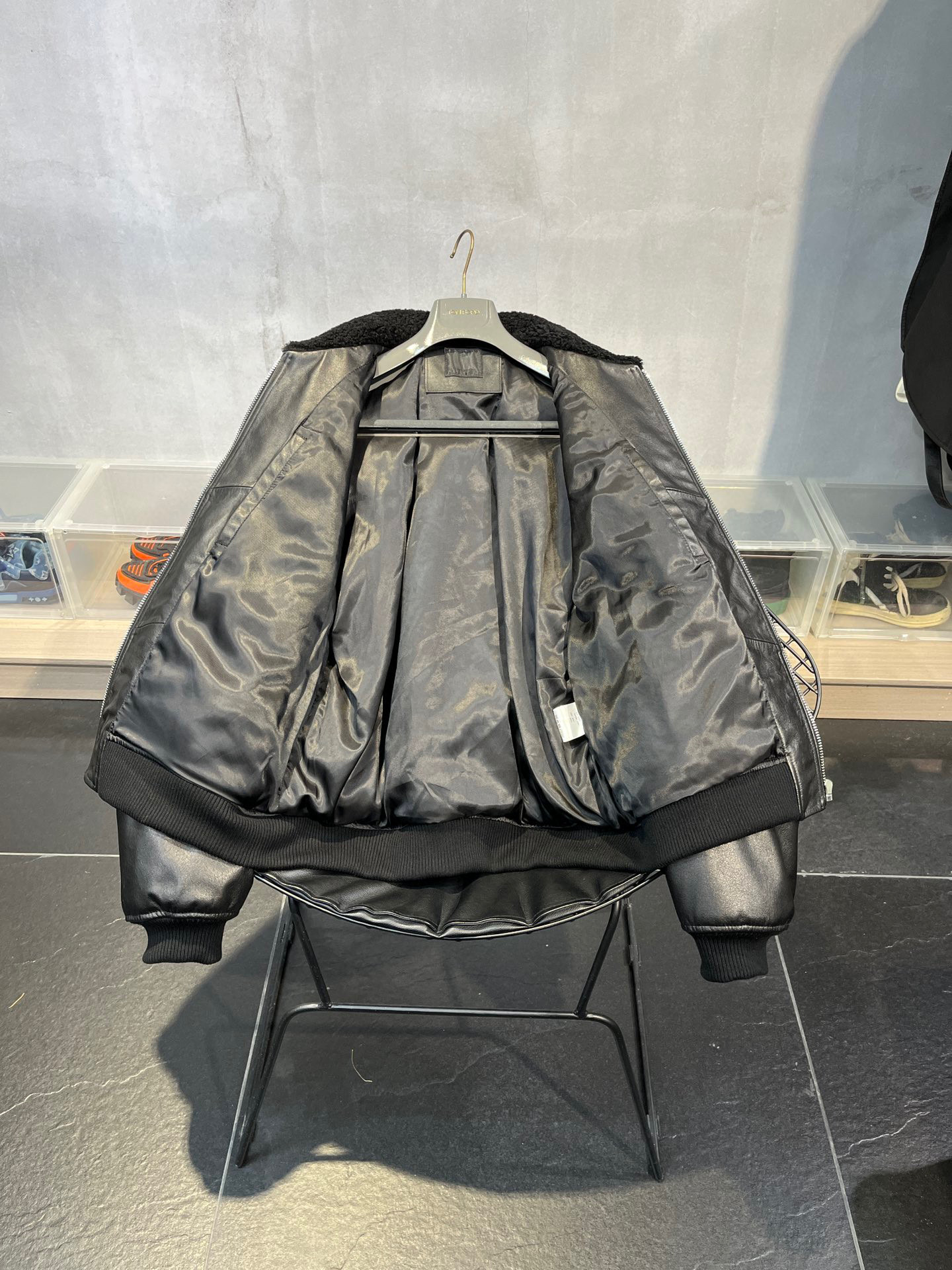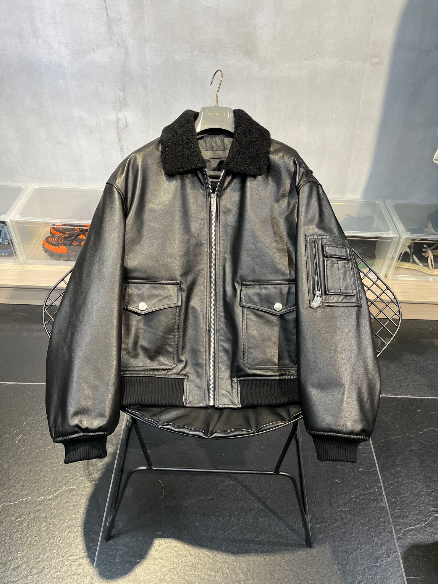 NIGO Givenchy Men's Winter Solid Color Lapel Leather And Shearling With Pocket Zipper Loose Aviator Jacket Ngvp #nigo6935