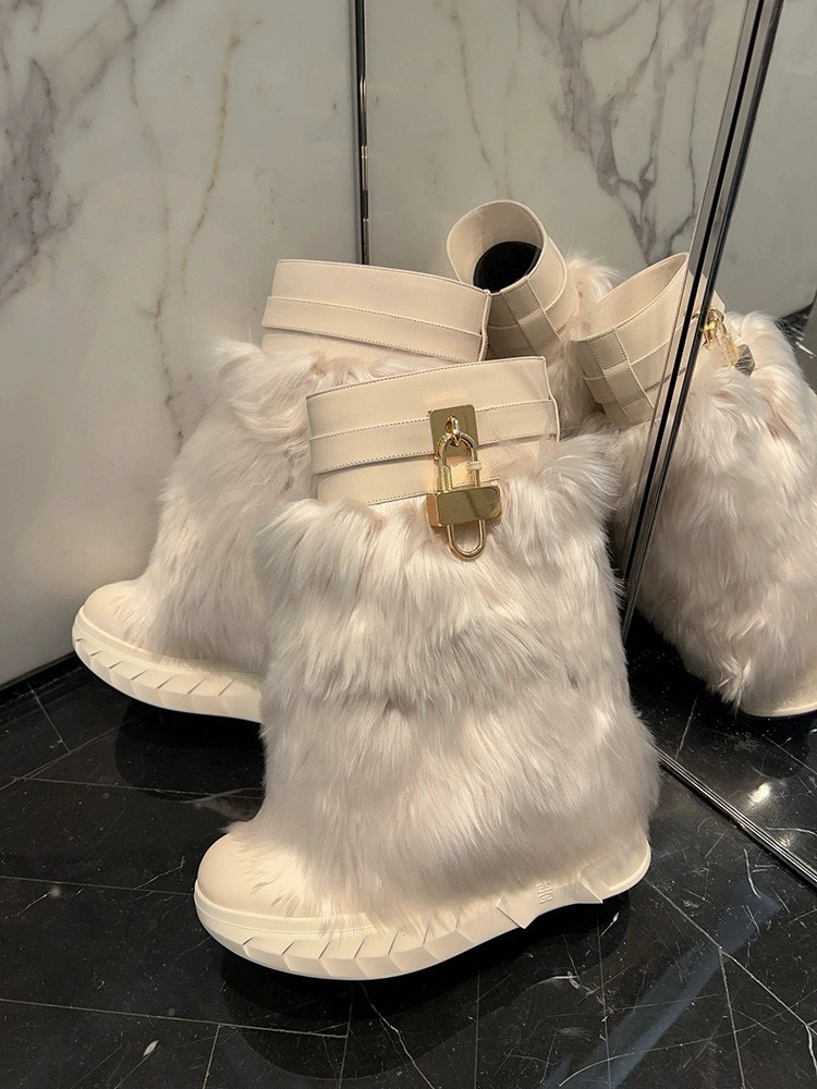 NIGO Givenchy Women's Winter Thick Sole Cowhide Shark Lock Locomotive Boots Shoes #nigo97571