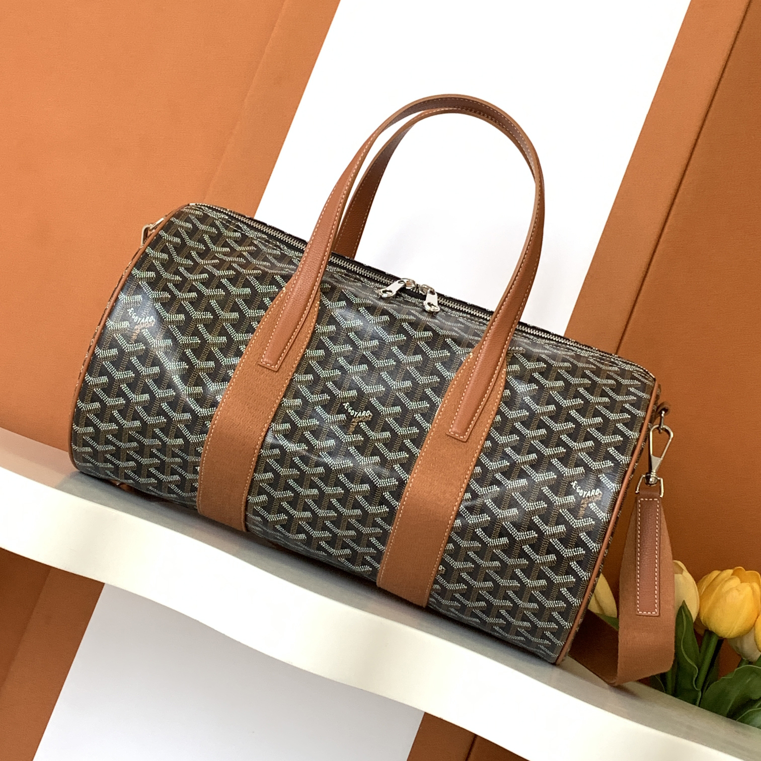NIGO GOYARD Barrel 40 Men's And Women's Logo Printing Canvas Collocation Calf Leather Sports Bag Travel Bags #nigo75143