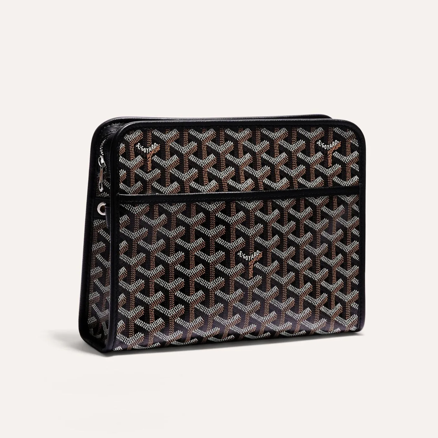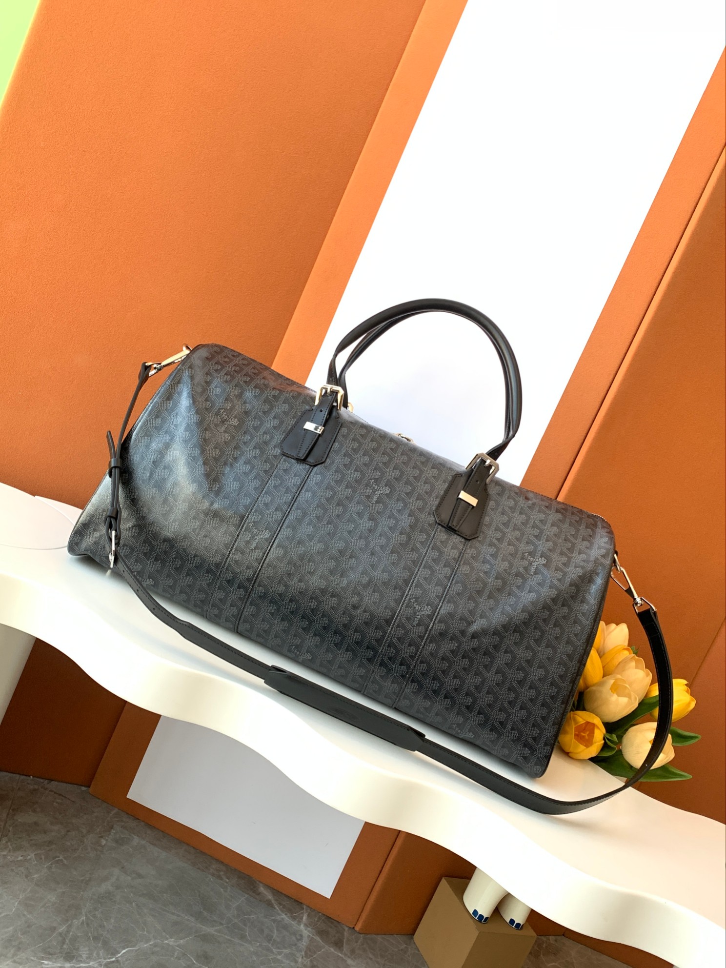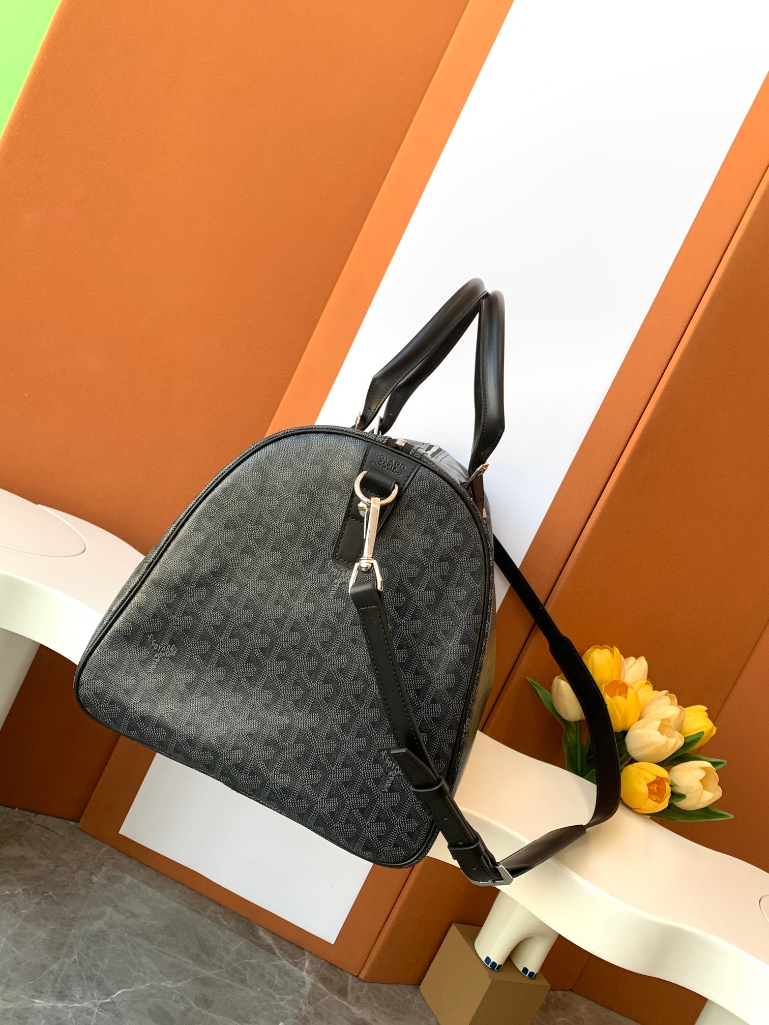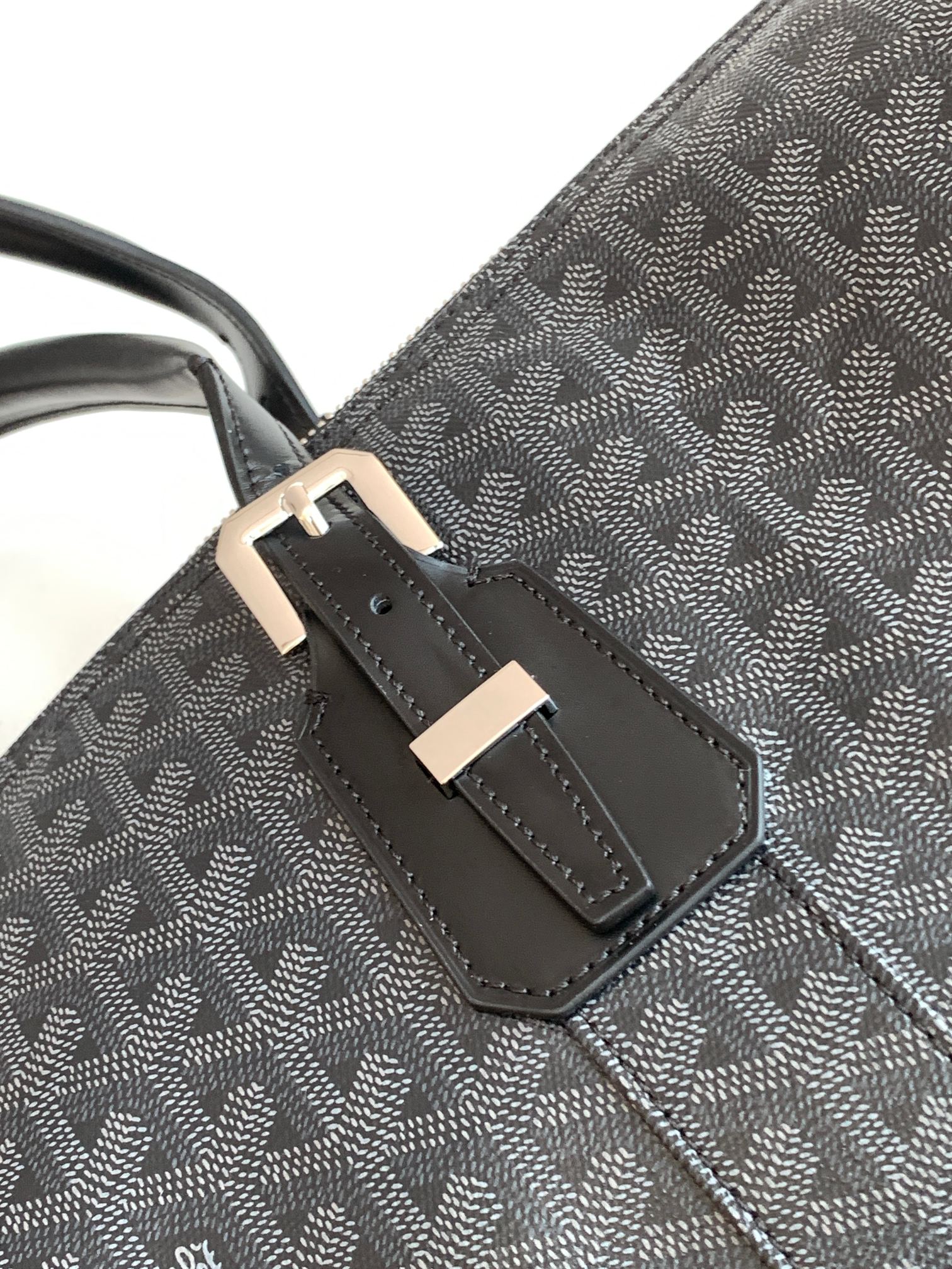 NIGO GOYARD Jet Black Boston Women's Classic Aged Black Large Capacity Canvas Puzzle Leather Tote Travel Bag Bags #nigo74436