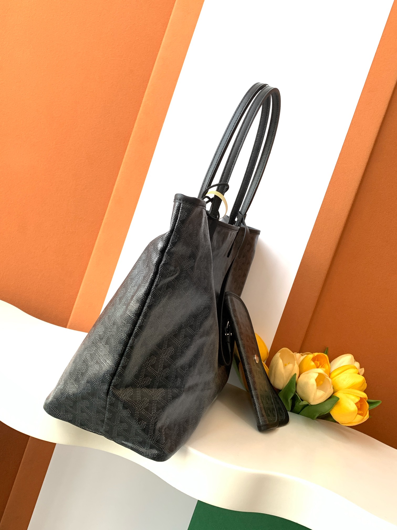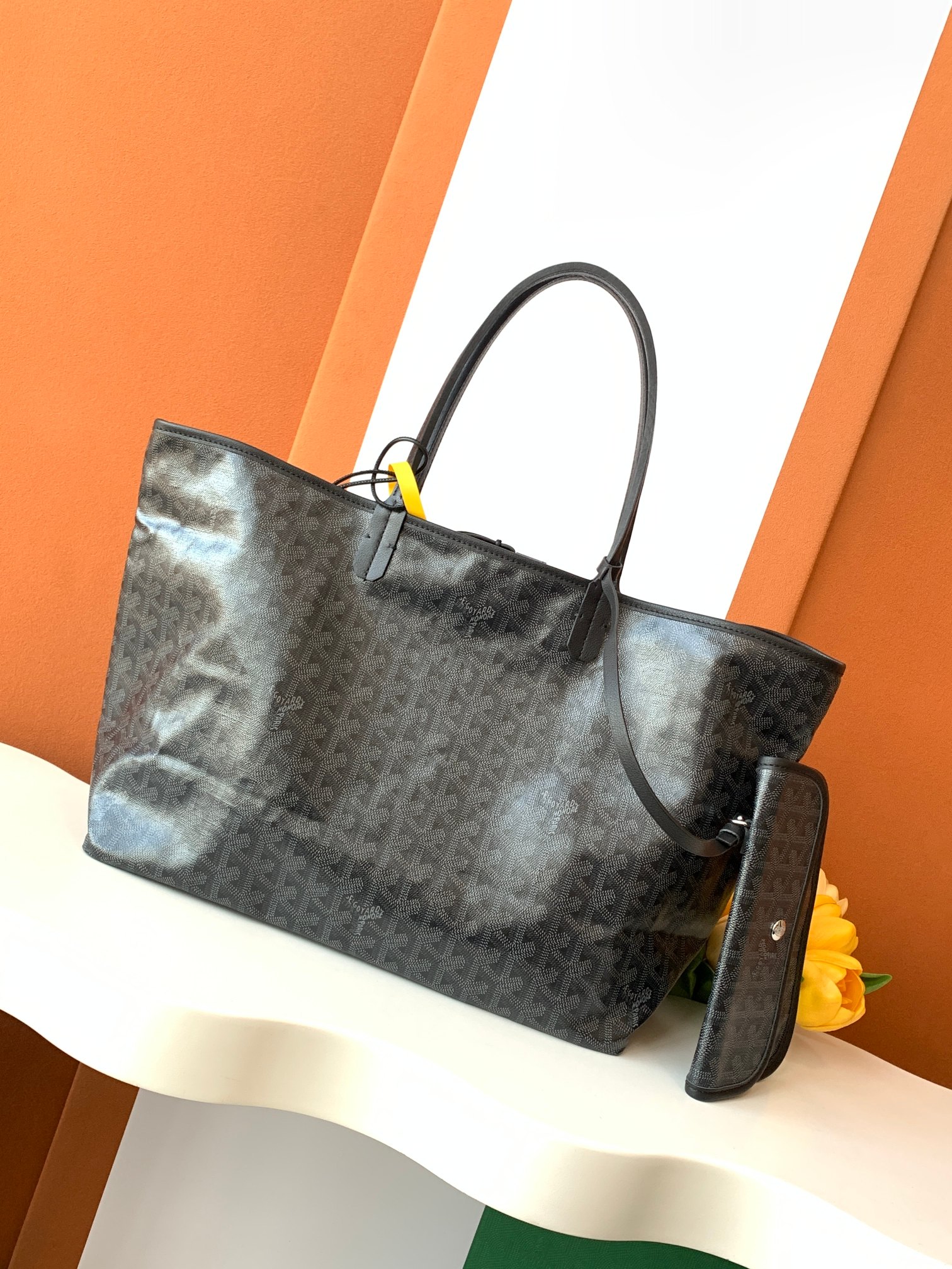 NIGO GOYARD Women's Classic Old Flower Black Canvas Puzzle Leather Shopping Bag Shoulder Bags #nigo74433