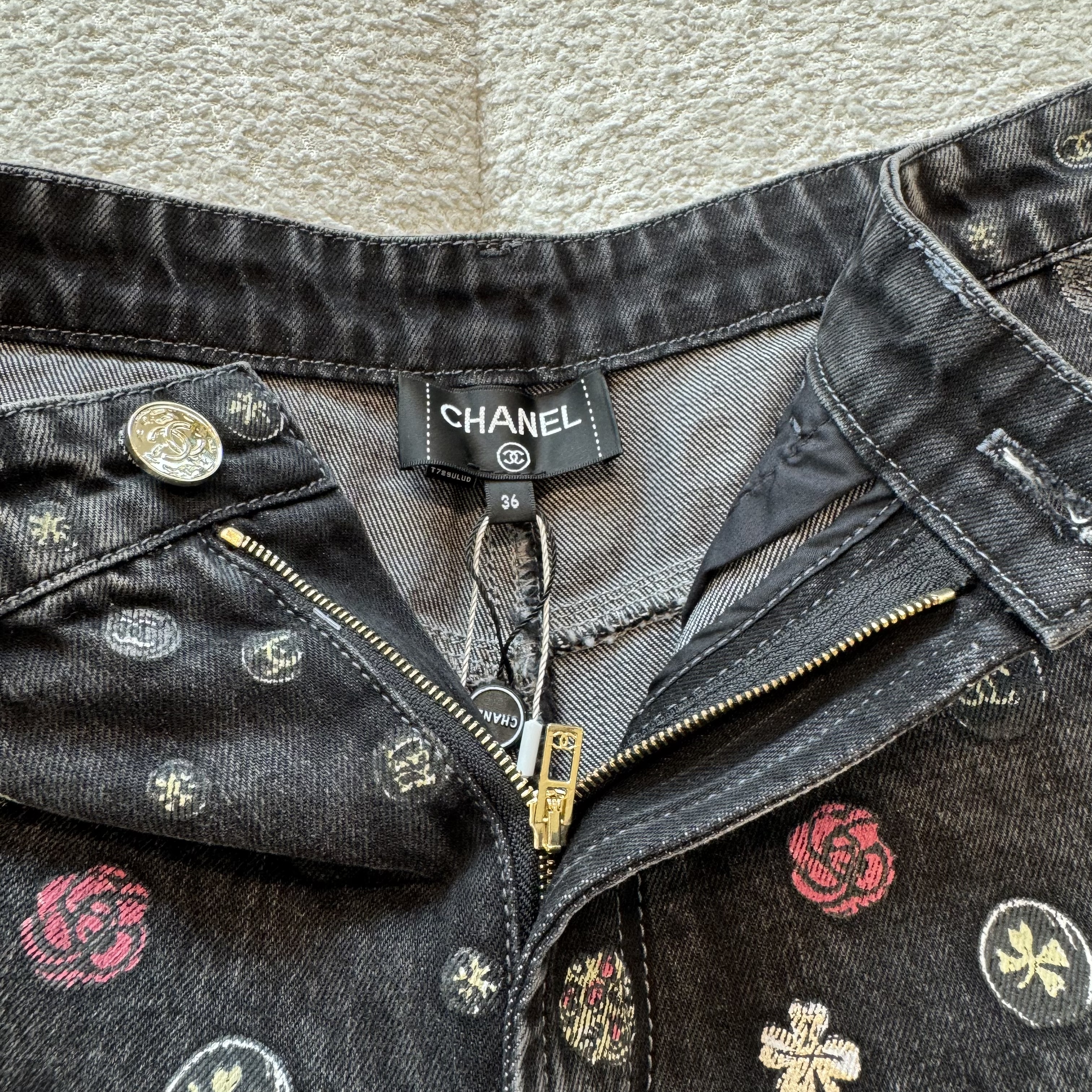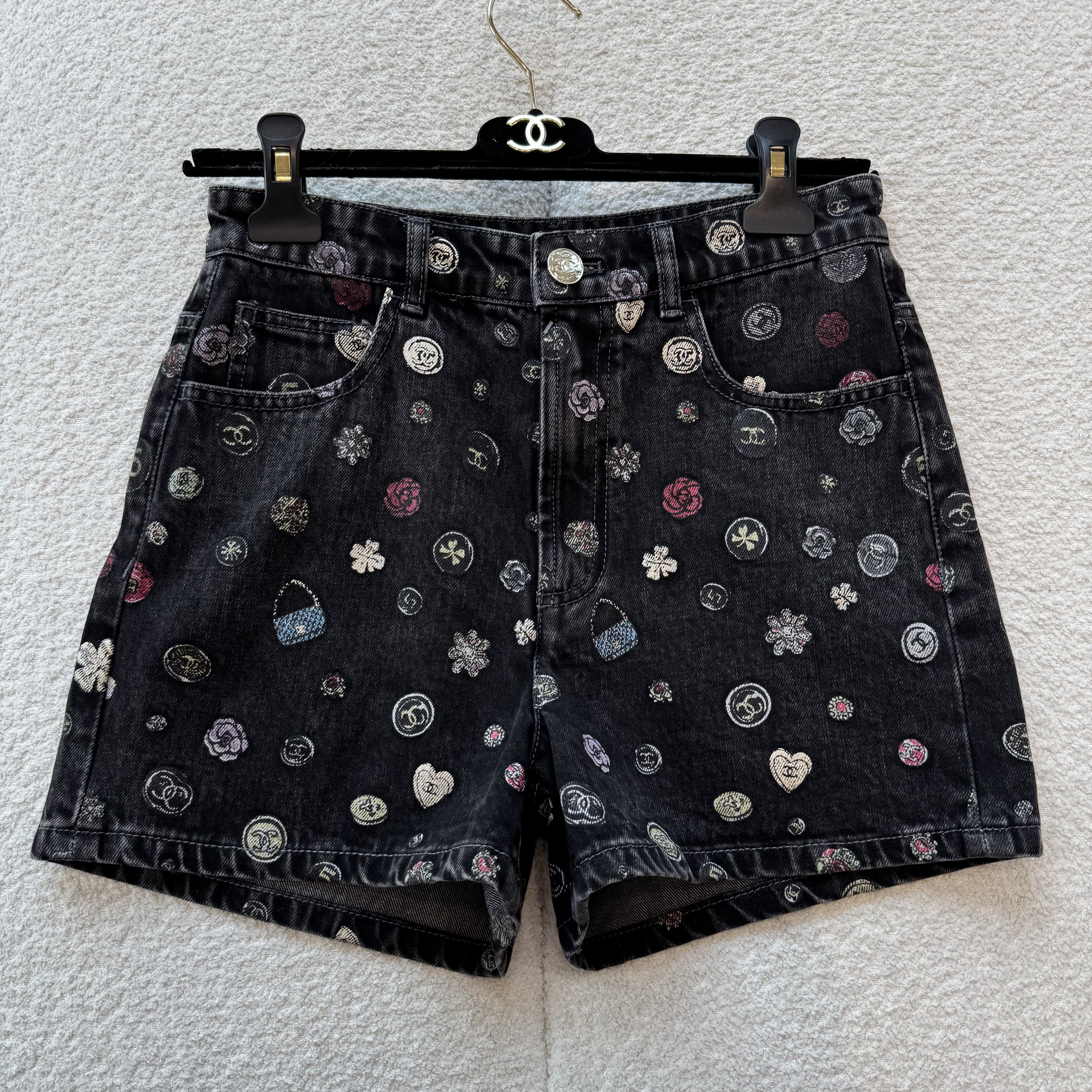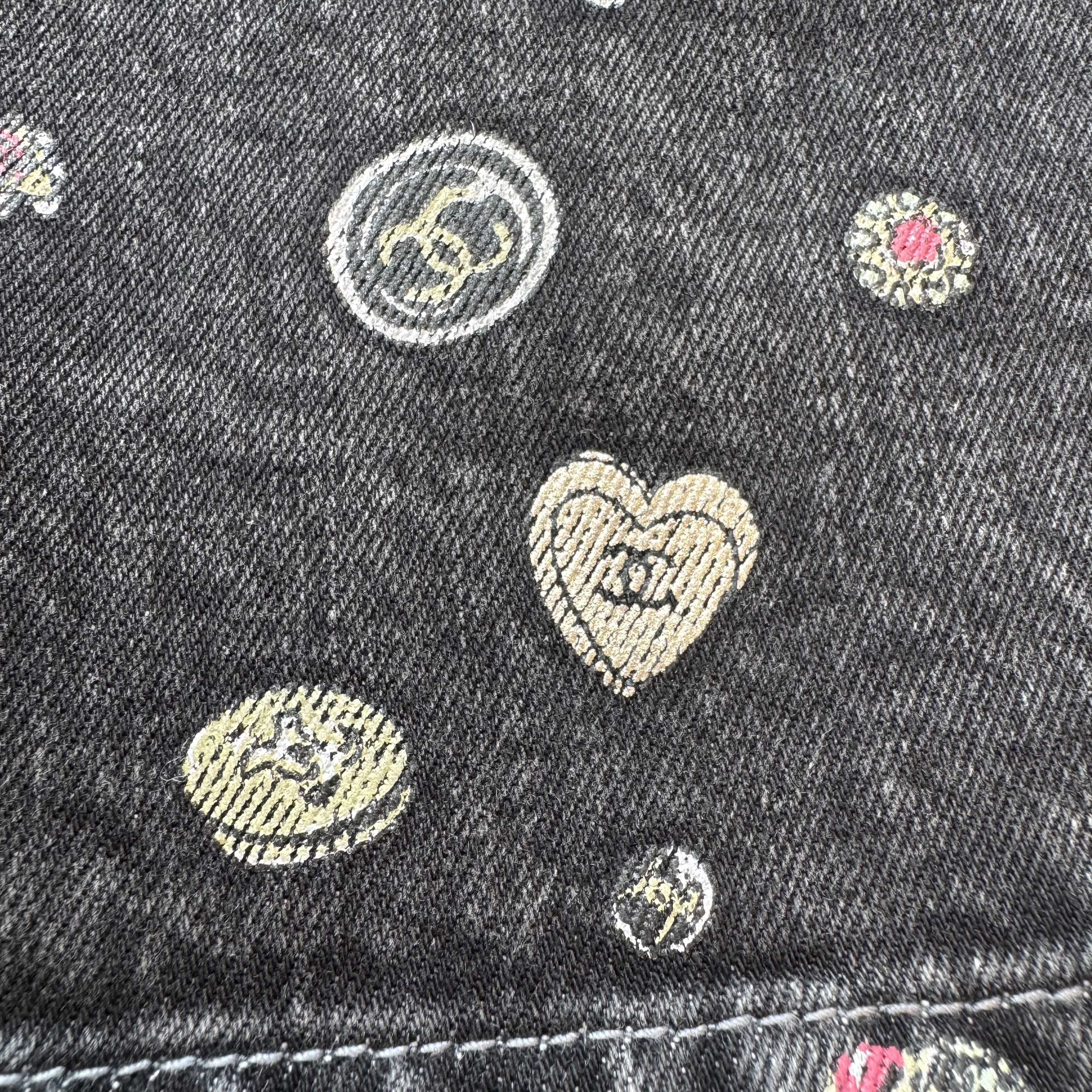 NIGO Chanel Women's Summer Casual Graffiti Double C Logo Wide Leg Denim Shorts #nigo78884