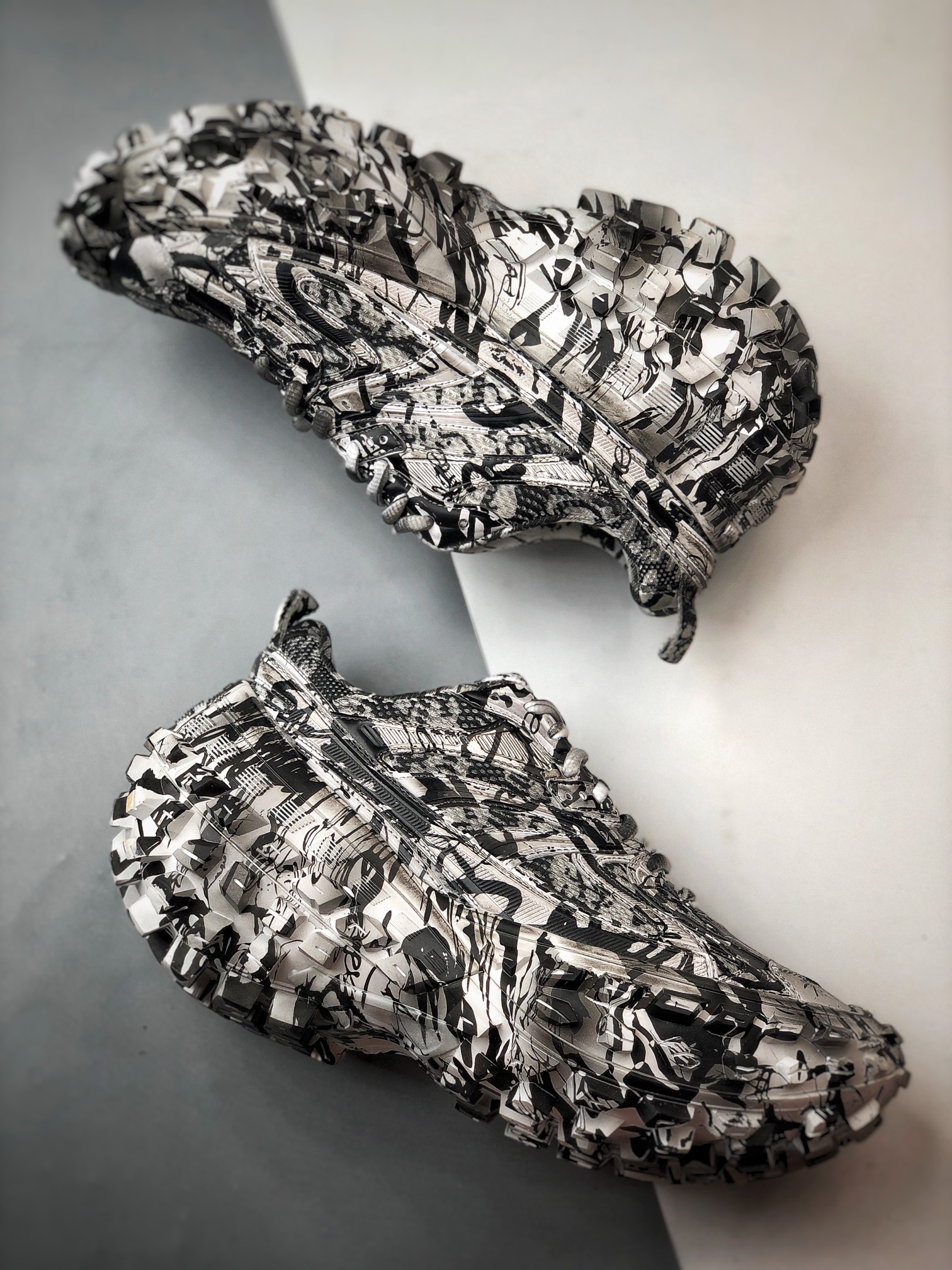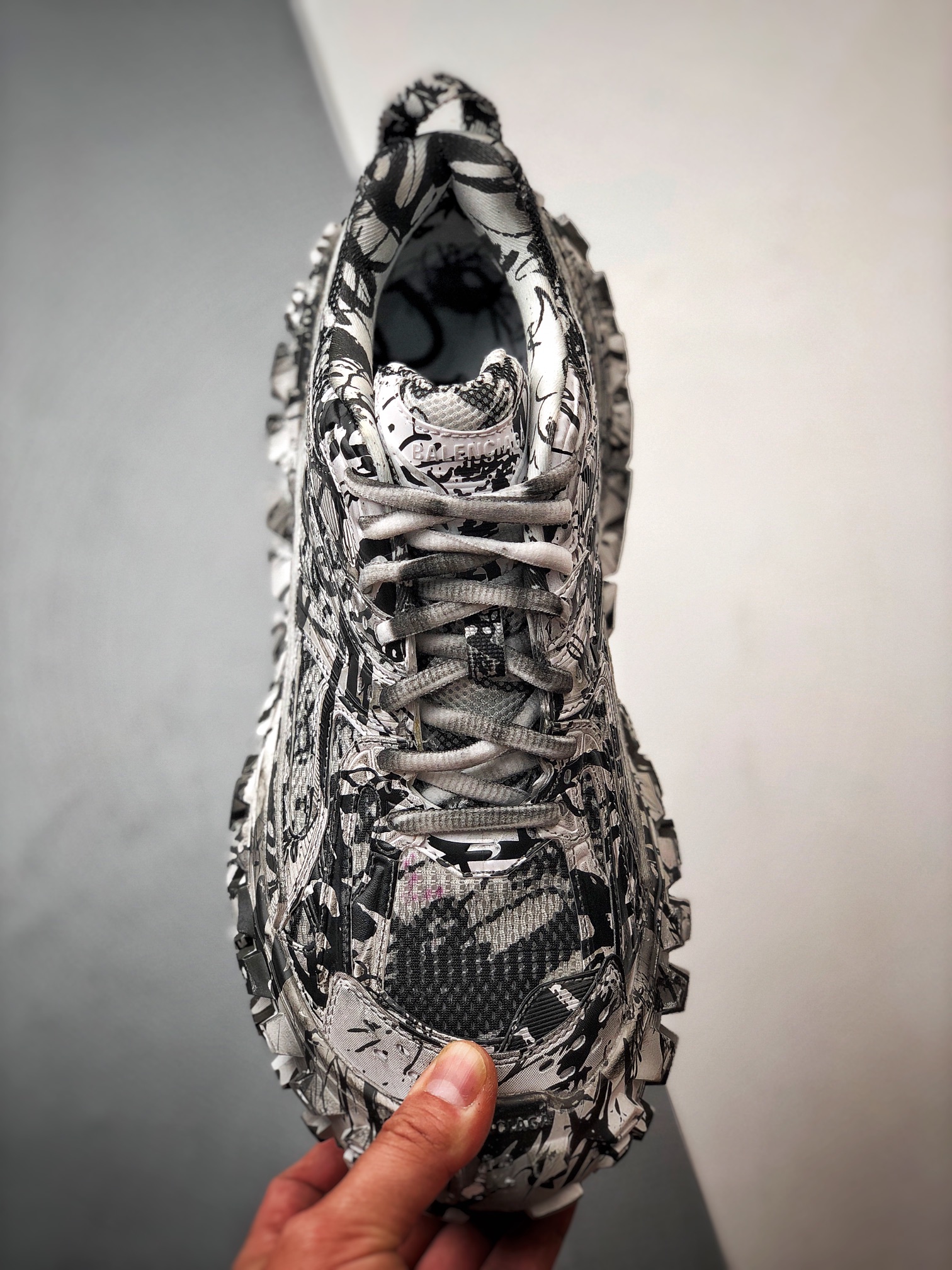NIGO Balenciaga Men's And Women's Four Season Black And White Graffiti Print Round Toe Tie Up Low Top Sports And Leisure Shoes Ngvp #nigo8358