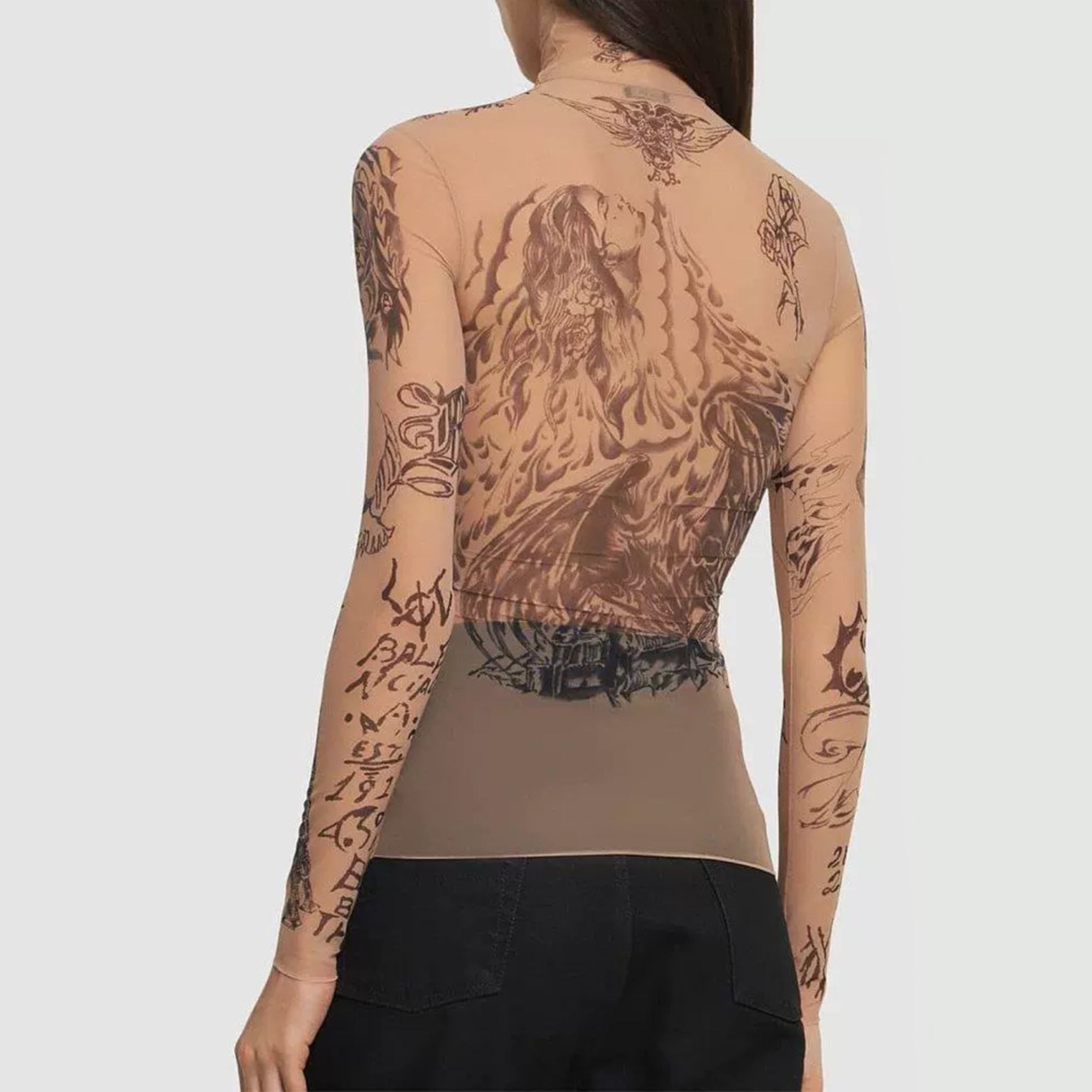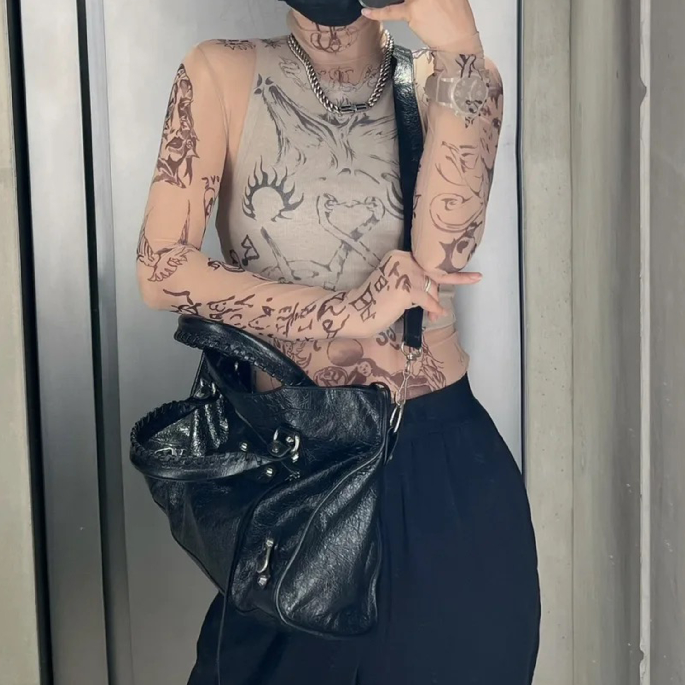 NIGO Balenciaga Men's and Women's Spring/Summer Printed Graffiti High Street Long sleeved T-shirt Trendy Tight Bottom Top Ngvp #nigo8326