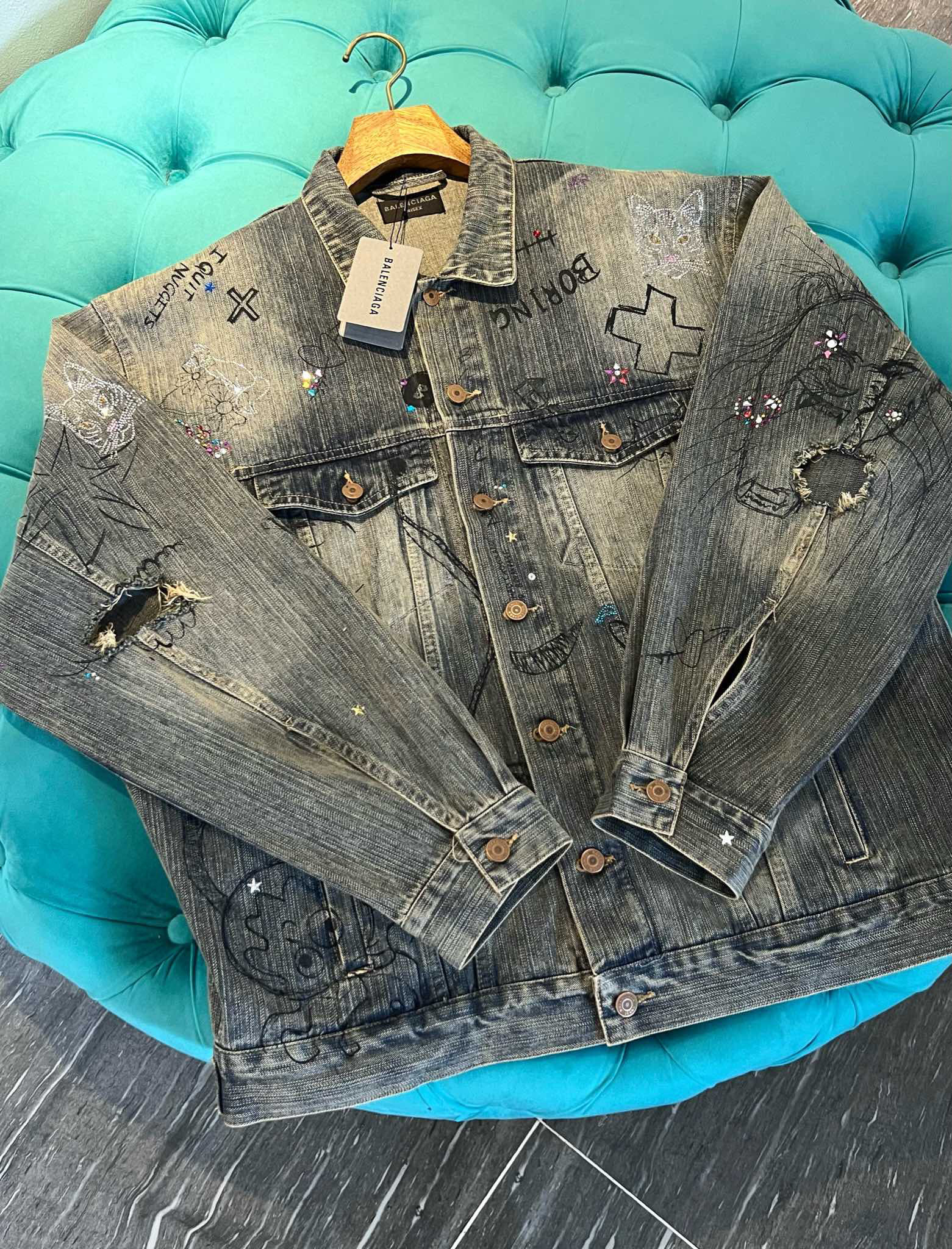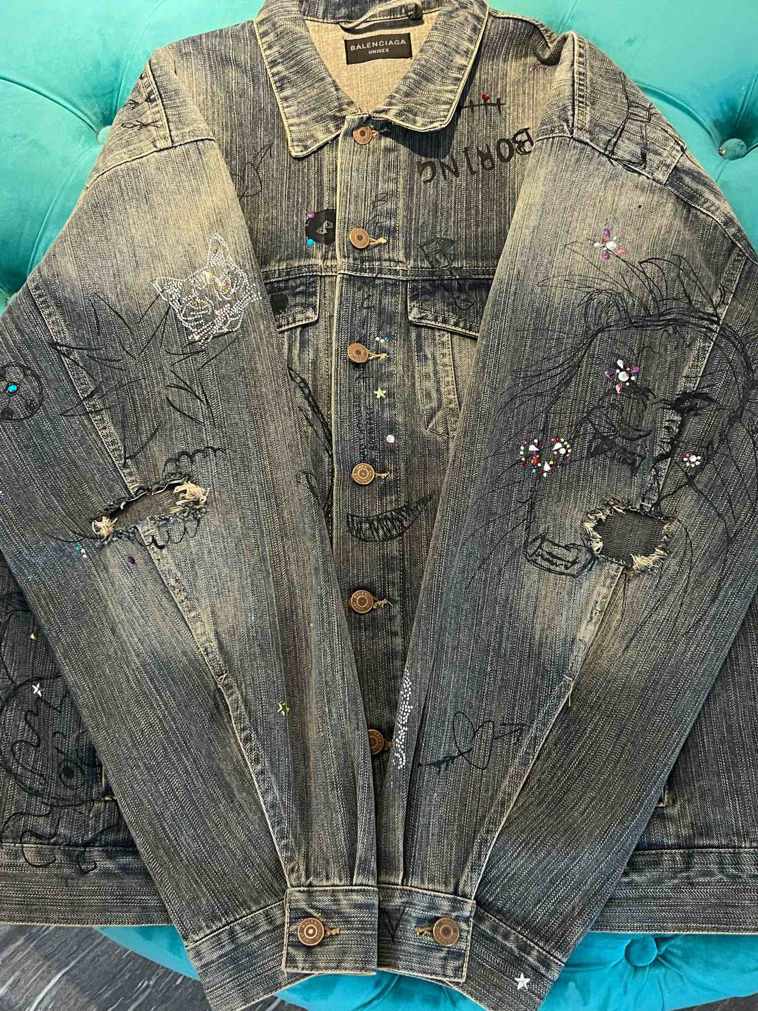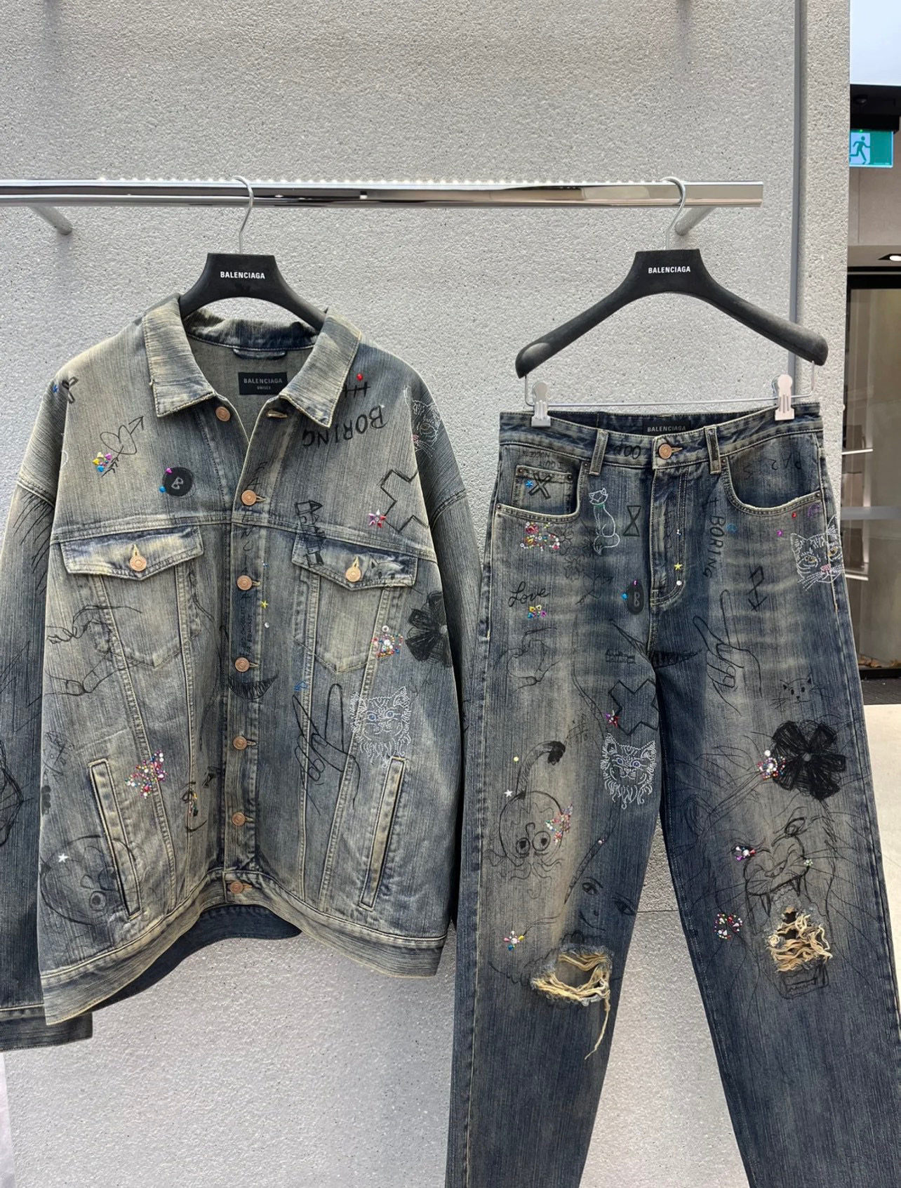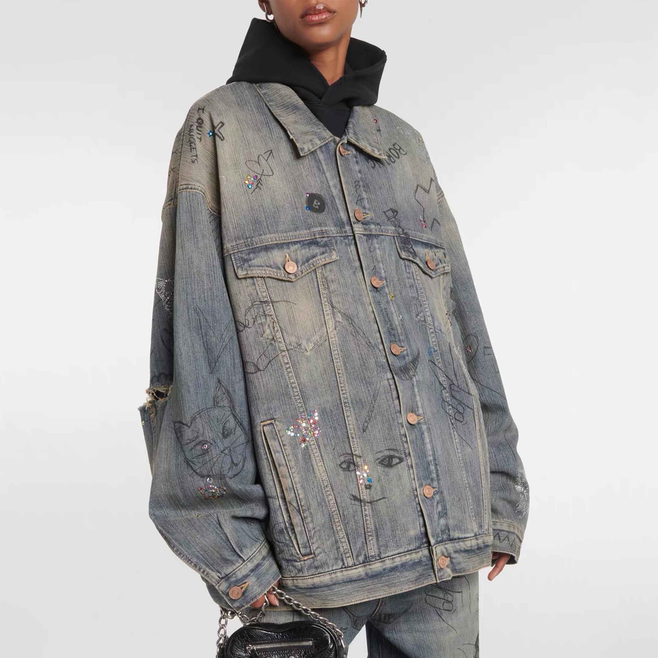 NIGO Balenciaga Men's Autumn And Winter High Street Graffiti Printed Loose Fitting Denim Jacket With Button Up Collar Ngvp #nigo7258