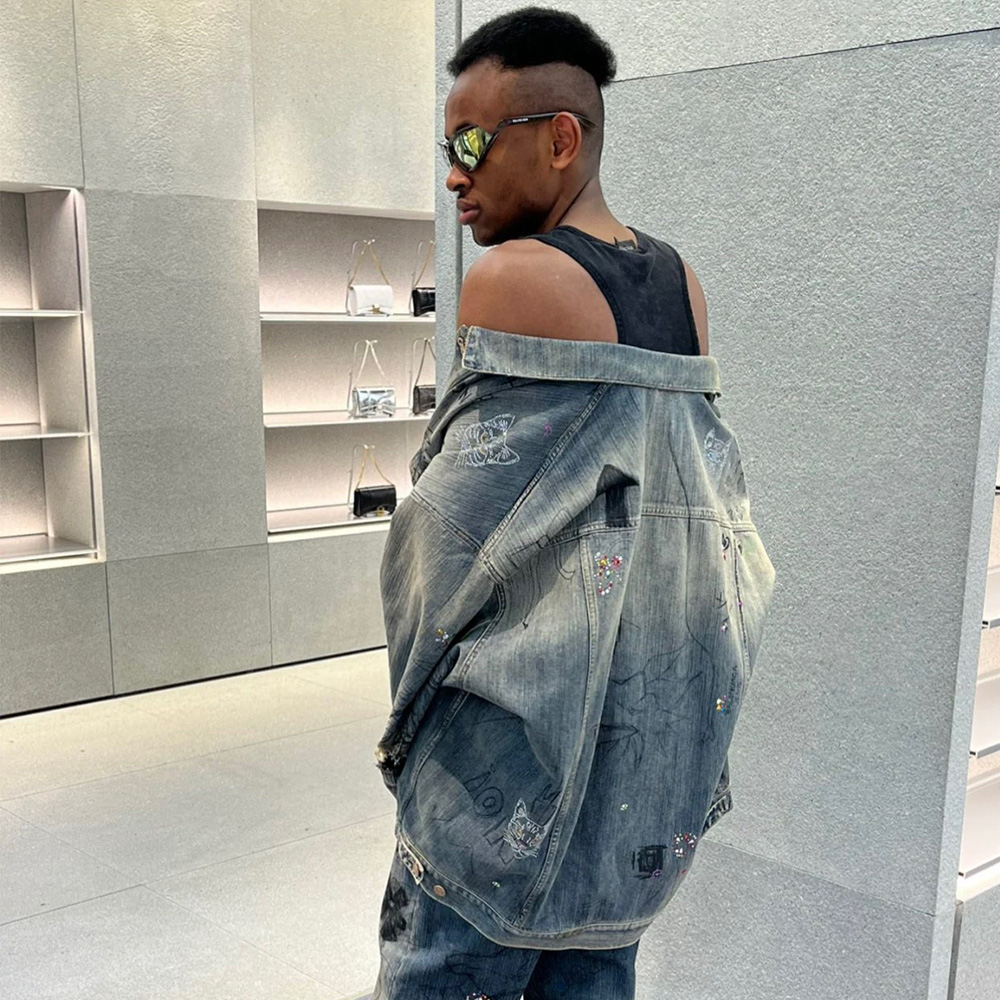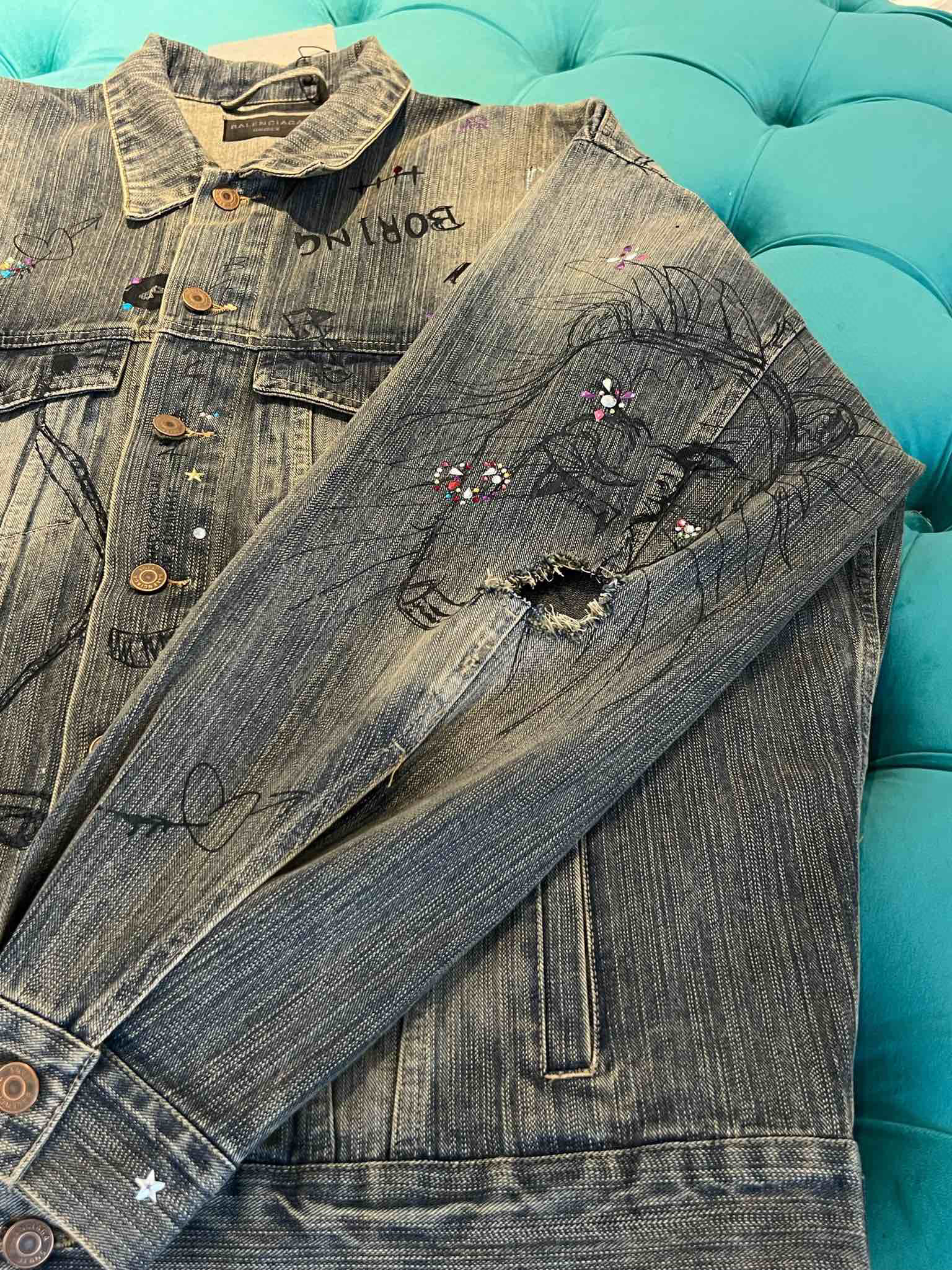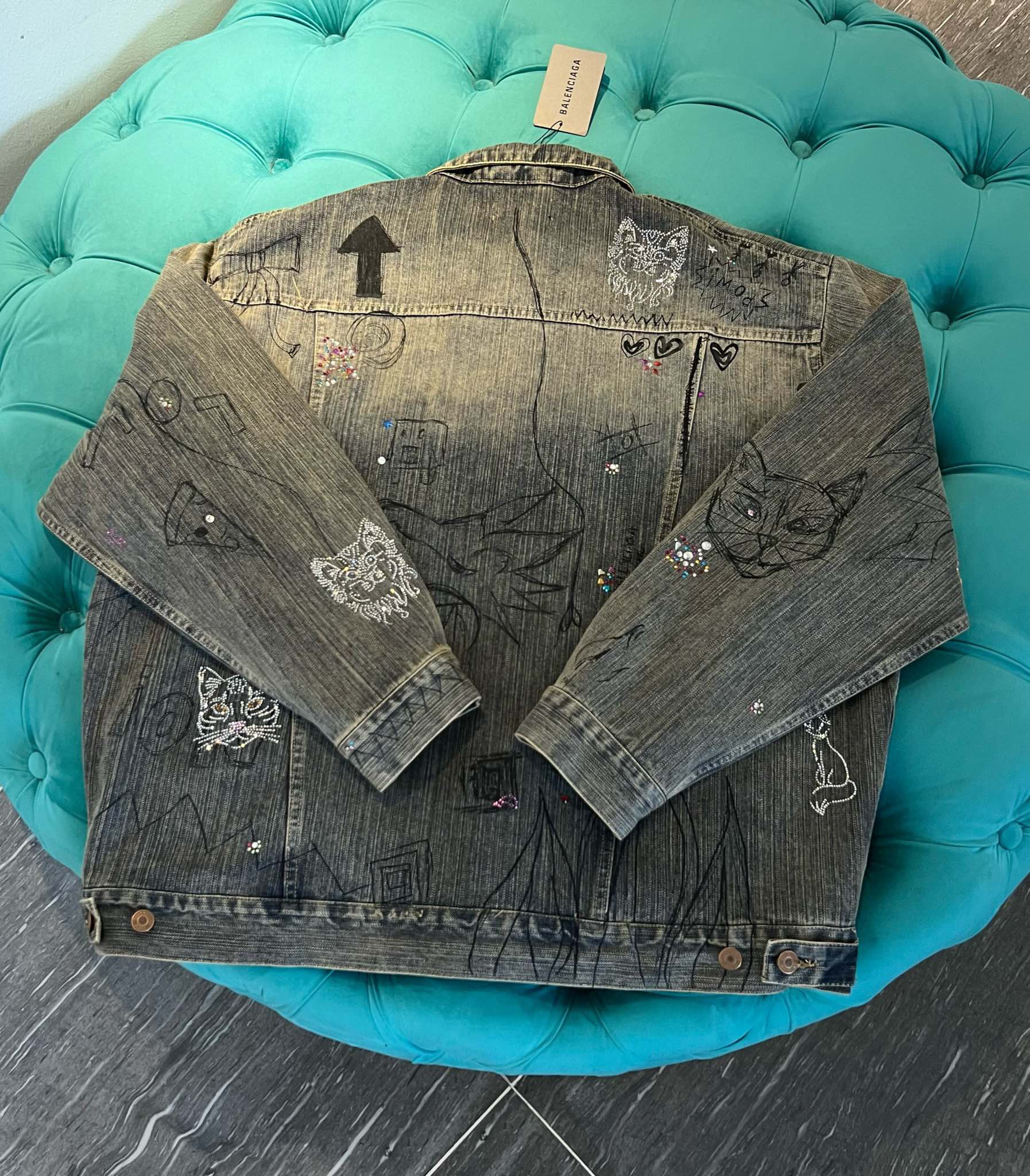 NIGO Balenciaga Men's Autumn And Winter High Street Graffiti Printed Loose Fitting Denim Jacket With Button Up Collar Ngvp #nigo7258