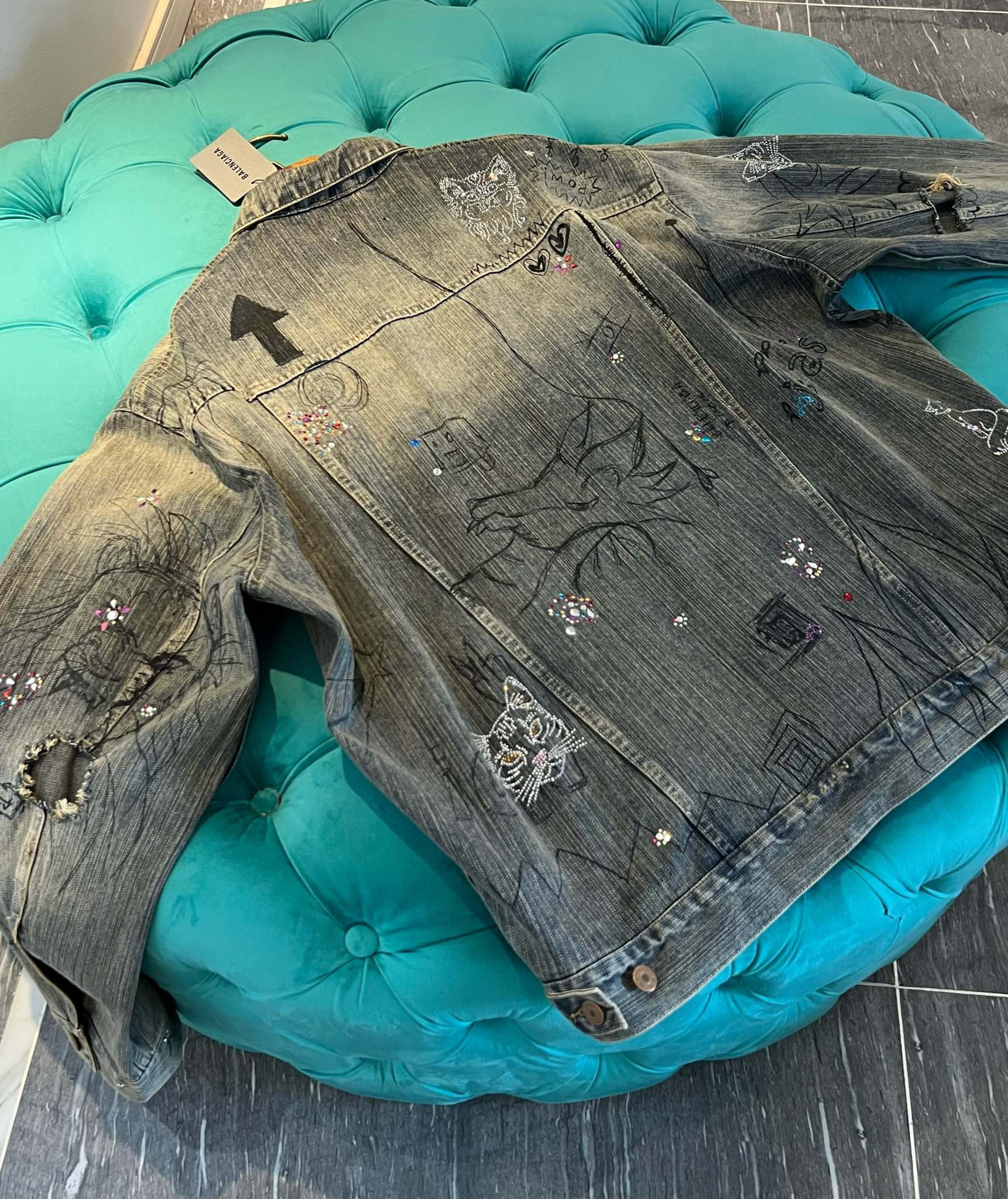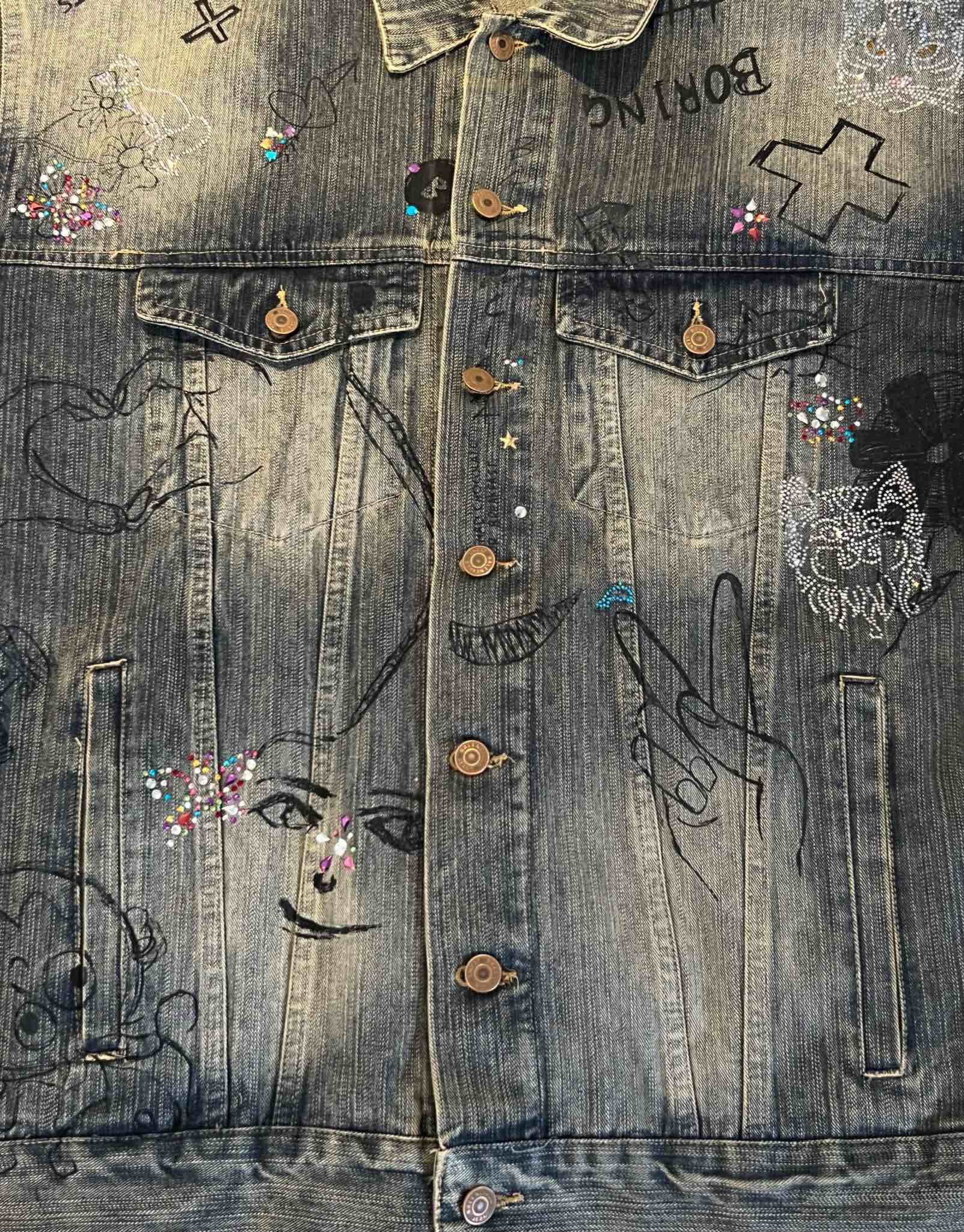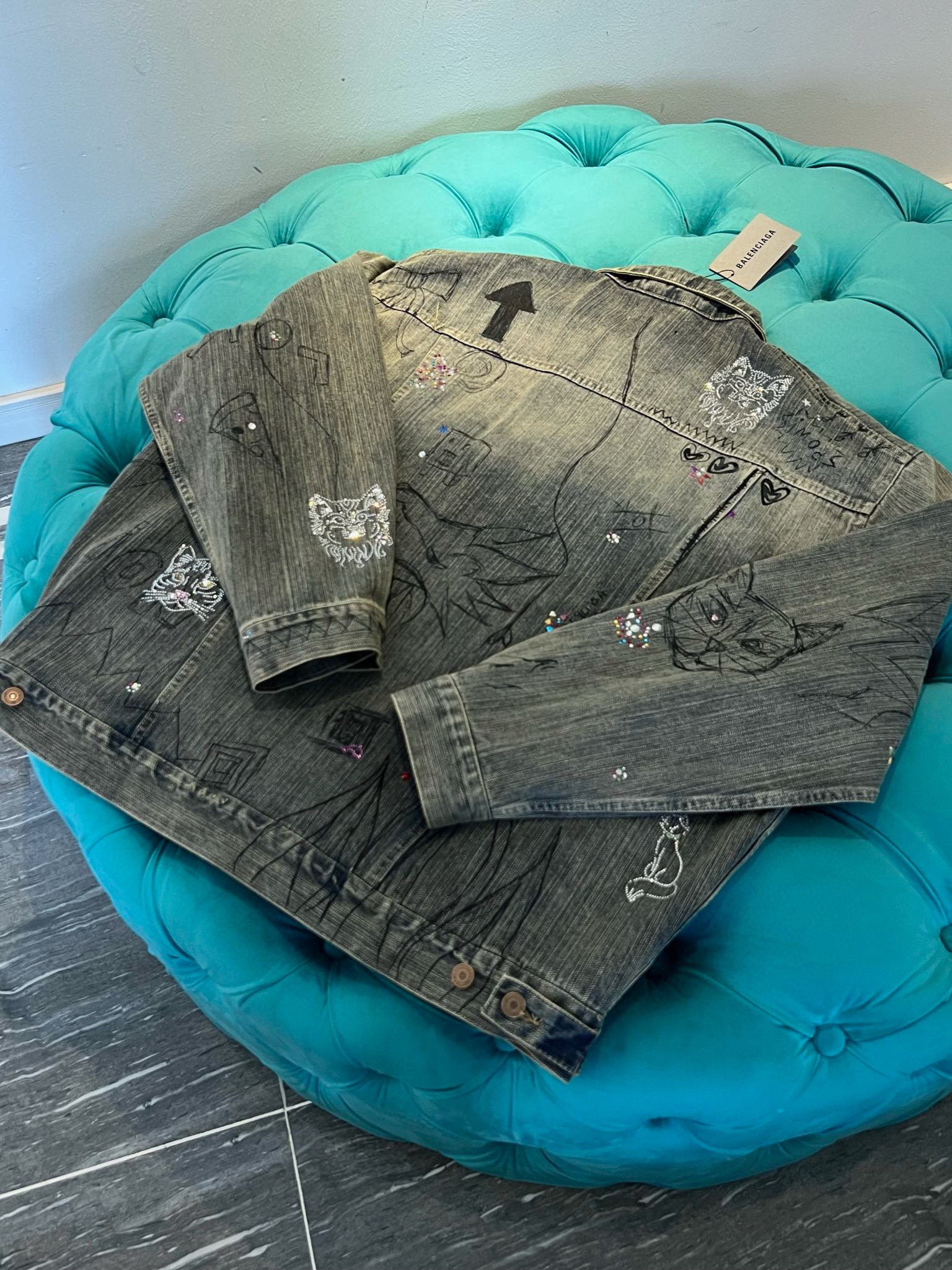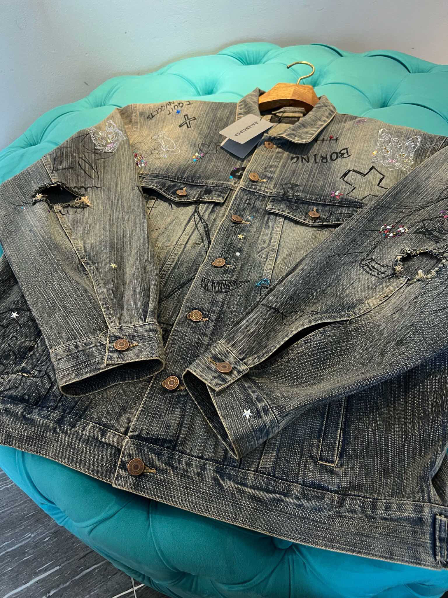 NIGO Balenciaga Men's Autumn And Winter High Street Graffiti Printed Loose Fitting Denim Jacket With Button Up Collar Ngvp #nigo7258