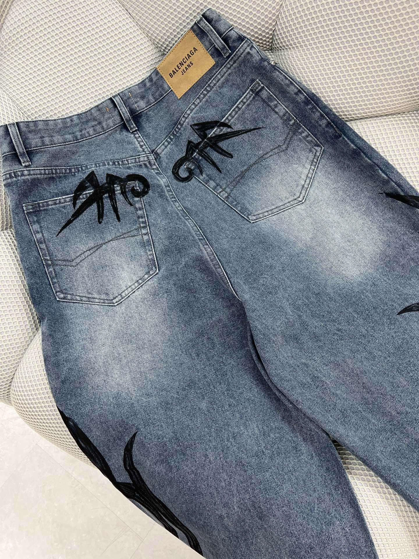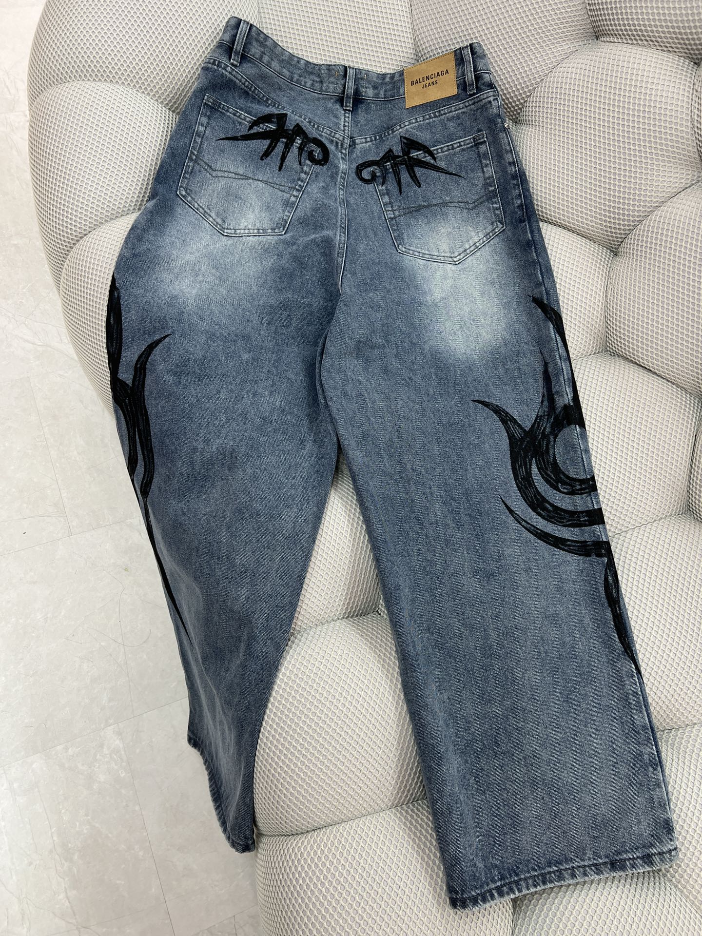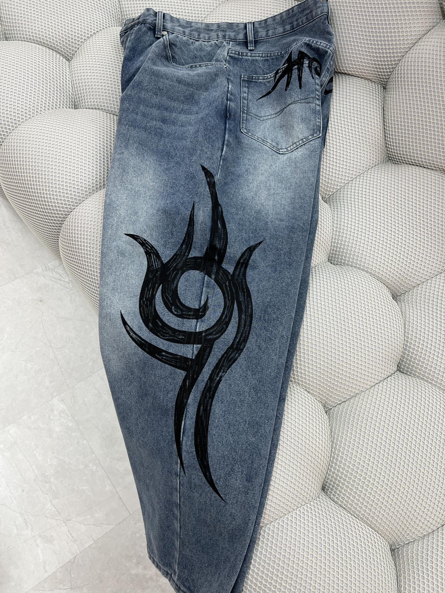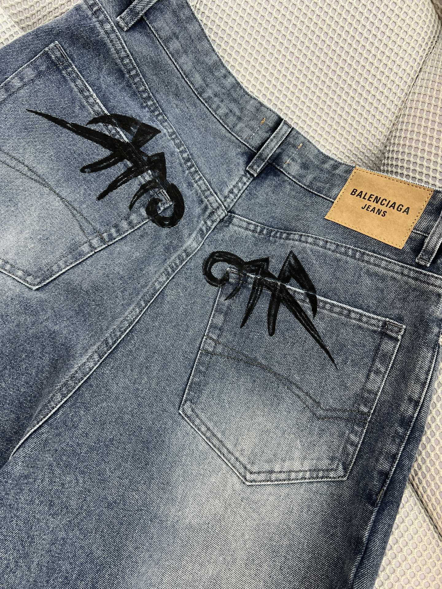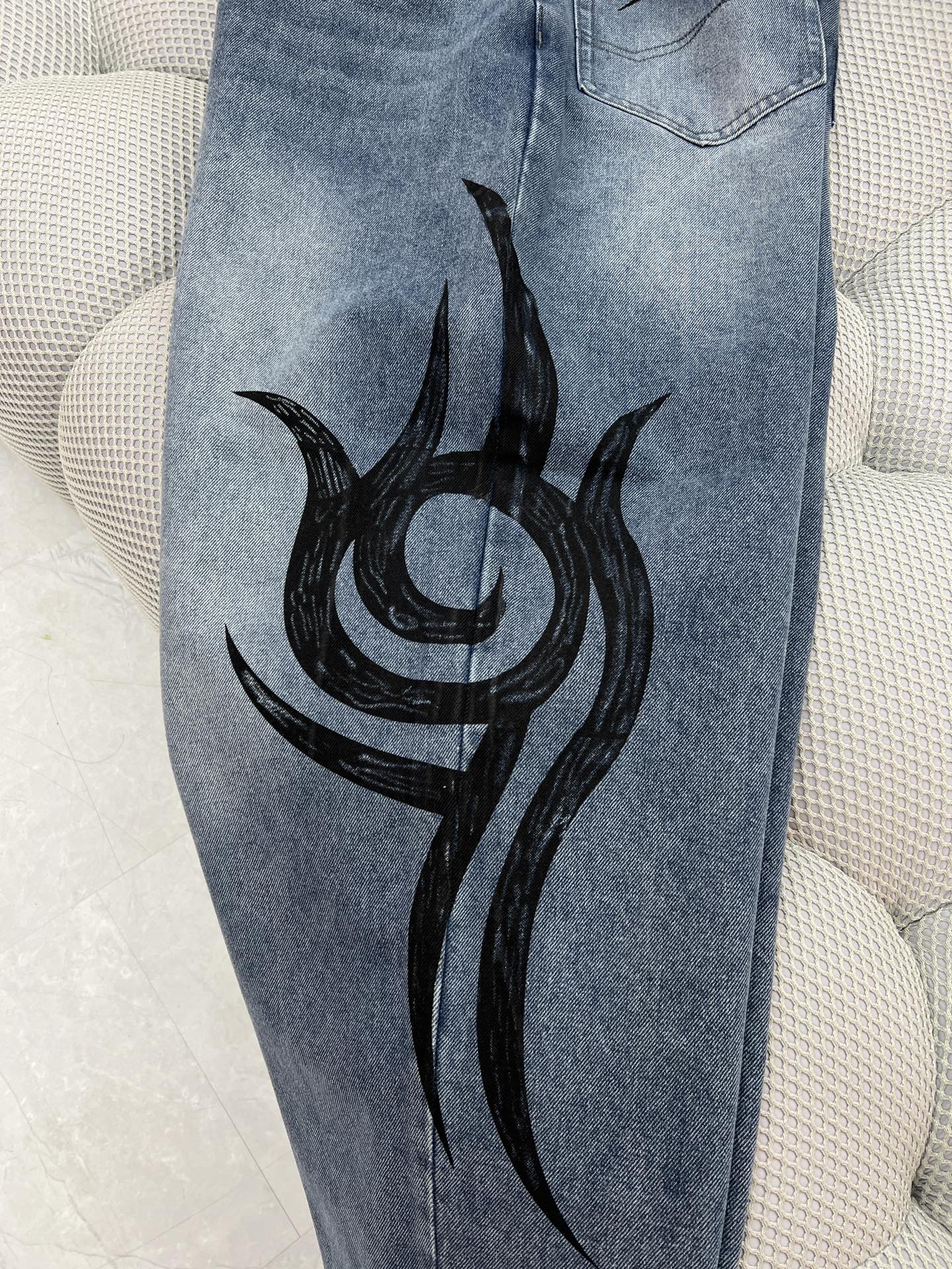 NIGO Balenciaga Men's Spring And Fall Fashion Retro Graffiti Washed Fashion Trend Jeans Straight Wide-leg Pants Ngvp #nigo9124