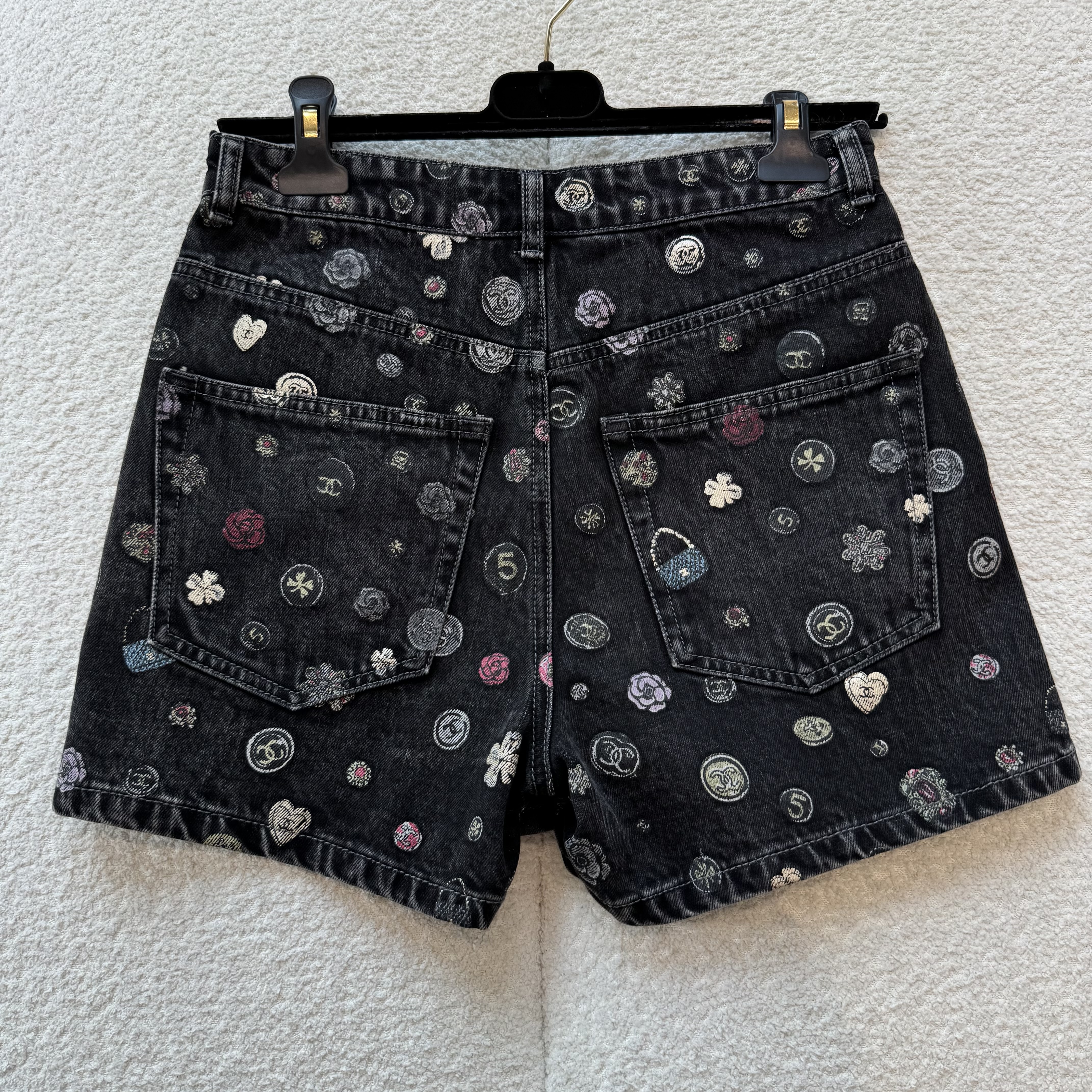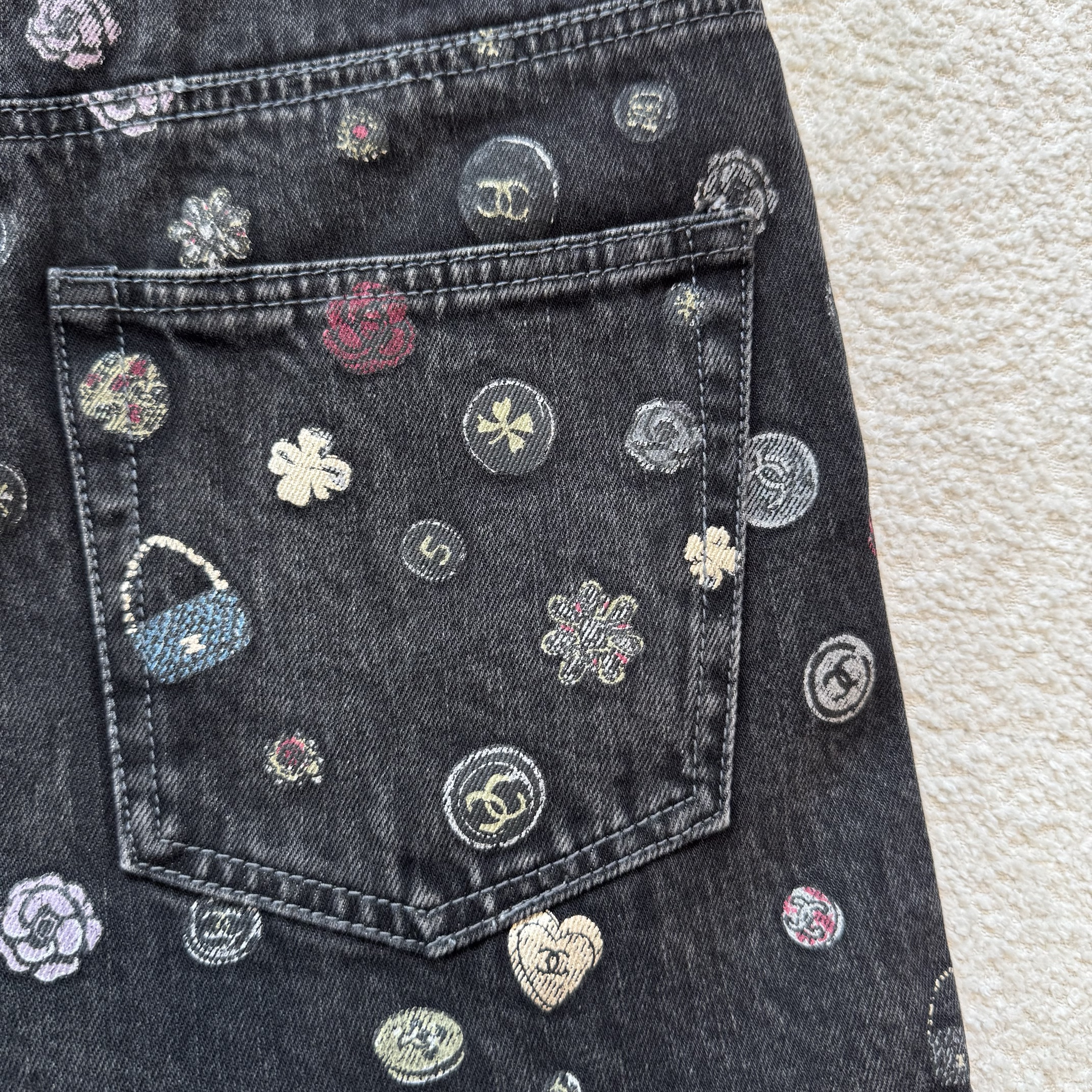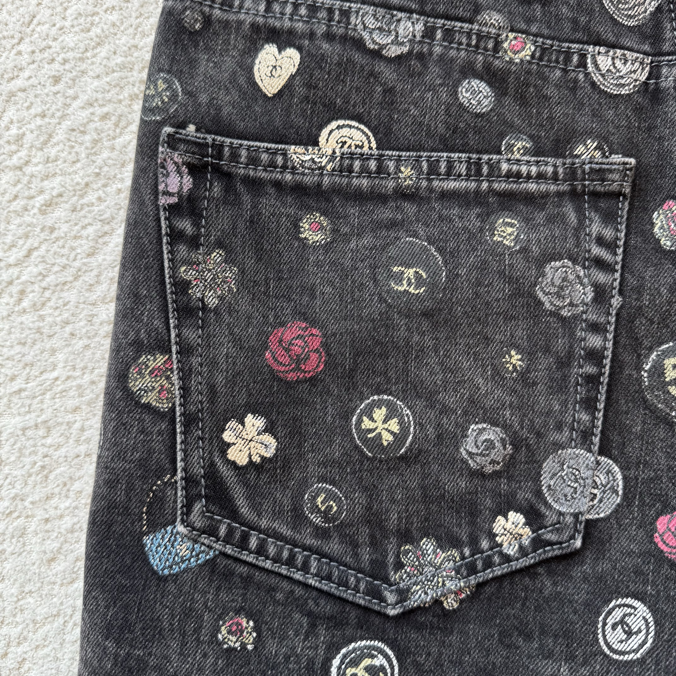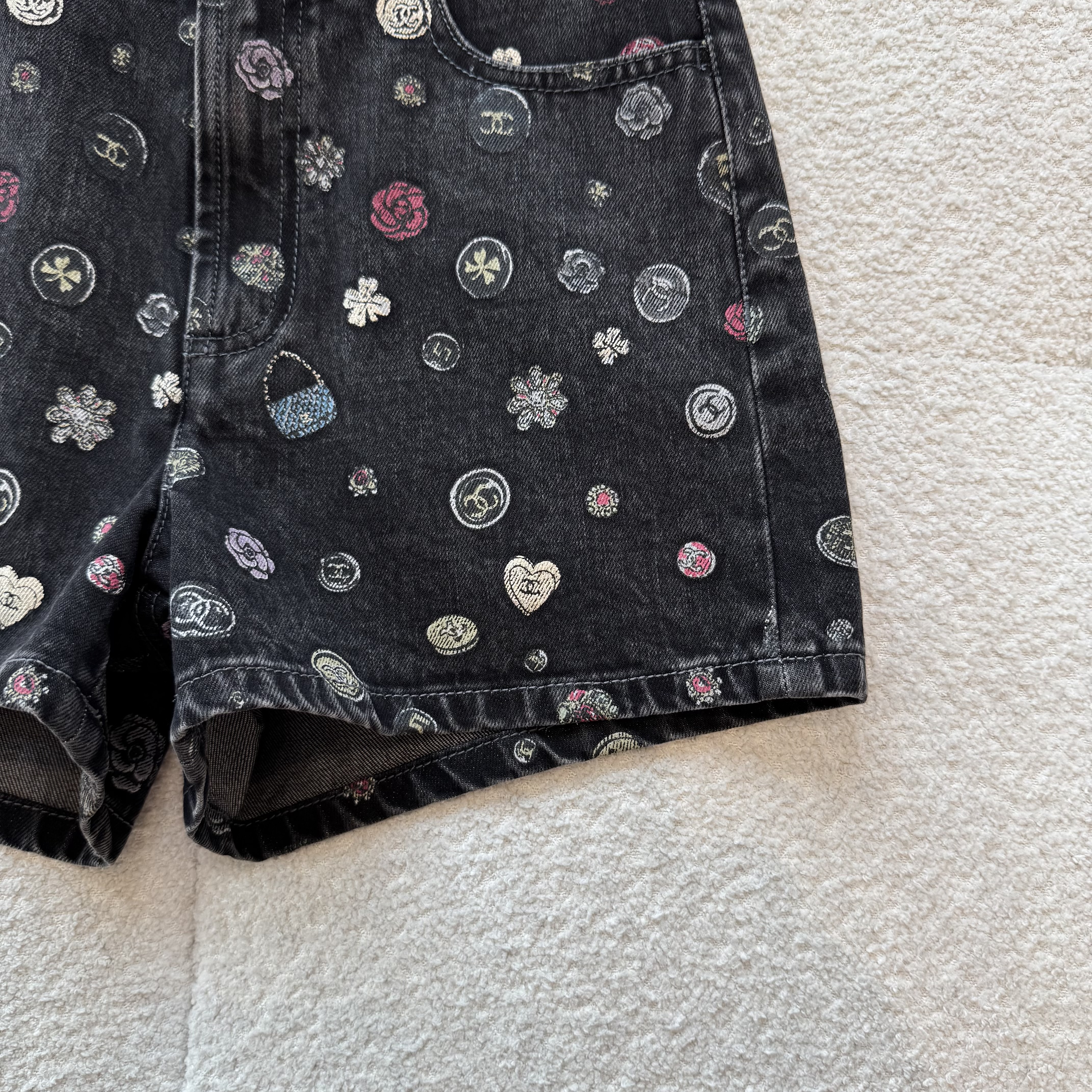 NIGO Chanel Women's Summer Casual Graffiti Double C Logo Wide Leg Denim Shorts #nigo78884