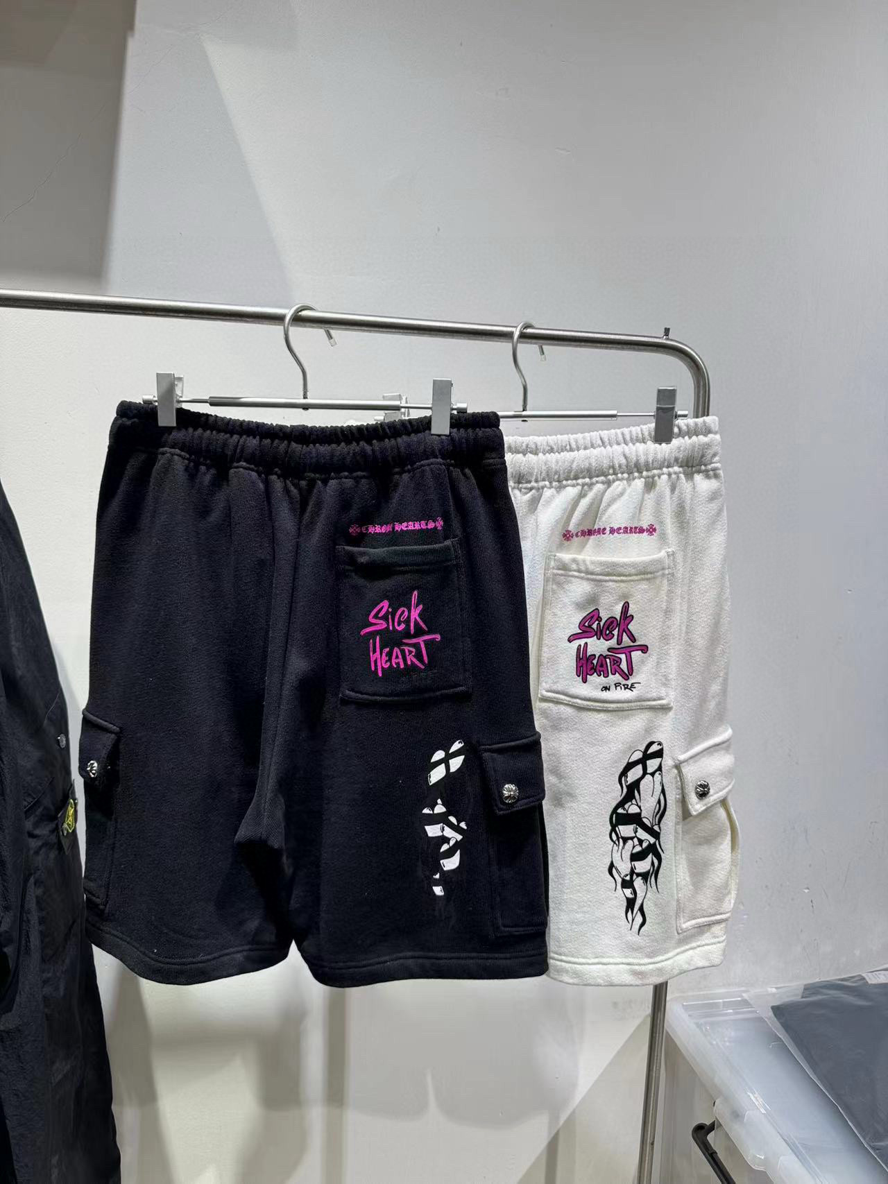 NIGO Chrome Hearts Men's Summer Graffiti Monogram Printed Mid Rise Straight Leg Casual Tie Shorts #nigo77893